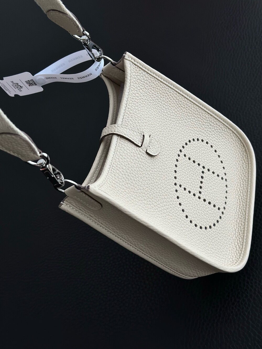 휴대성이 돋보이는 Evelyne 백은 흐르는 듯 유연한 실루엣으로 착용자의 움직임과 조화롭게 어우러집니다. 원래 승마 장비를 휴대하도록 디자인된 제품으로, 기능과 스타일의 재해석을 통해 새로운 매력을 선사합니다.