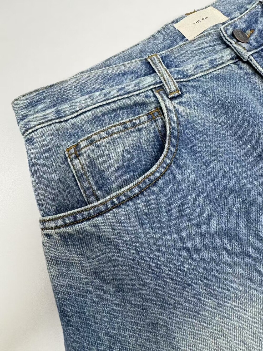 바랜 워싱이 돋보이는 더 로우(The Row)의 Fred 진은 최고급 코튼 데님으로 정교하게 제작되었습니다. 클래식한 스트레이트 핏 실루엣으로, 다양한 스타일에 활용할 수 있는 필수 아이템입니다.