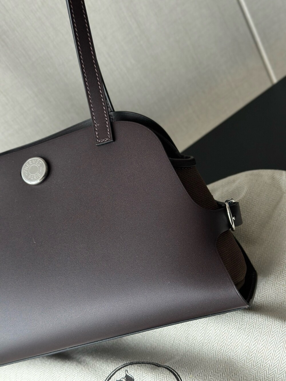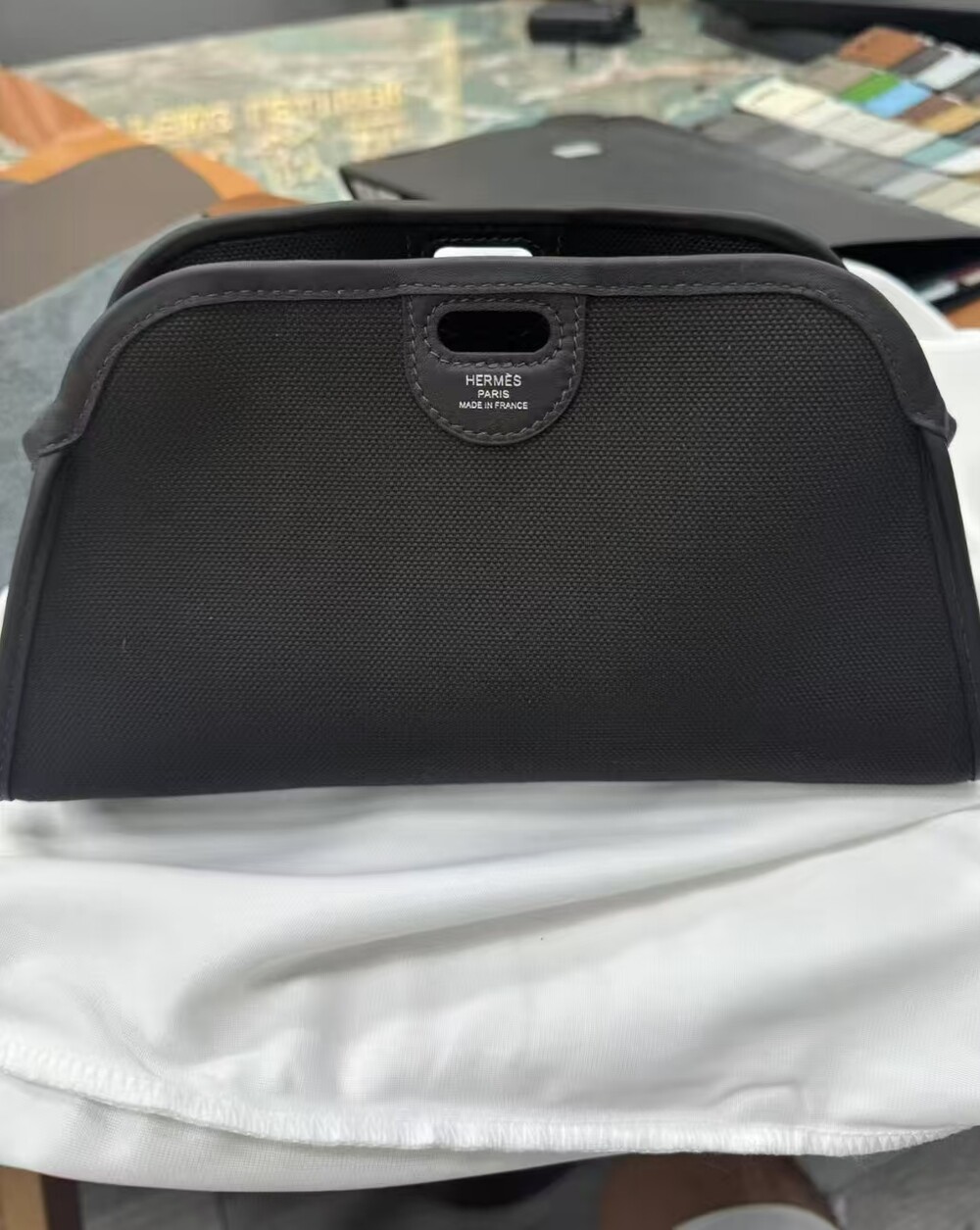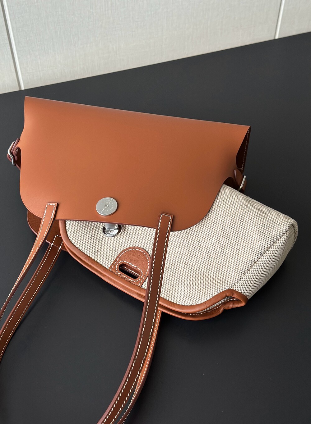 헌터 소가죽, 스위프트 송아지 가죽 및 H 캔버스 소재의 가방 - 클루 드 셀 잠금 장치 - 분리 가능한 내부 파우치 - 에트리비에르 버클 - 손에 들거나 어깨에 걸칠 수 있음