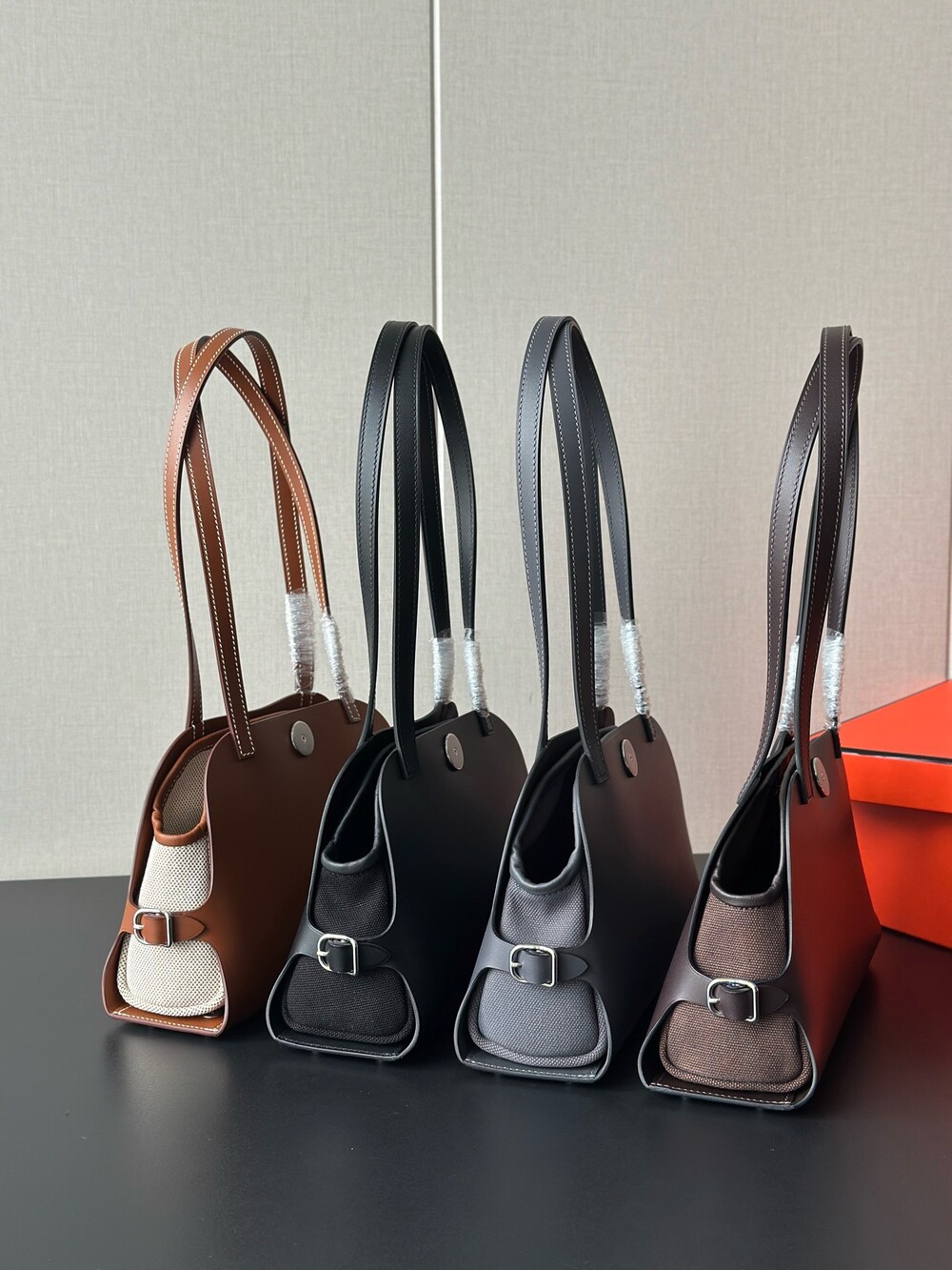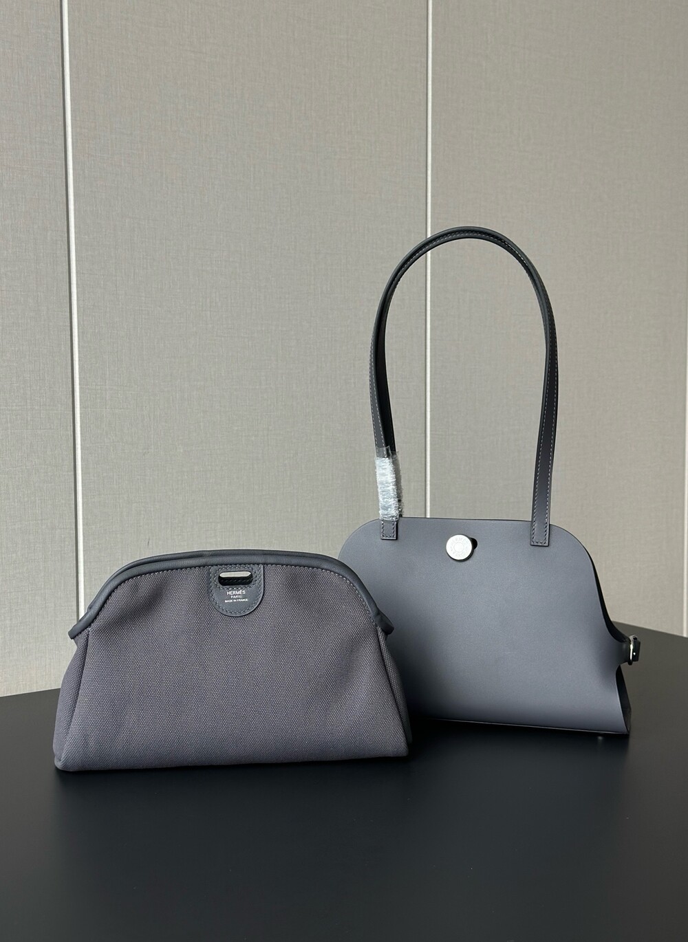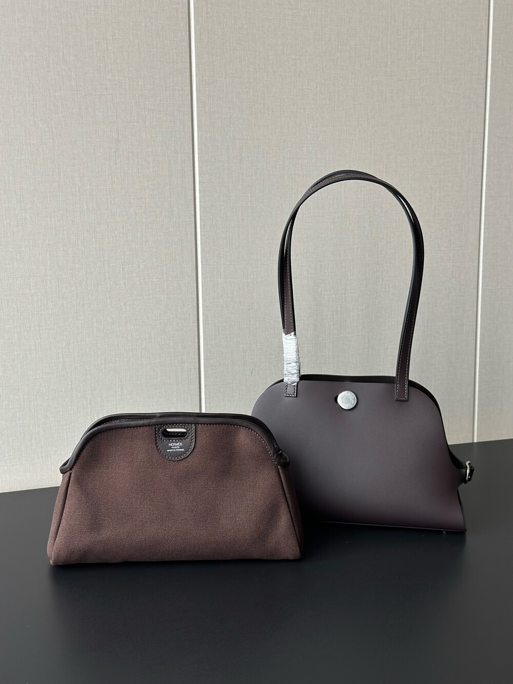 헌터 소가죽, 스위프트 송아지 가죽 및 H 캔버스 소재의 가방 - 클루 드 셀 잠금 장치 - 분리 가능한 내부 파우치 - 에트리비에르 버클 - 손에 들거나 어깨에 걸칠 수 있음