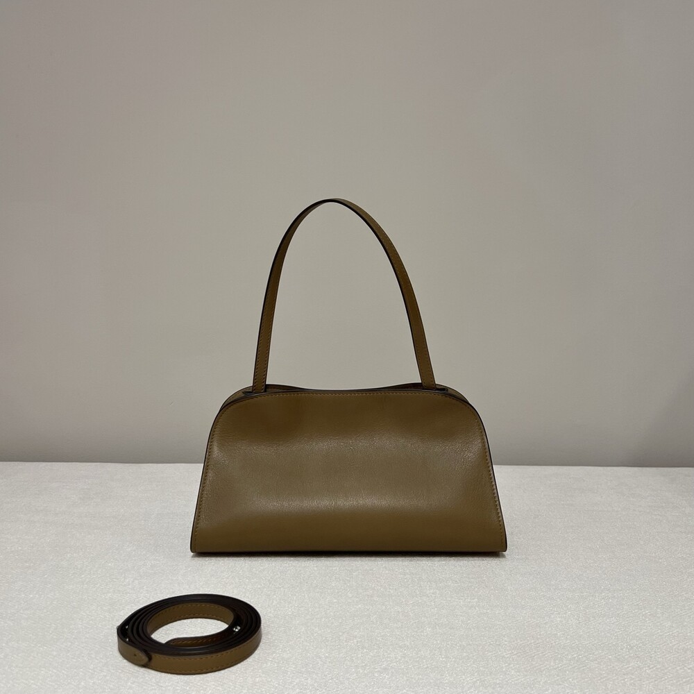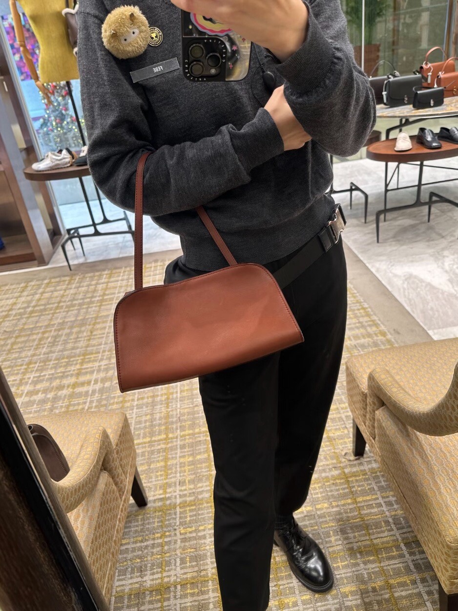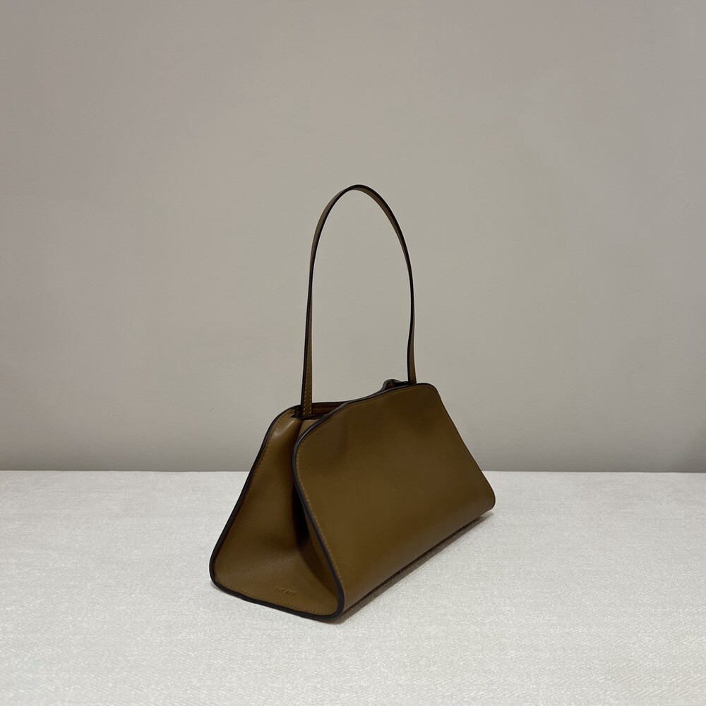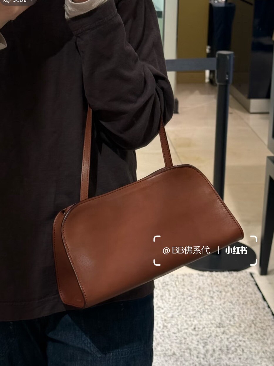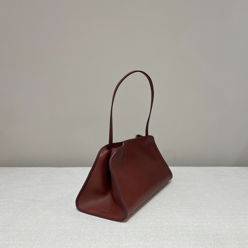 폴리시드 새들 가죽 소재의 소프트 스트럭처 클러치. 싱글 숄더 스트랩 및 거싯 디테일의 사이드 패널.