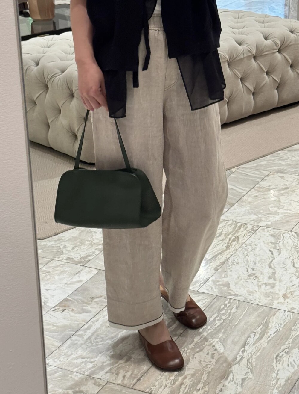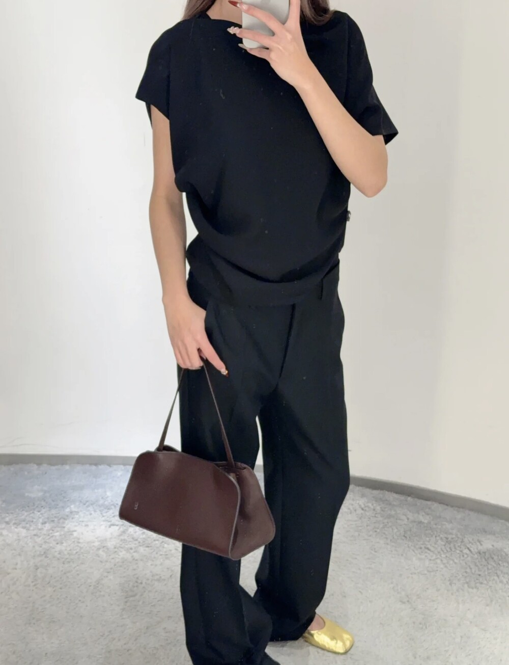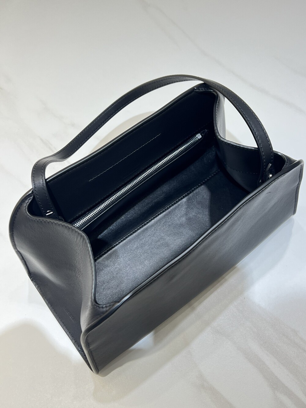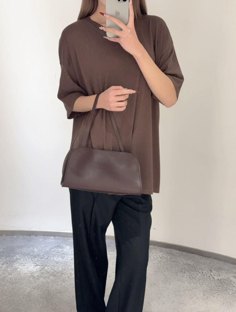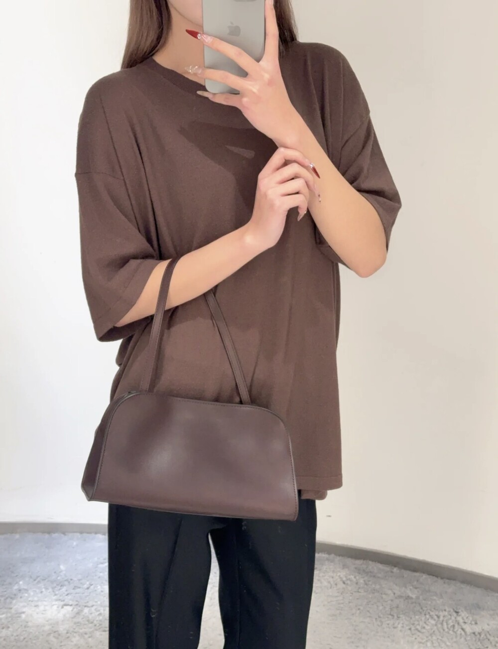 폴리시드 새들 가죽 소재의 소프트 스트럭처 클러치. 싱글 숄더 스트랩 및 거싯 디테일의 사이드 패널.