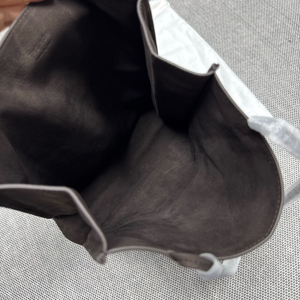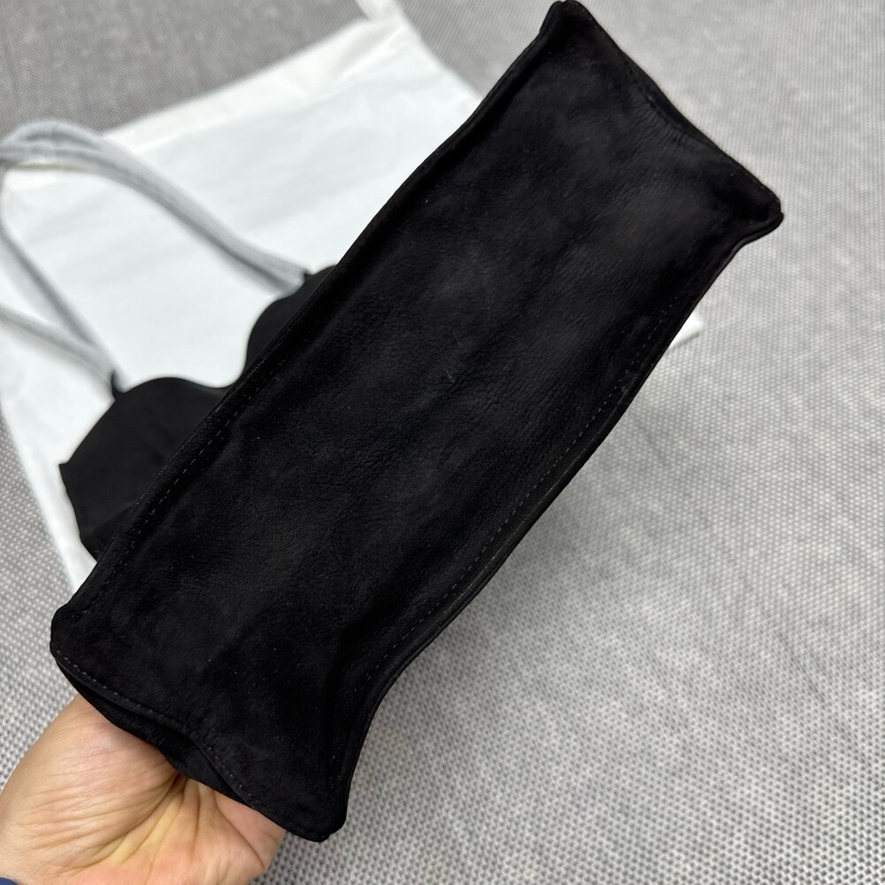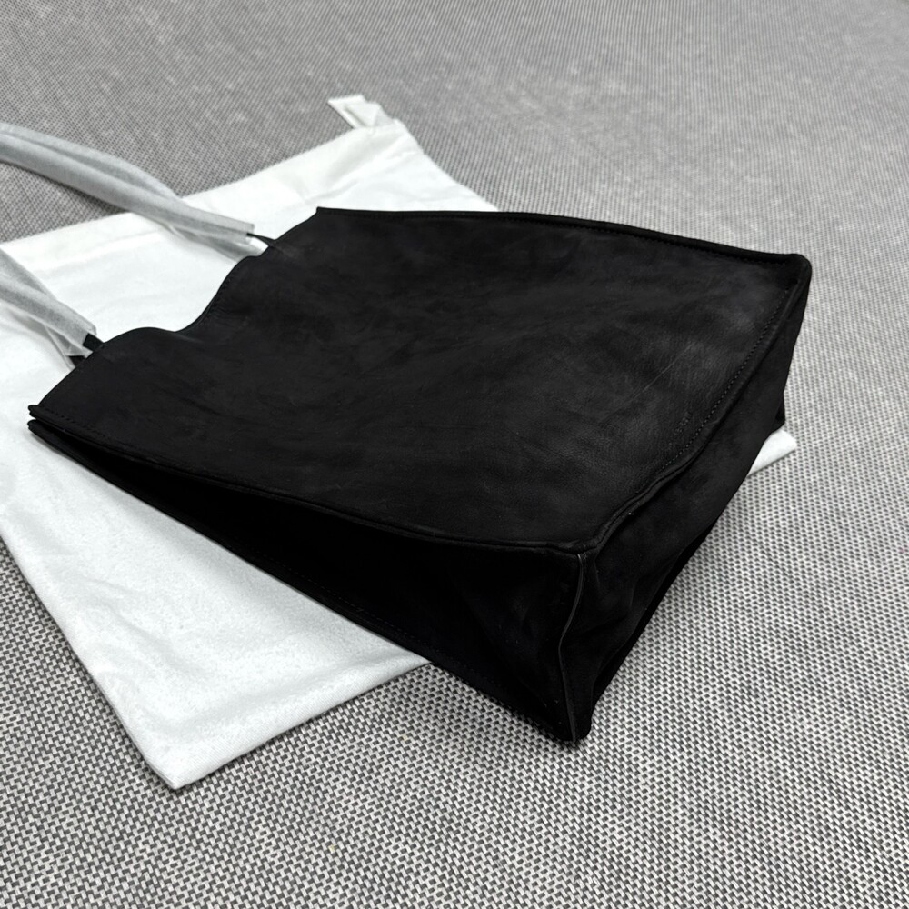 부드러운 누벅 가죽 소재의 컴팩트 캐리올 토트 백. 스티칭 디테일의 탑 핸들.