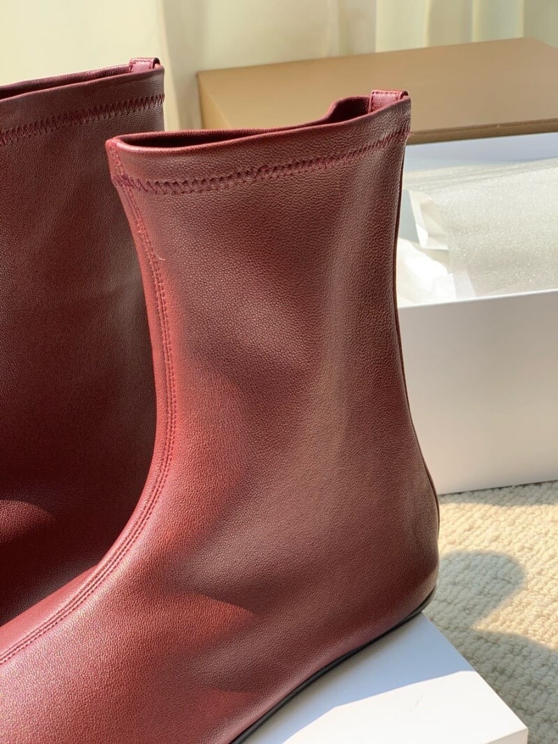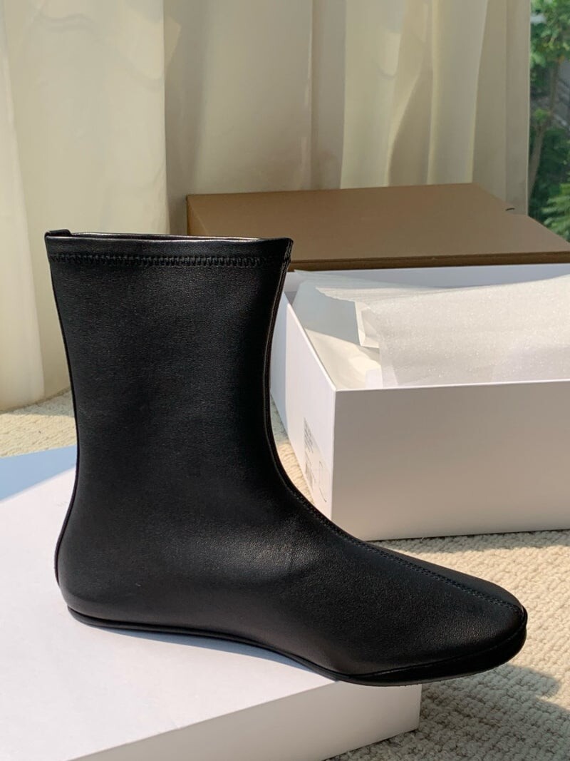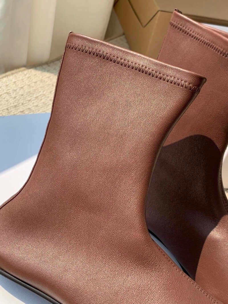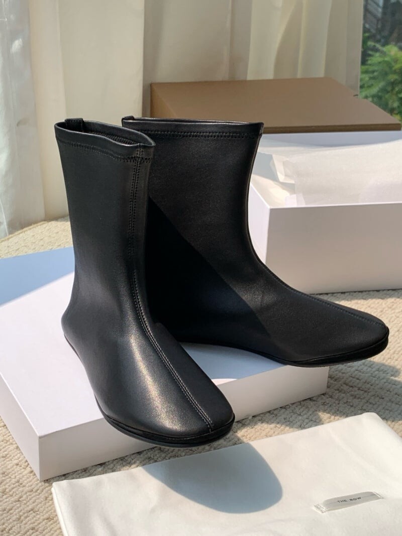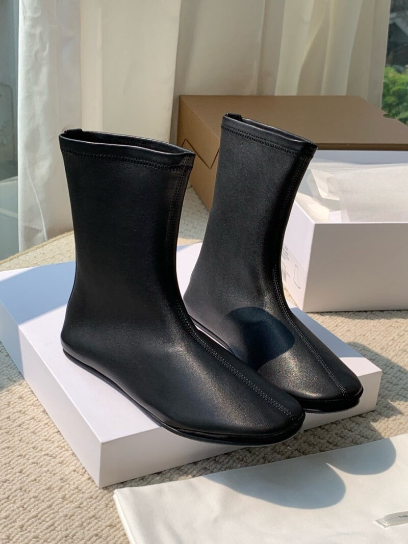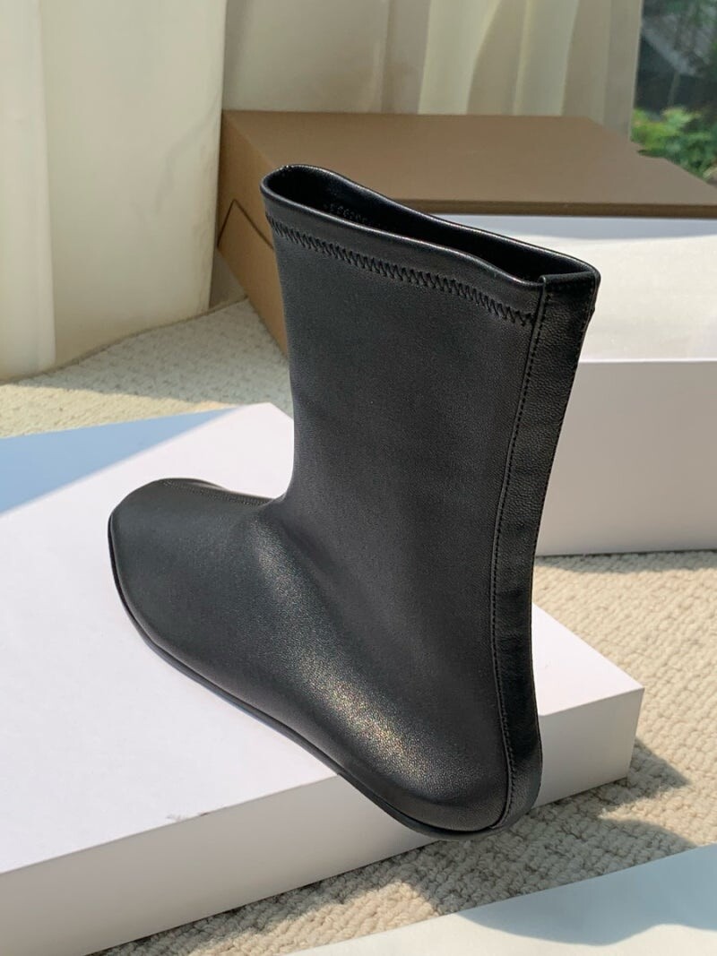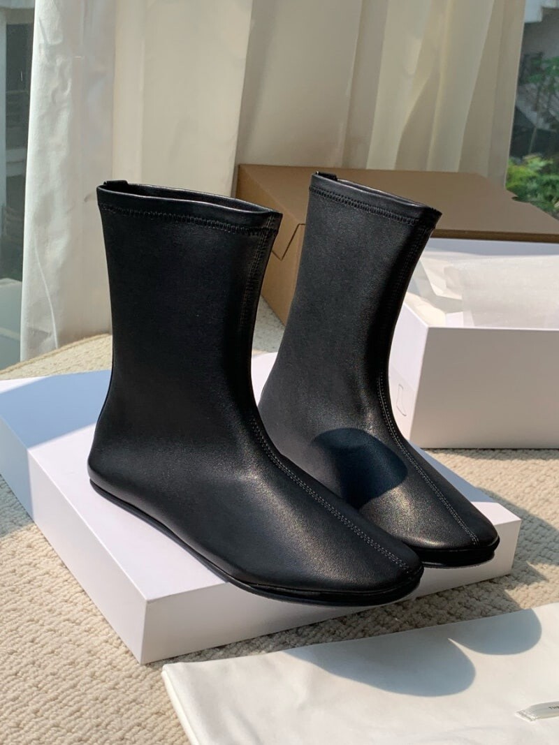 스트레치 나파 가죽 소재의 미니멀 풀온 삭스 부츠. 슬림 핏 및 유연한 밑창.
