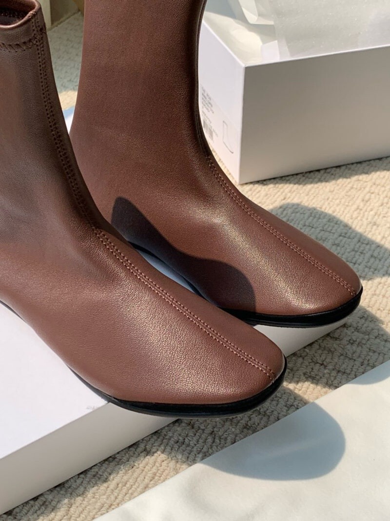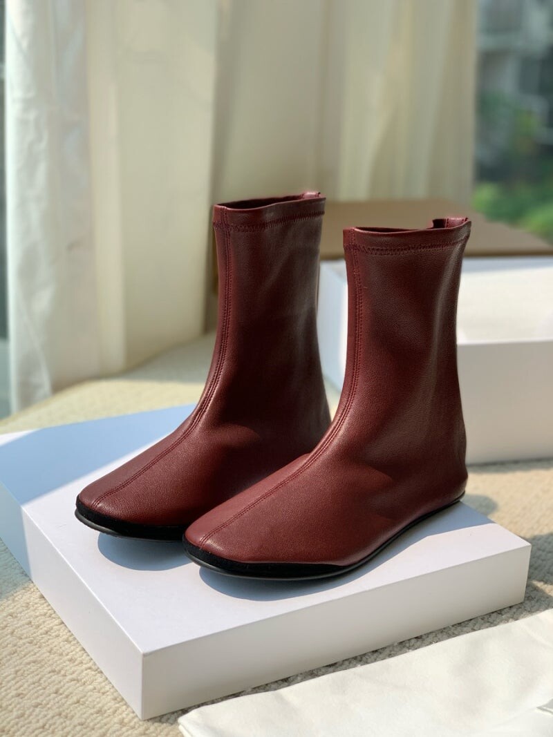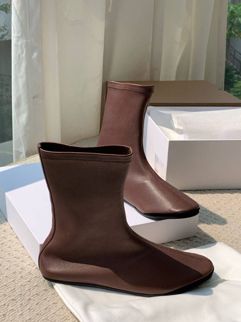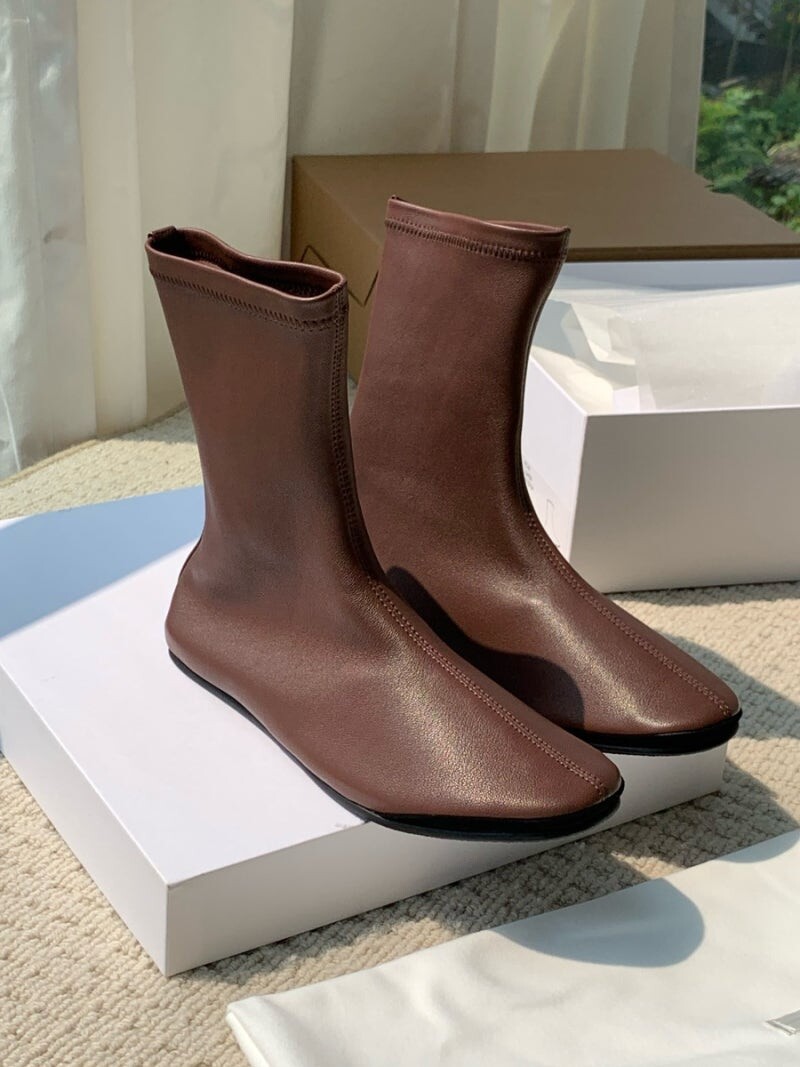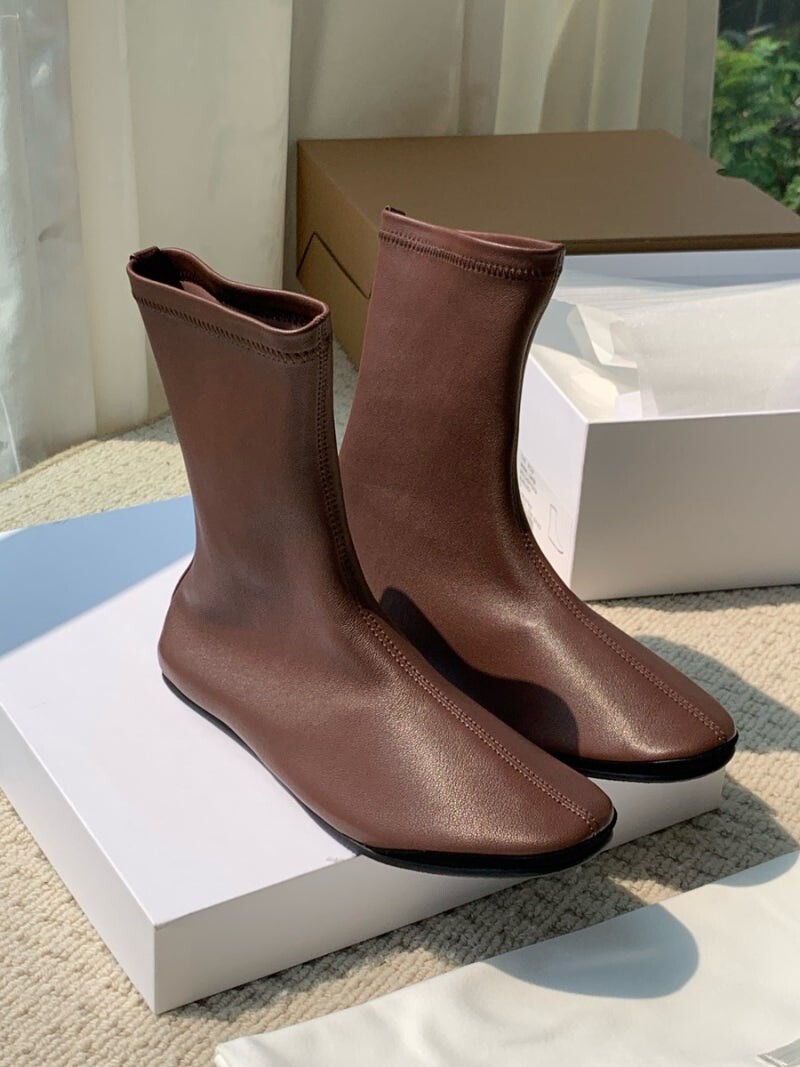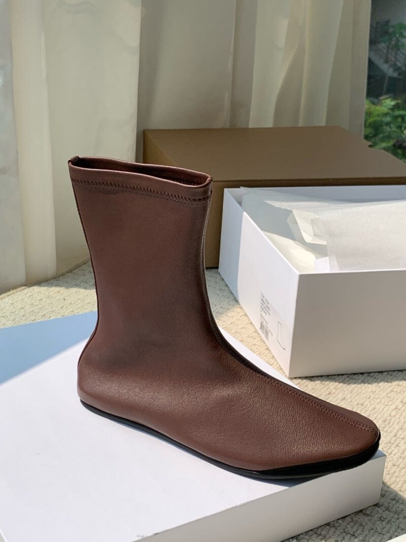 스트레치 나파 가죽 소재의 미니멀 풀온 삭스 부츠. 슬림 핏 및 유연한 밑창.