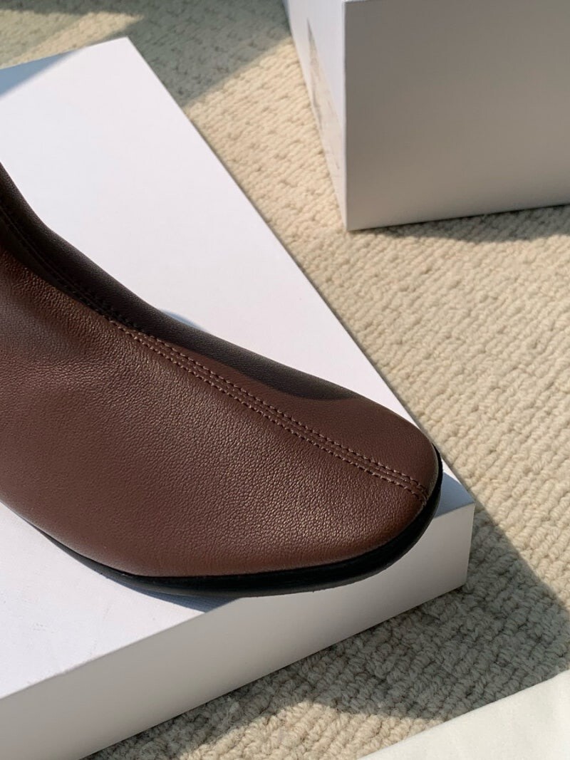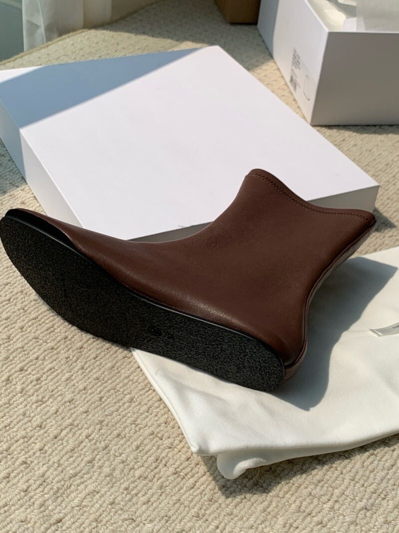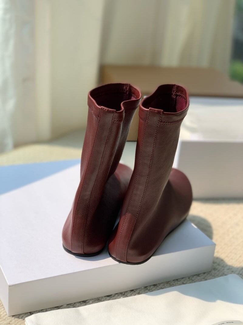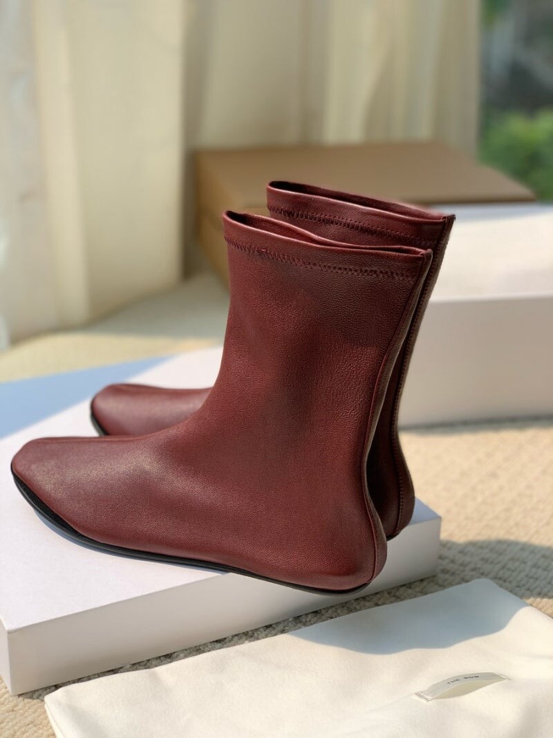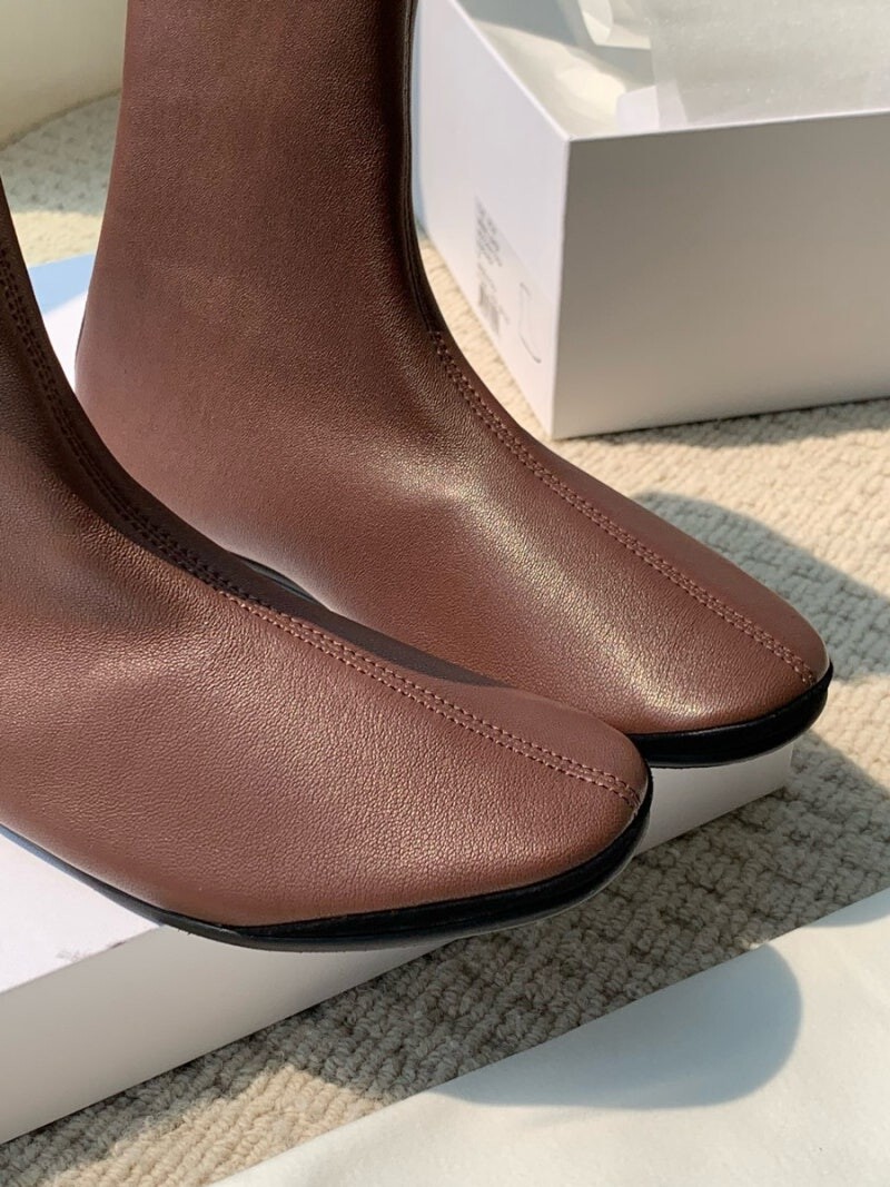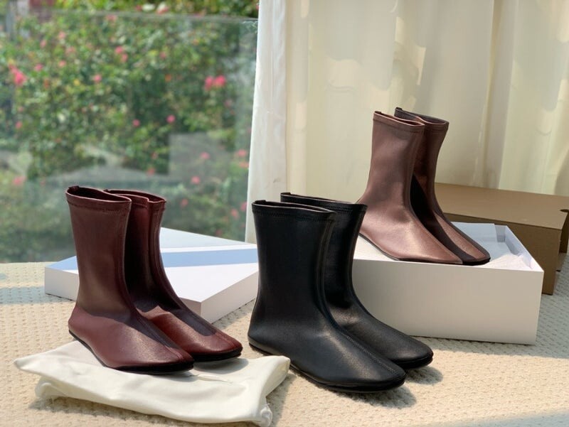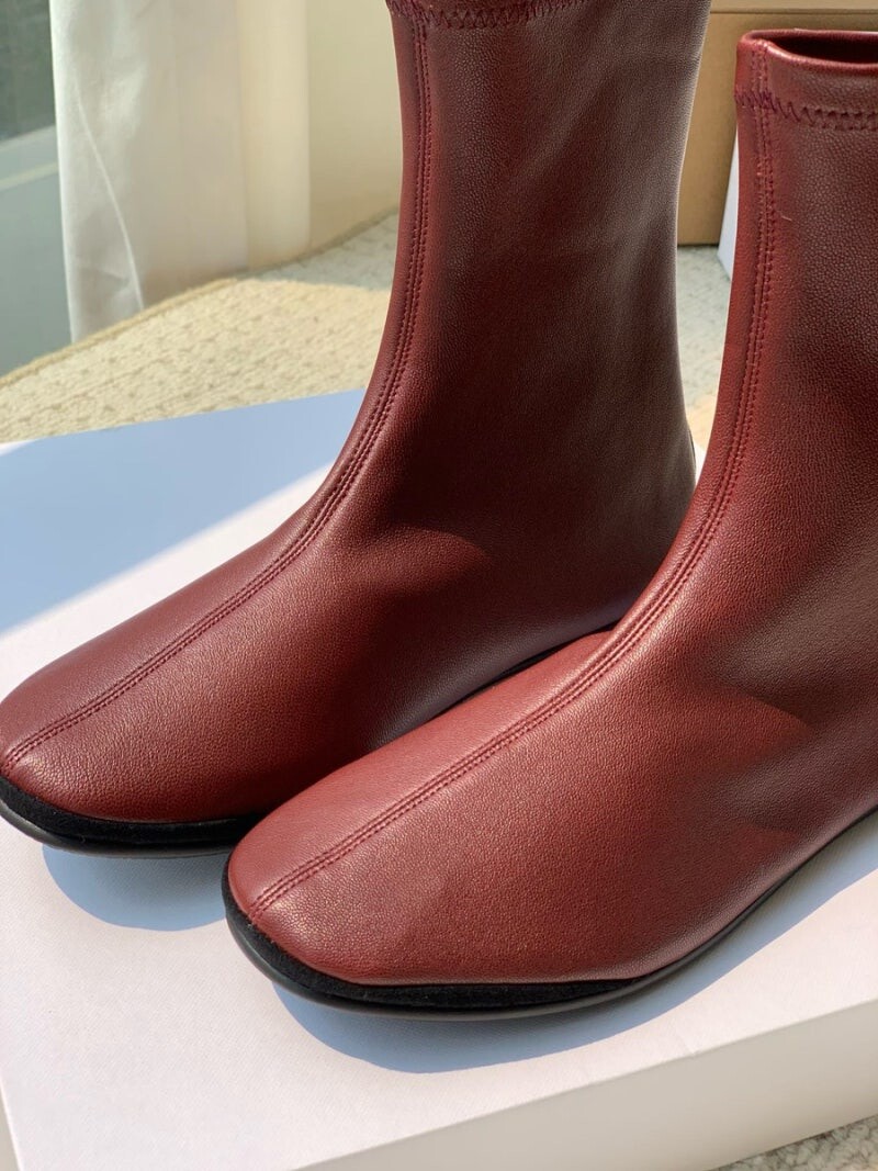 스트레치 나파 가죽 소재의 미니멀 풀온 삭스 부츠. 슬림 핏 및 유연한 밑창.
