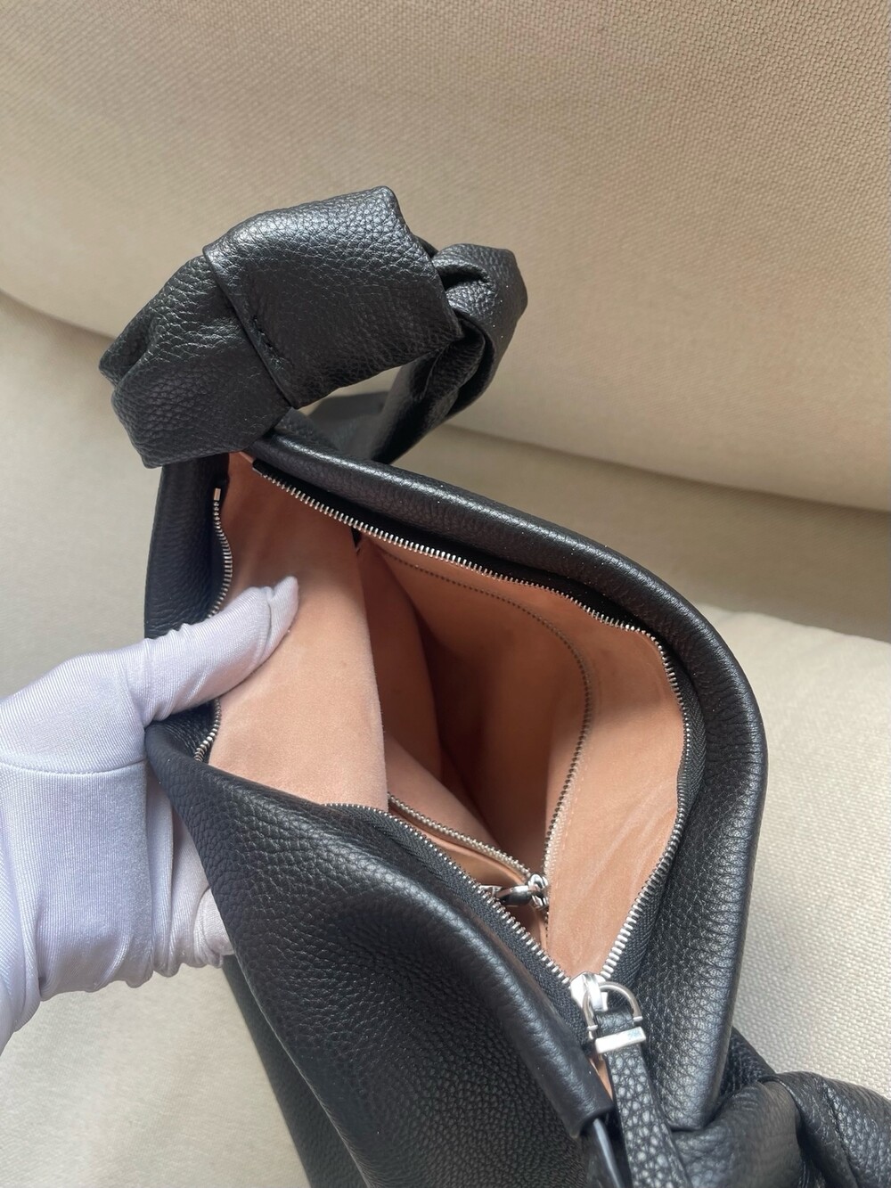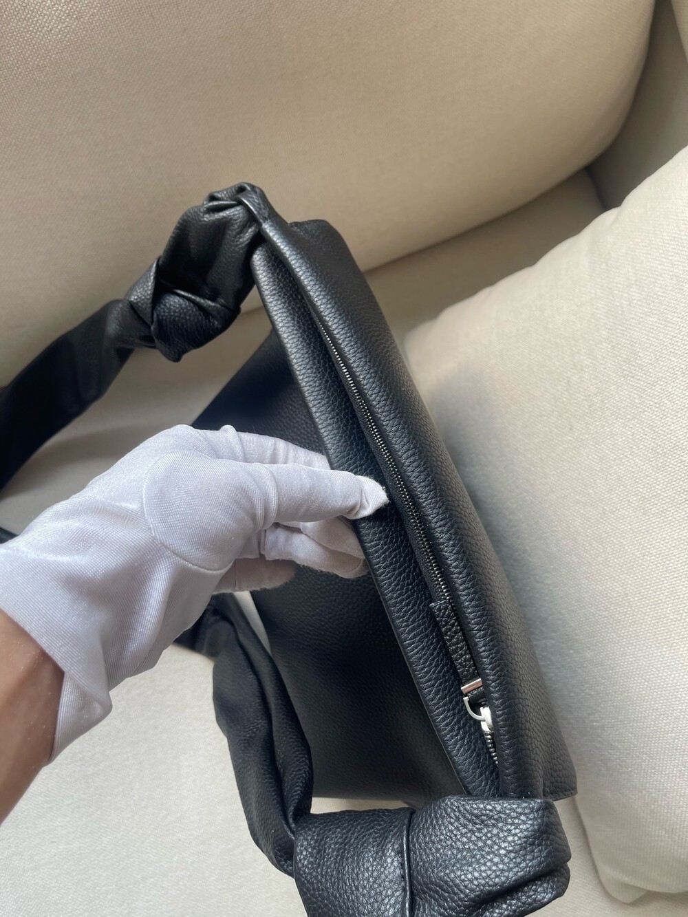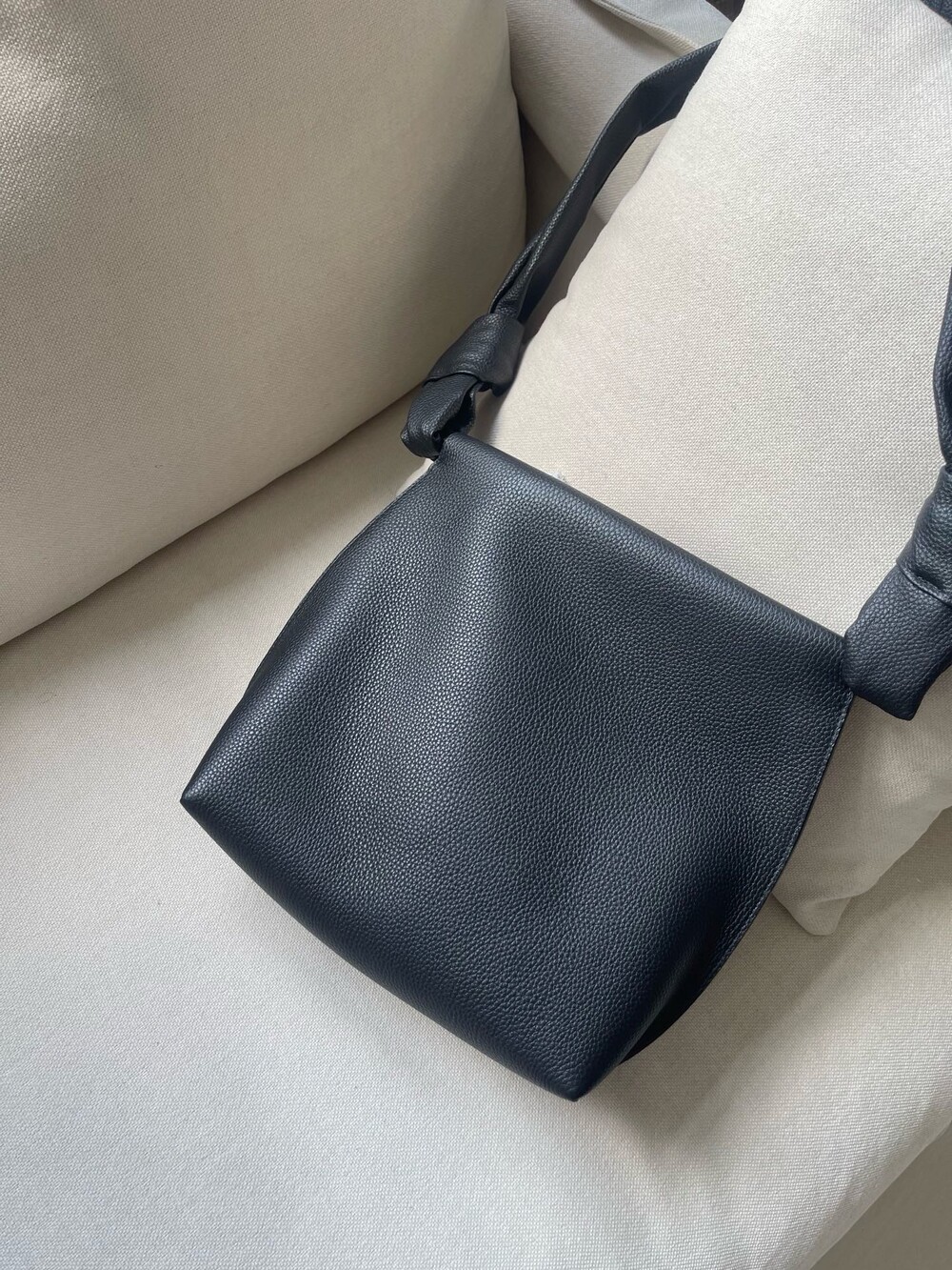 Wander 가방은 편안하고 시대를 초월한 우아함을 선사합니다. 블랙 천연 가죽으로 제작되었으며, 두 개의 매듭으로 묶인 시그니처 스트랩이 특징입니다. 노트북과 화장품 케이스를 포함한 모든 필수품을 보관할 수 있는 큰 내부 수납공간과 작은 지퍼 포켓이 있습니다.