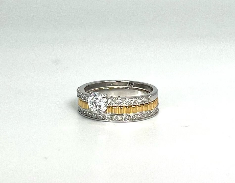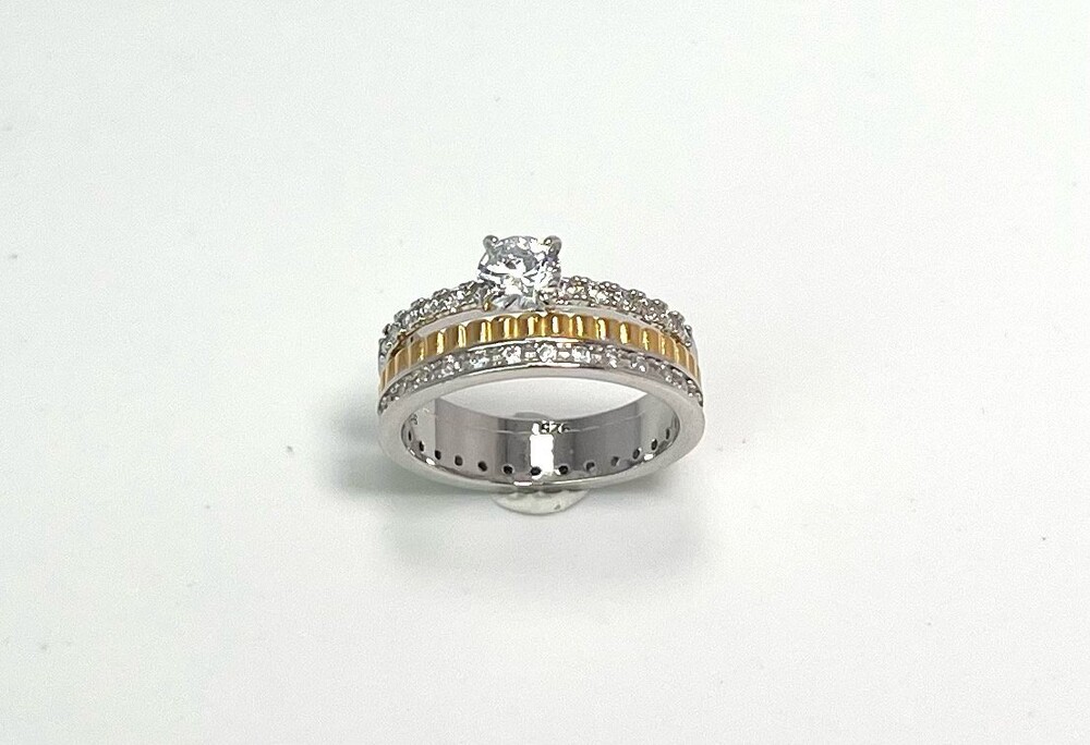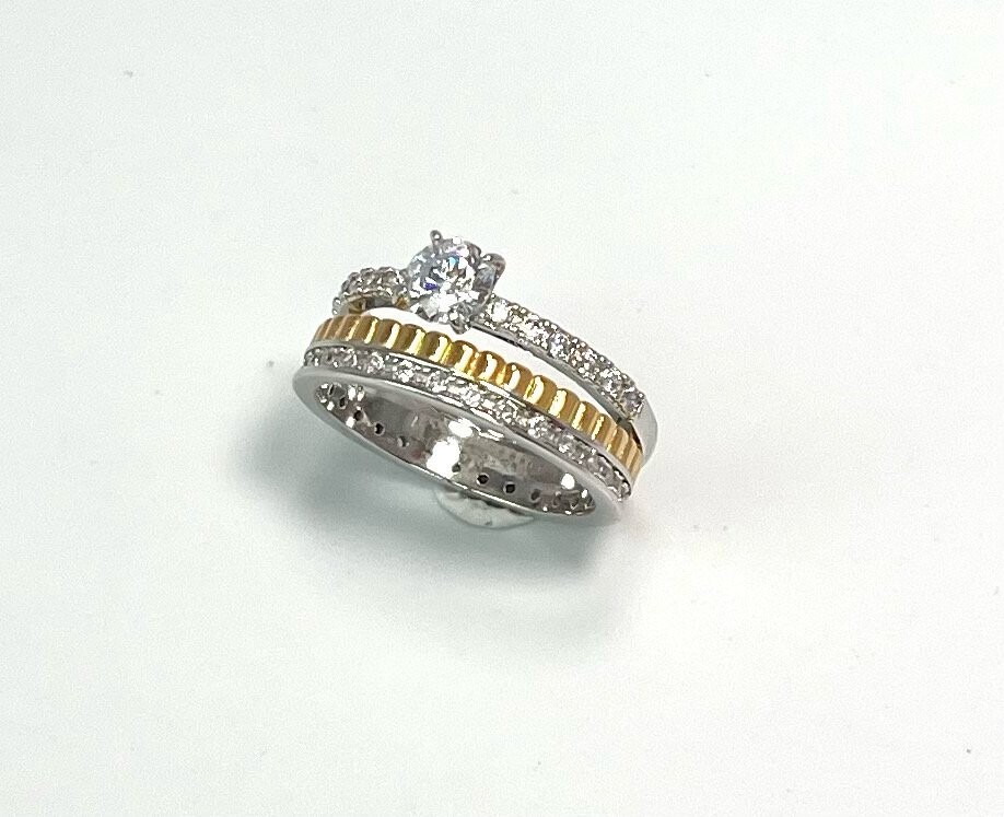 화이트&골드 콤비반지 / 화이트&큐빅 콤비반지