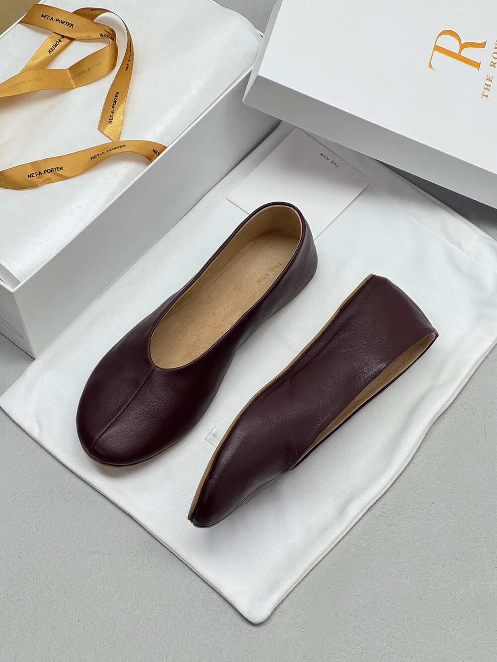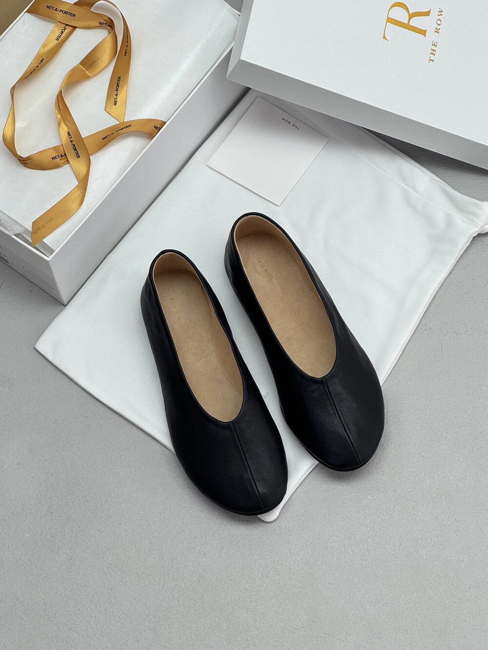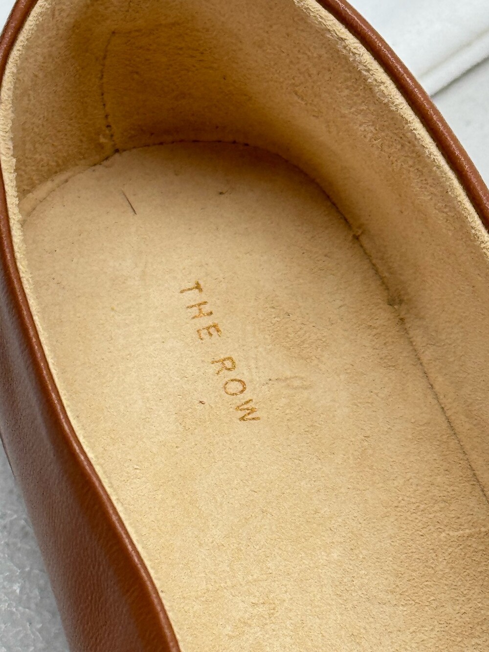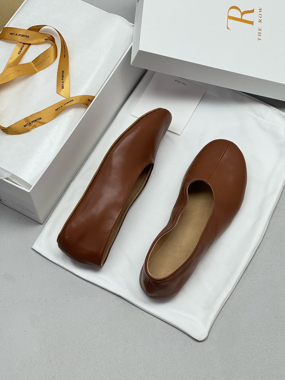 부드러운 나파 가죽 소재의 슬립온 슈즈로 타원형 토, 앞면 중앙 솔기와 유연한 고무 코팅 밑창이 특징입니다.