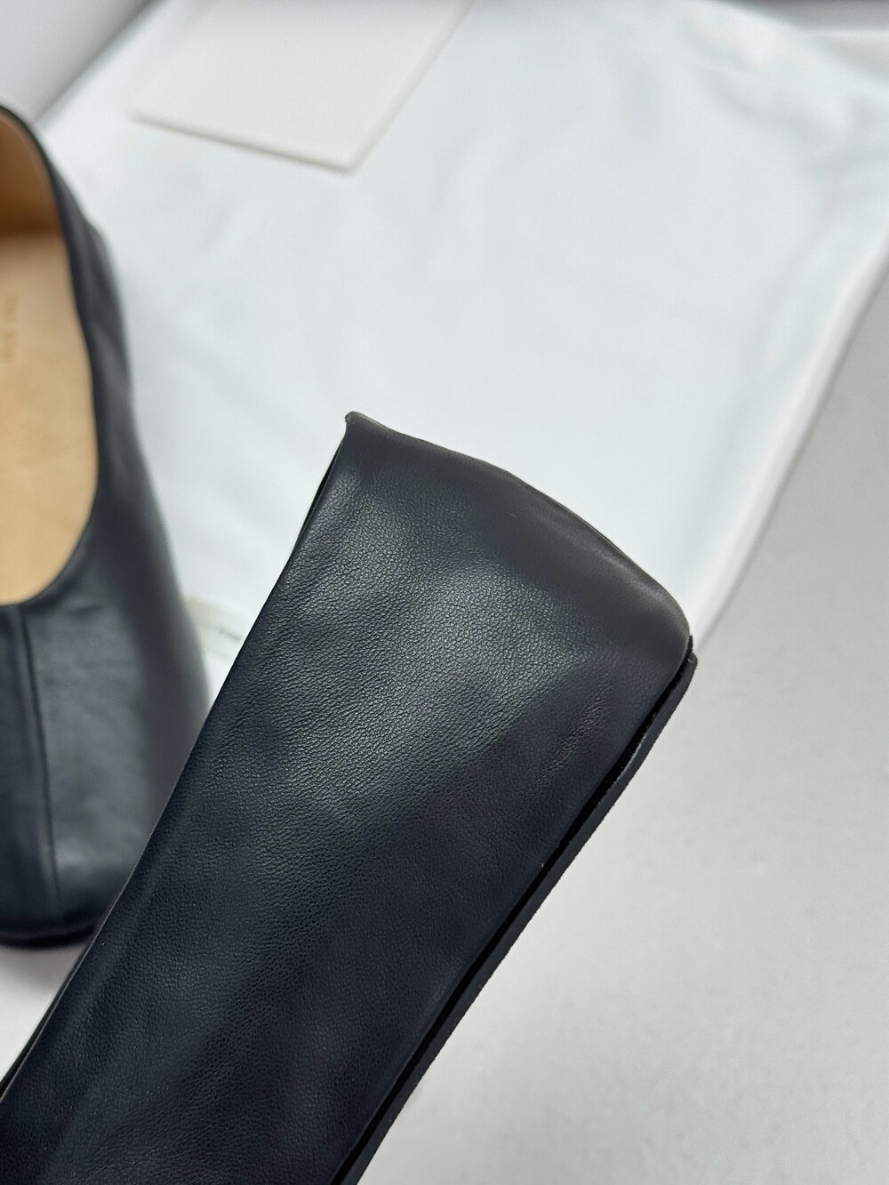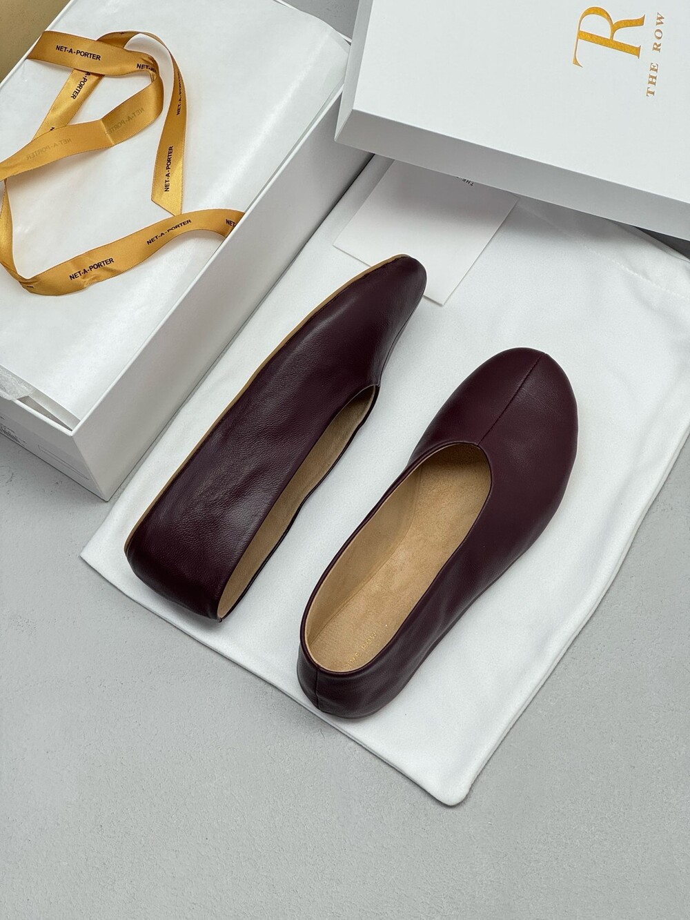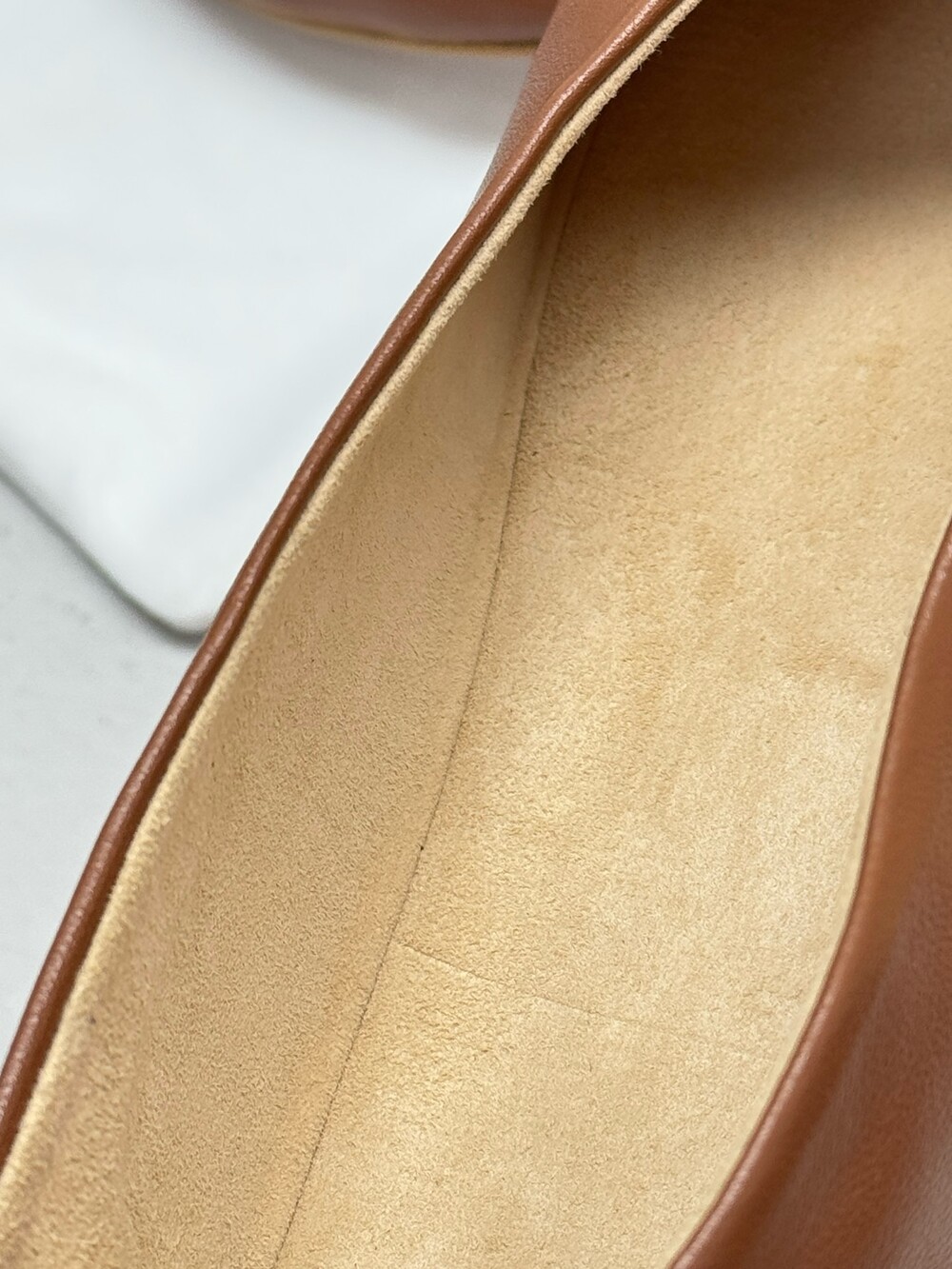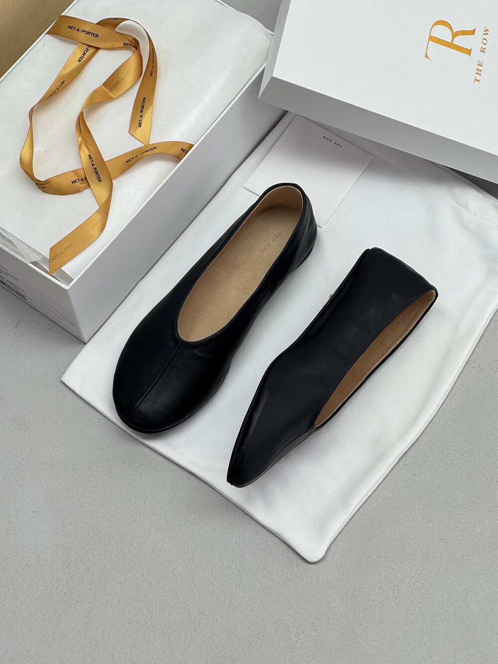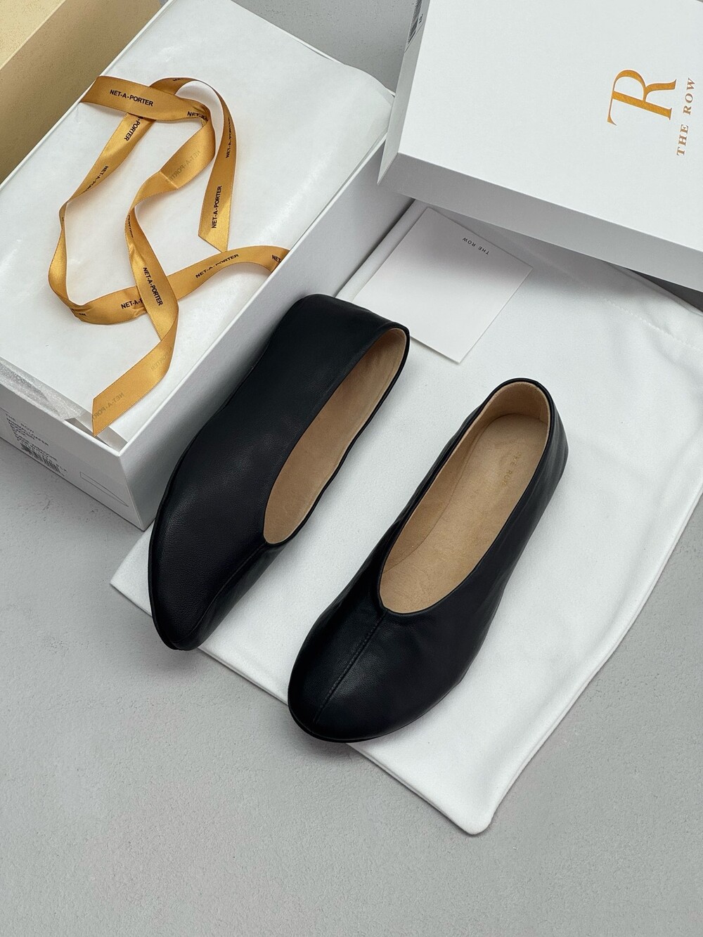 부드러운 나파 가죽 소재의 슬립온 슈즈로 타원형 토, 앞면 중앙 솔기와 유연한 고무 코팅 밑창이 특징입니다.