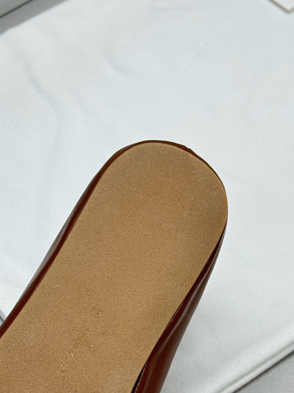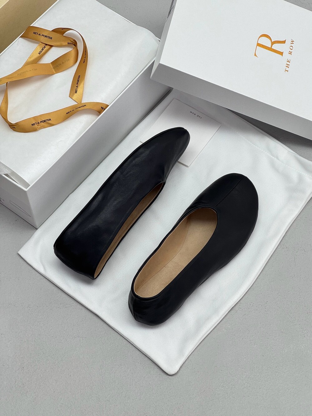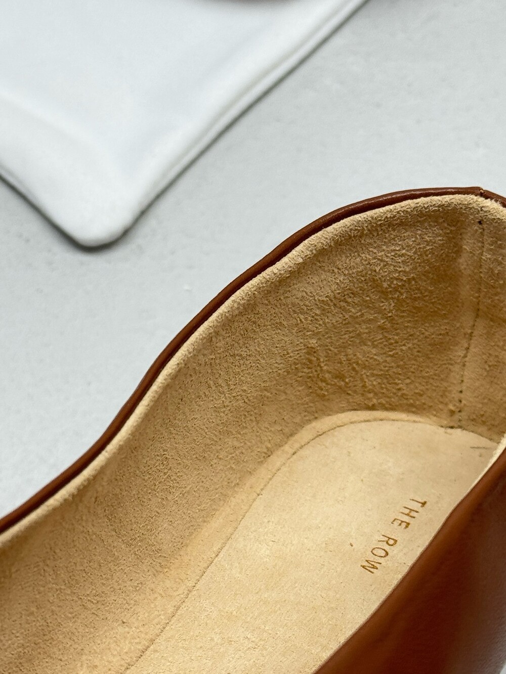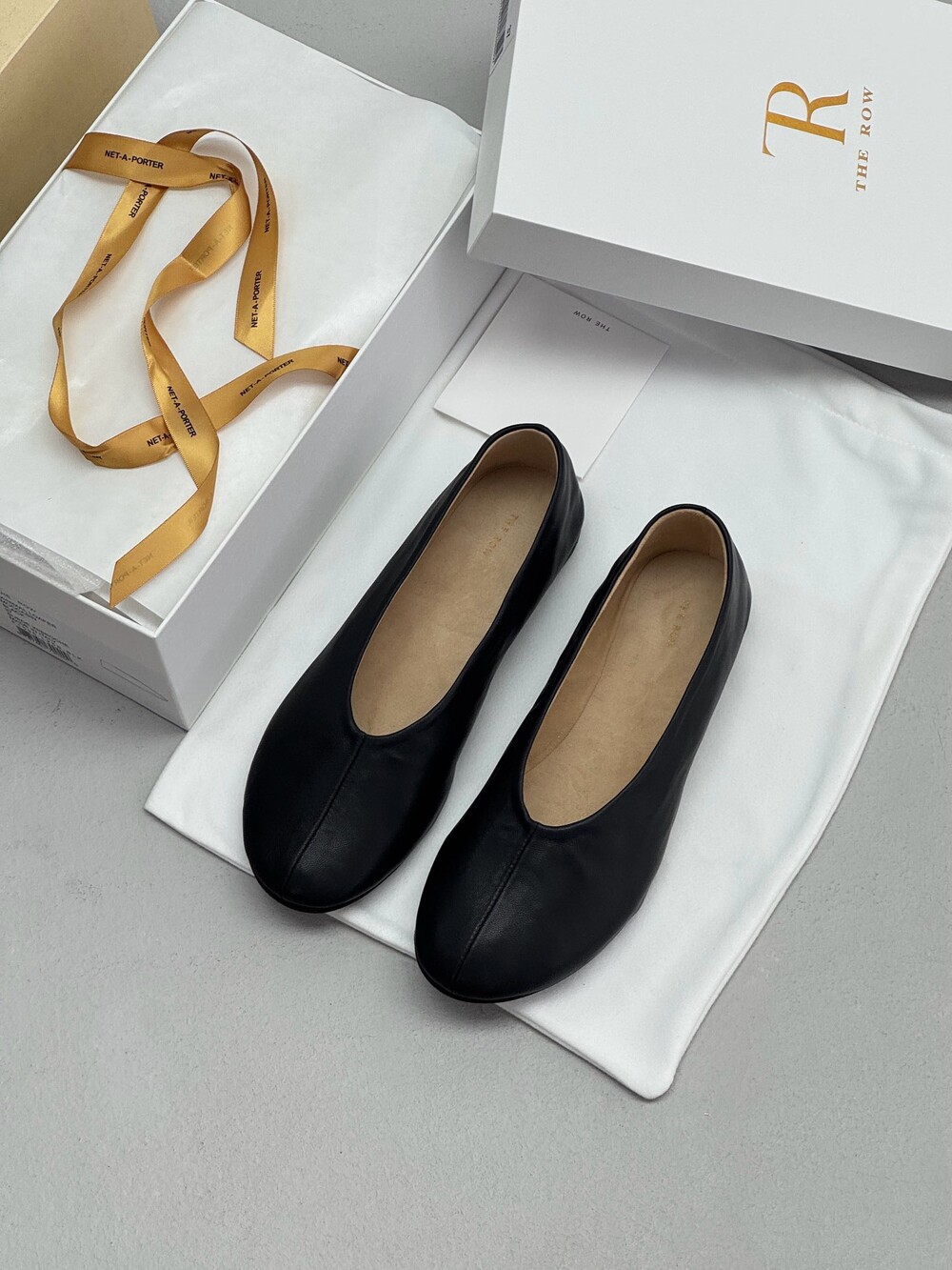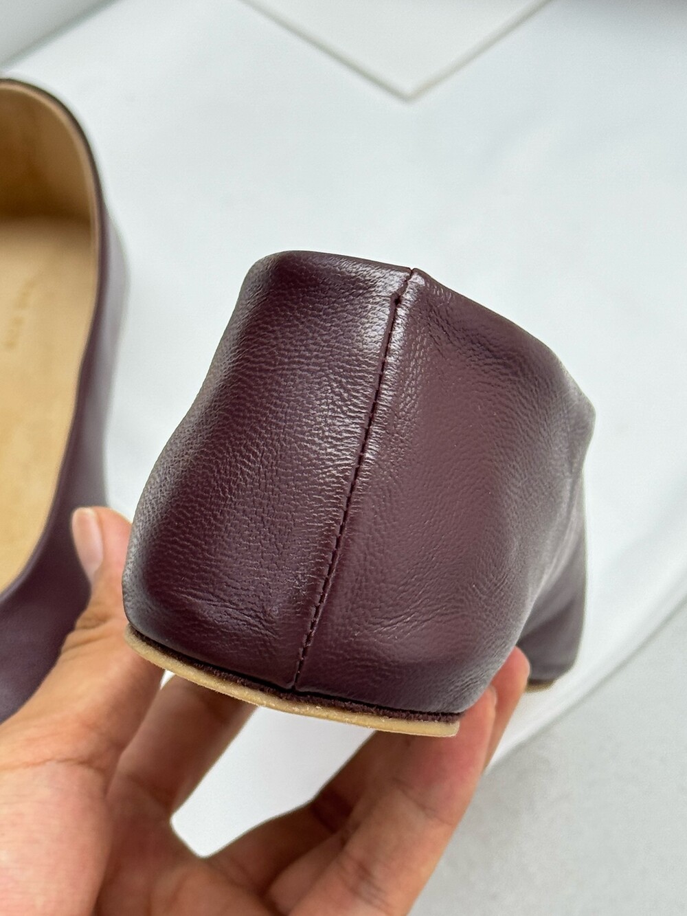 부드러운 나파 가죽 소재의 슬립온 슈즈로 타원형 토, 앞면 중앙 솔기와 유연한 고무 코팅 밑창이 특징입니다.