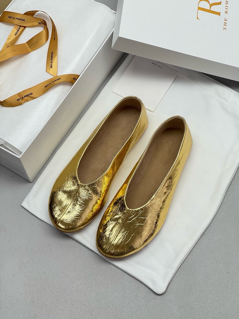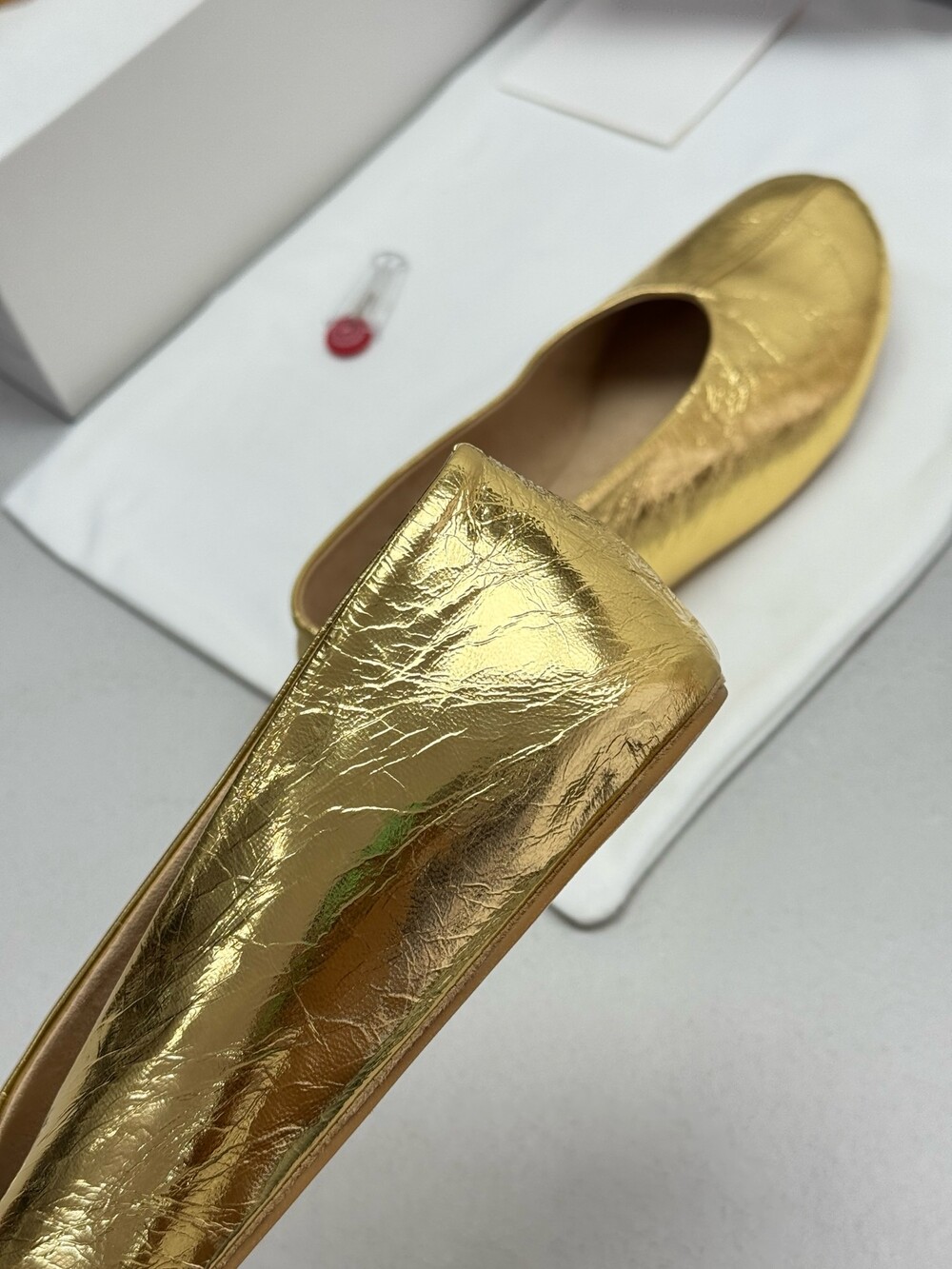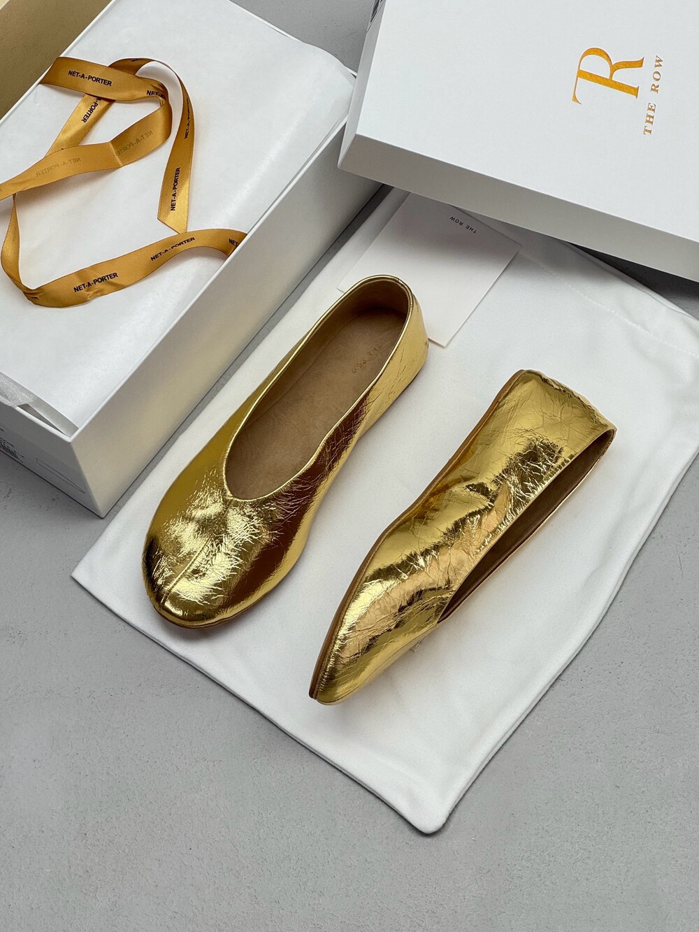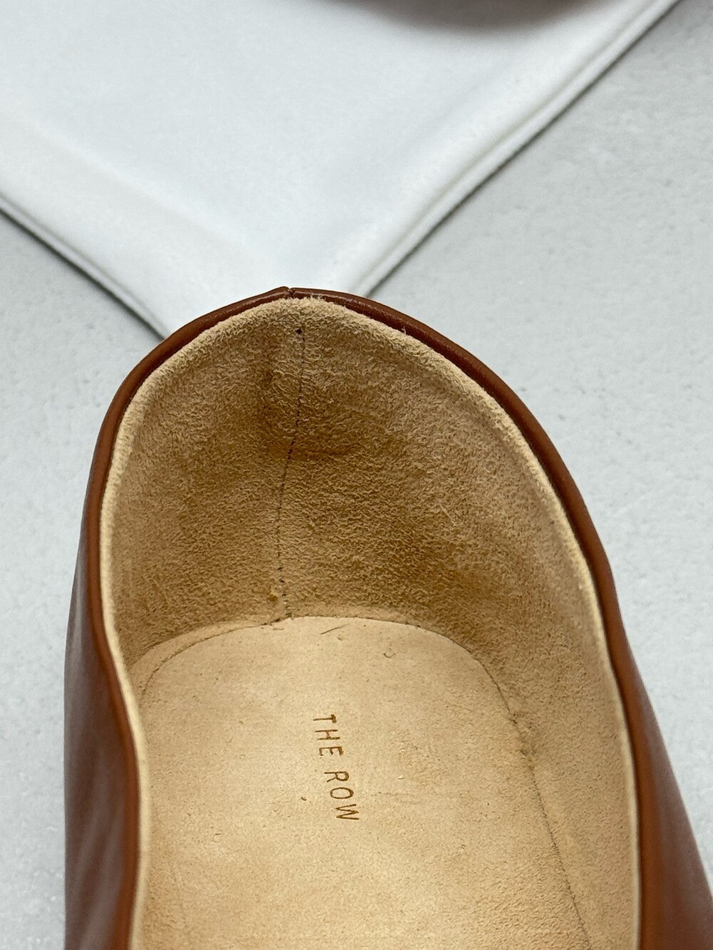 부드러운 나파 가죽 소재의 슬립온 슈즈로 타원형 토, 앞면 중앙 솔기와 유연한 고무 코팅 밑창이 특징입니다.