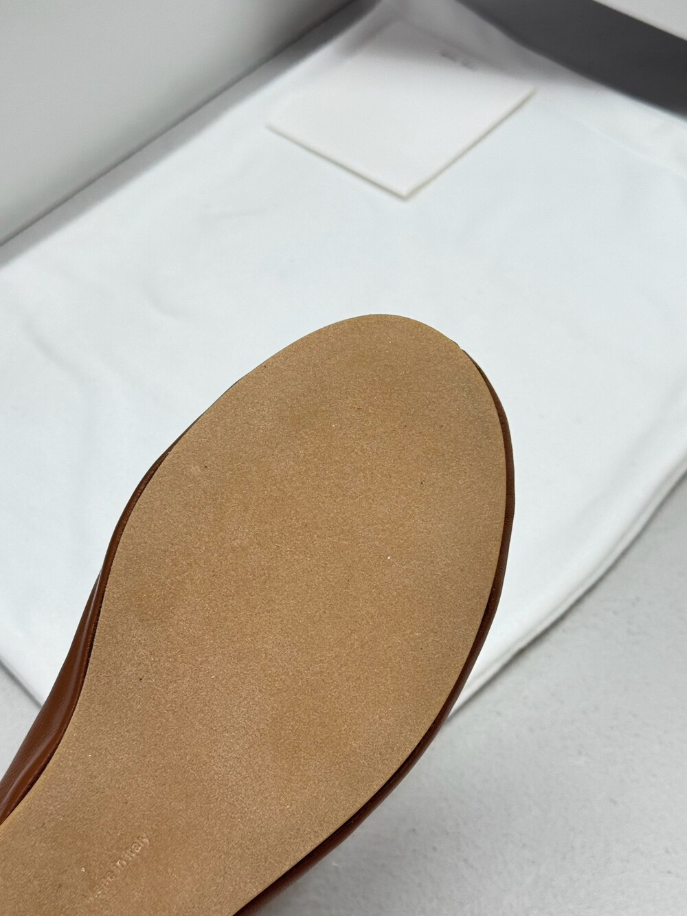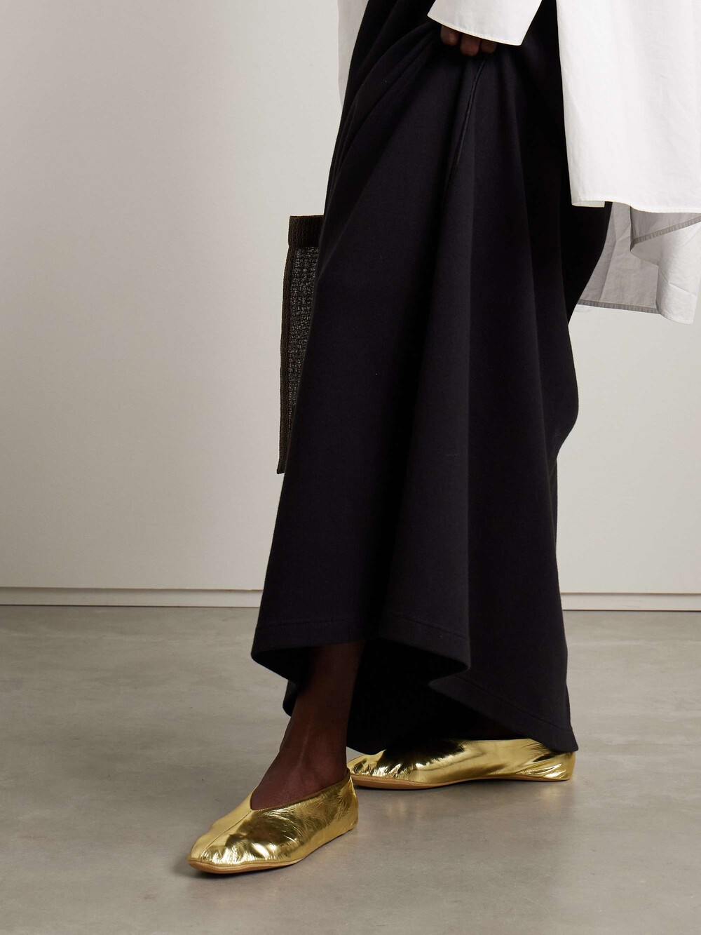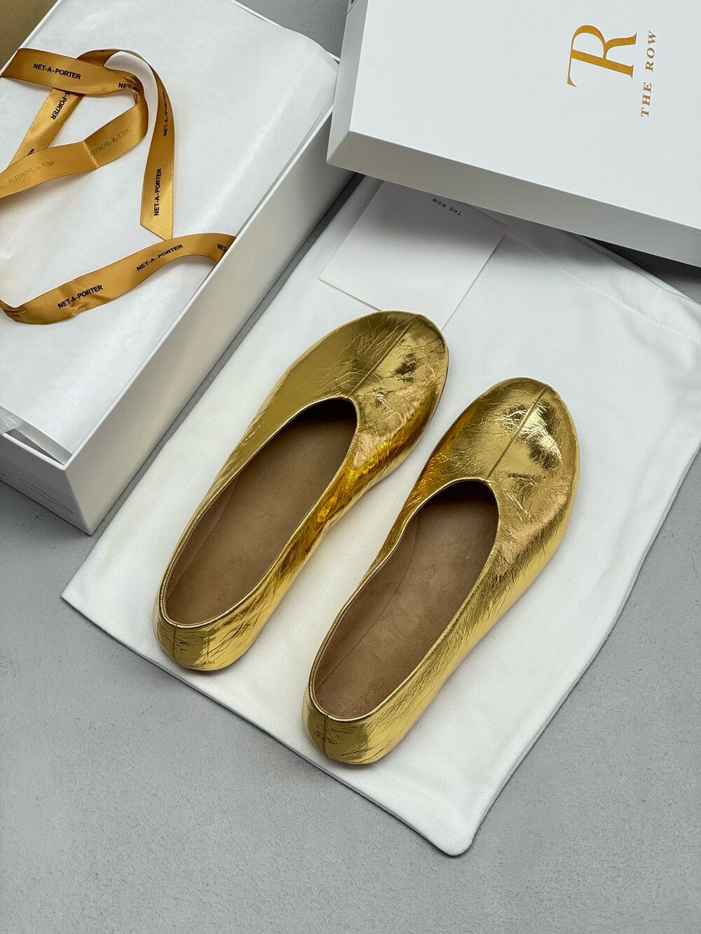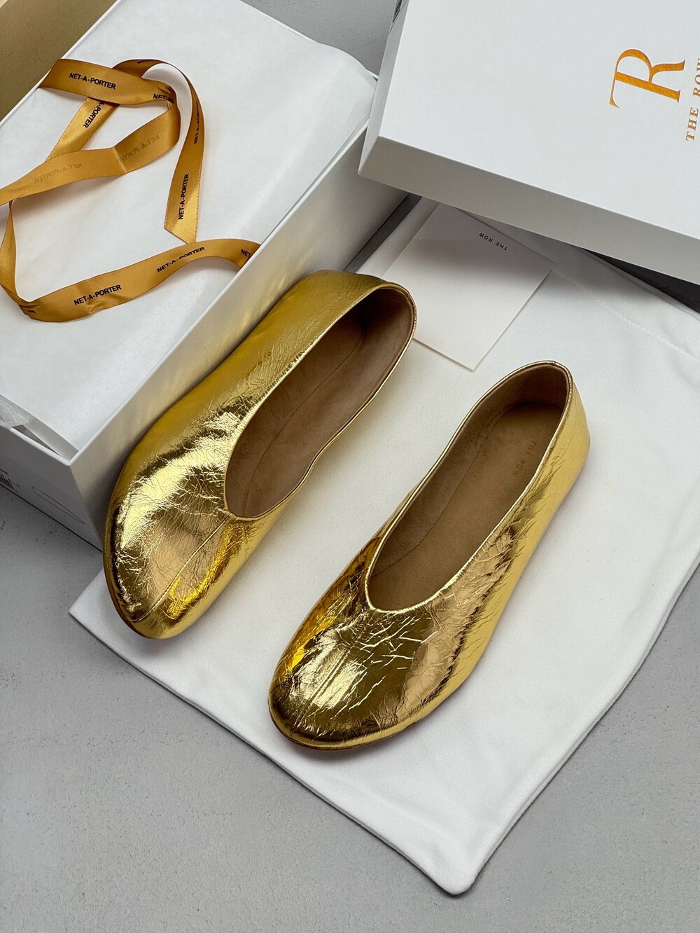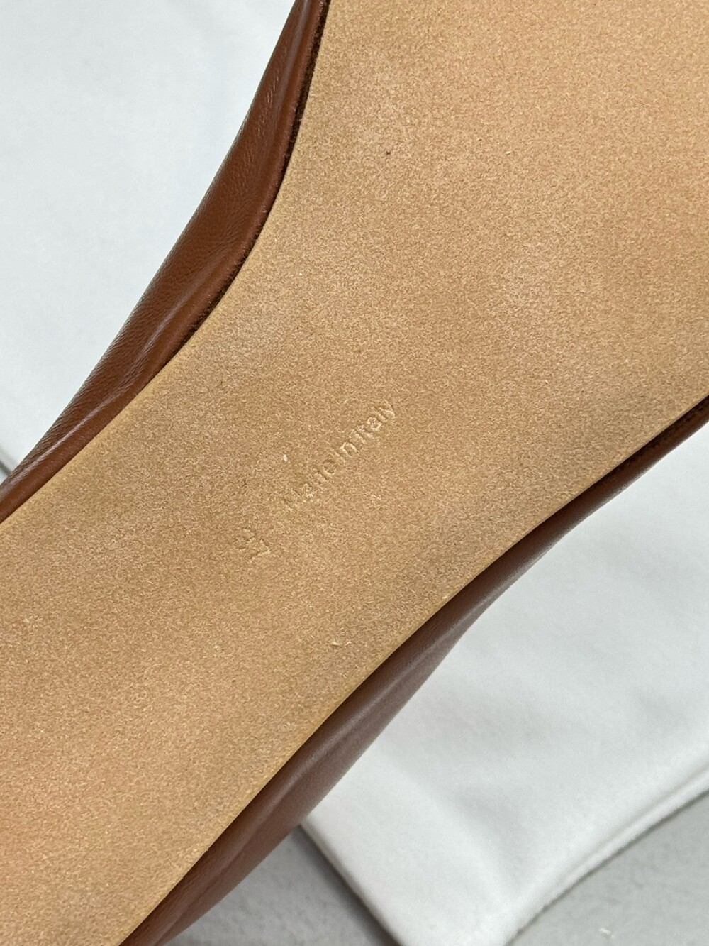 부드러운 나파 가죽 소재의 슬립온 슈즈로 타원형 토, 앞면 중앙 솔기와 유연한 고무 코팅 밑창이 특징입니다.