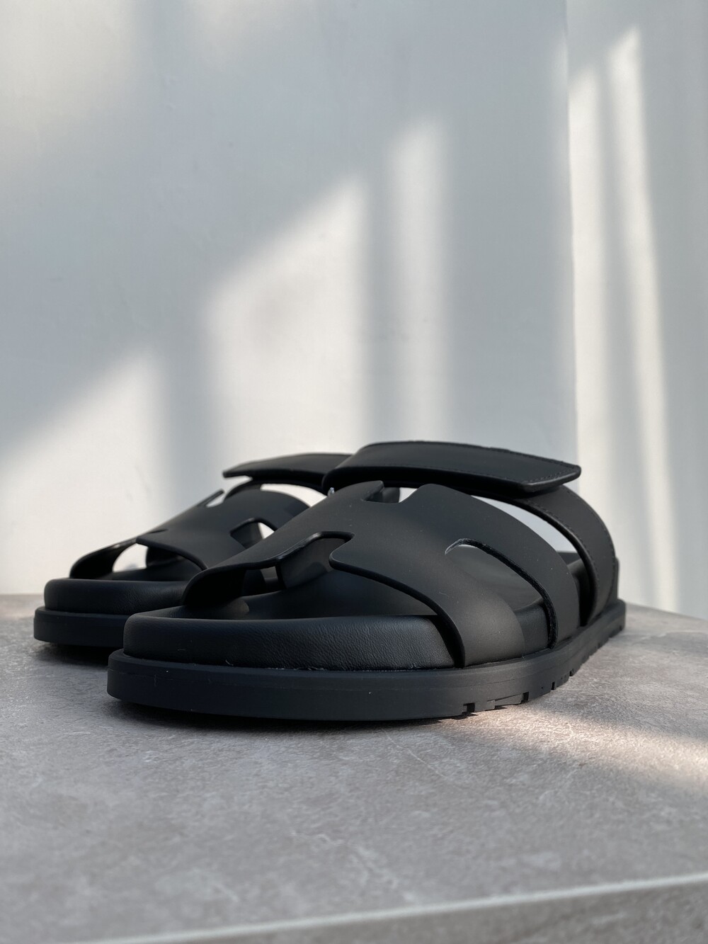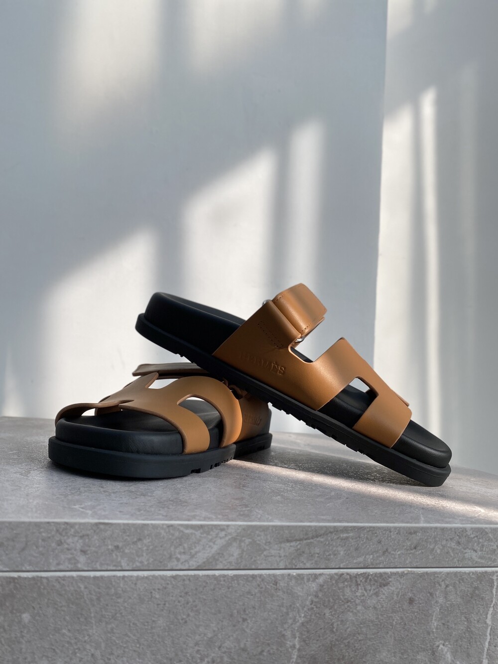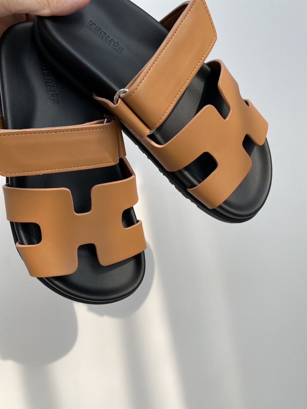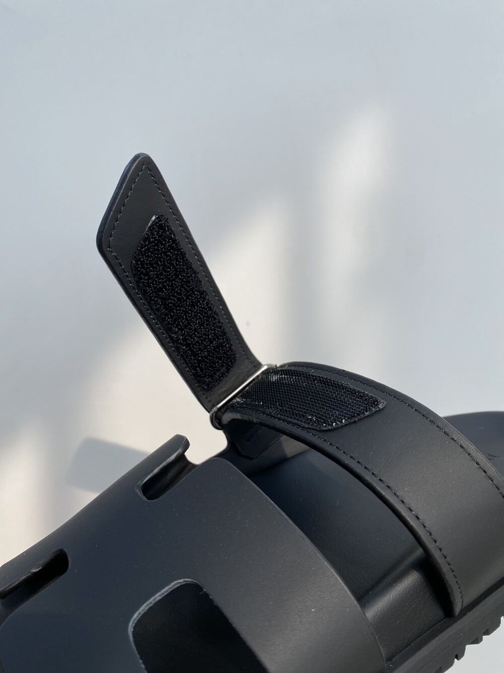 인체공학적 고무 밑창과 조절 가능한 스트랩이 특징인 송아지 가죽 소재의 테크노 샌들입니다.