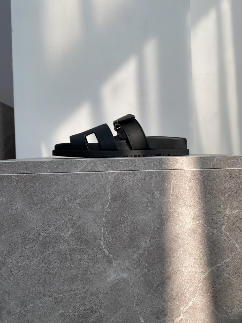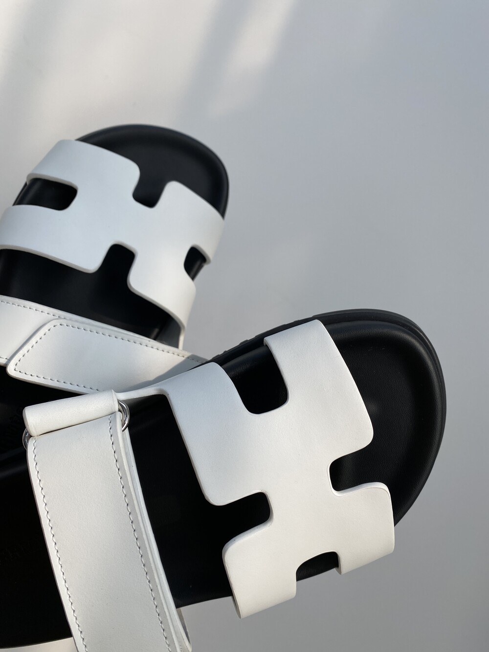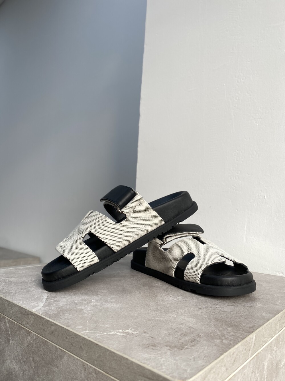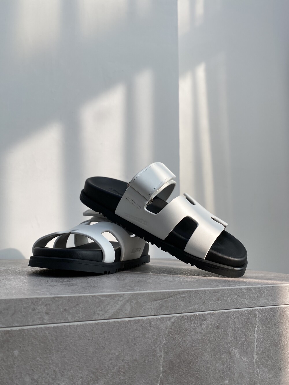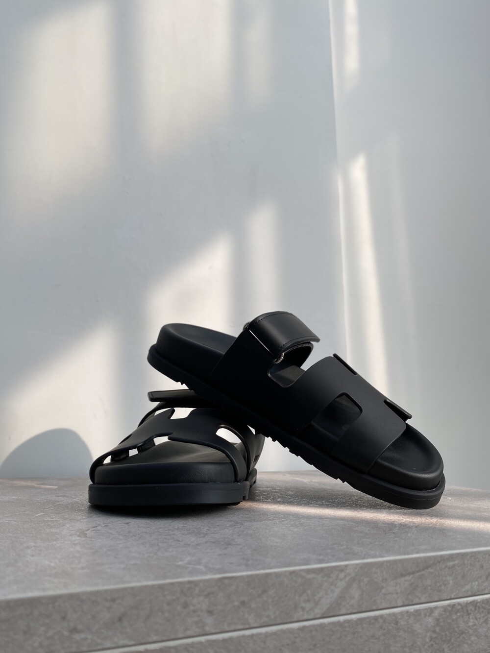 인체공학적 고무 밑창과 조절 가능한 스트랩이 특징인 송아지 가죽 소재의 테크노 샌들입니다.