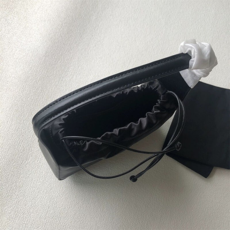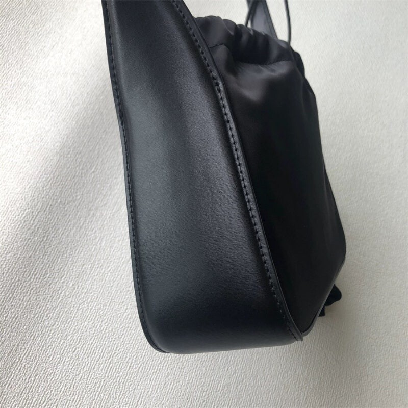 더스트백에서 영감을 얻은 가죽 드로스트링 클로저와 앞면 프린트 로고 디테일의 사첼