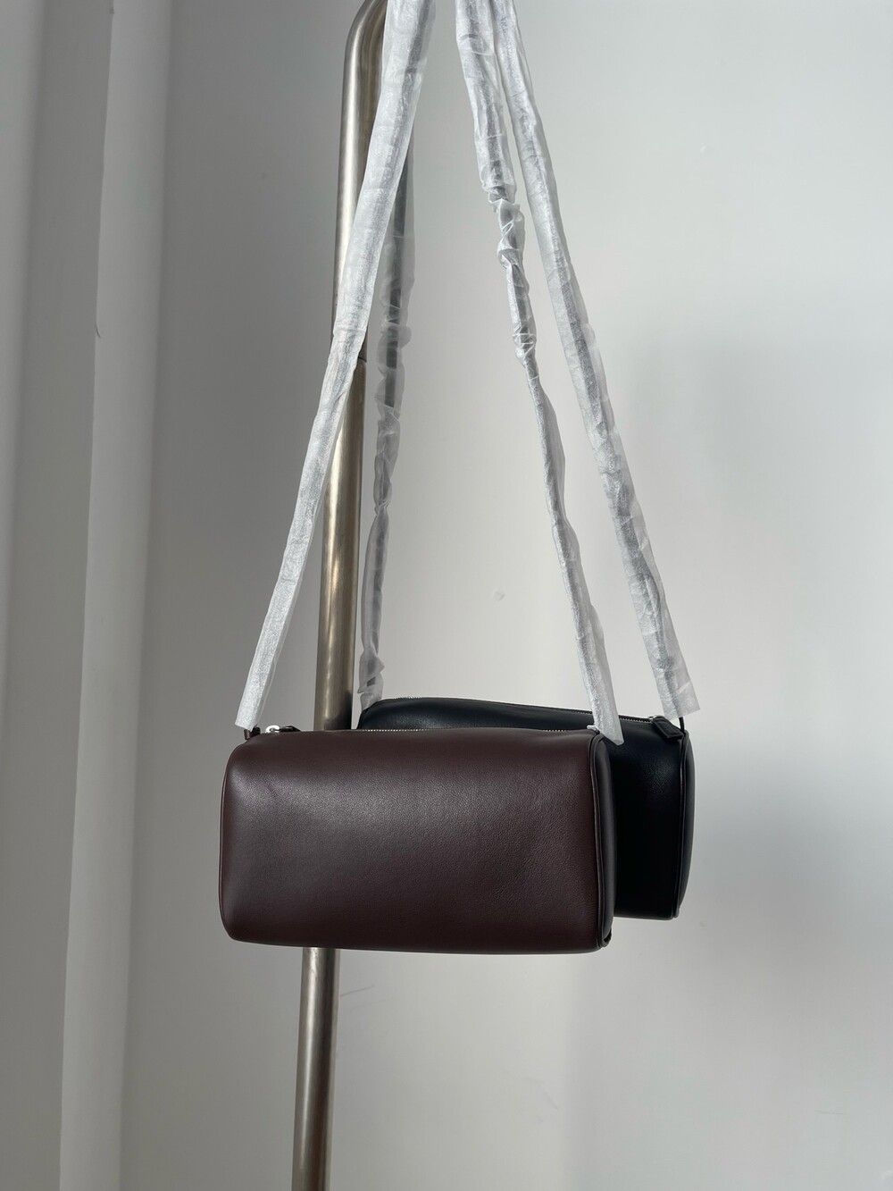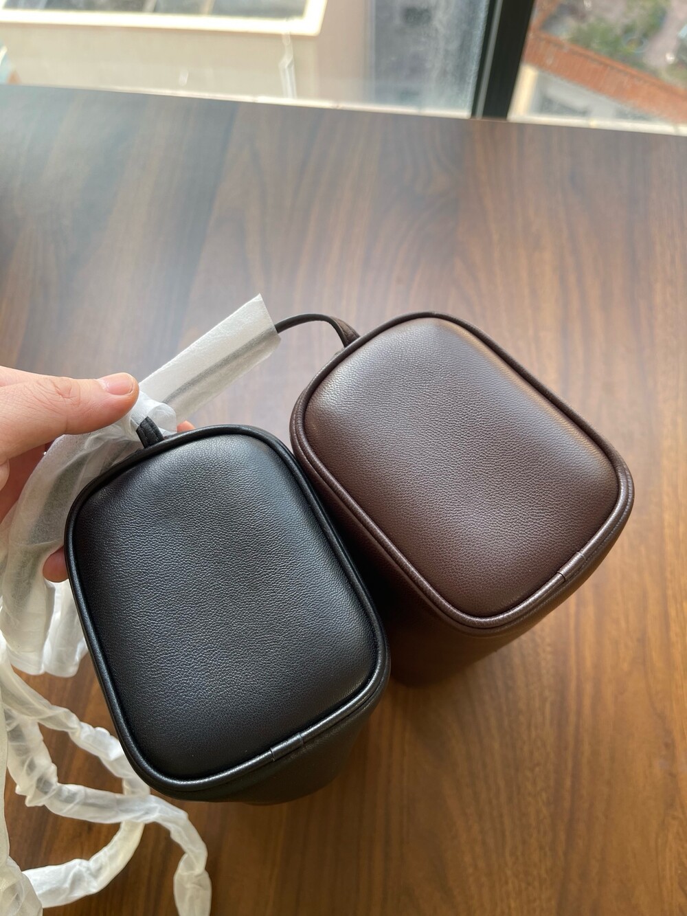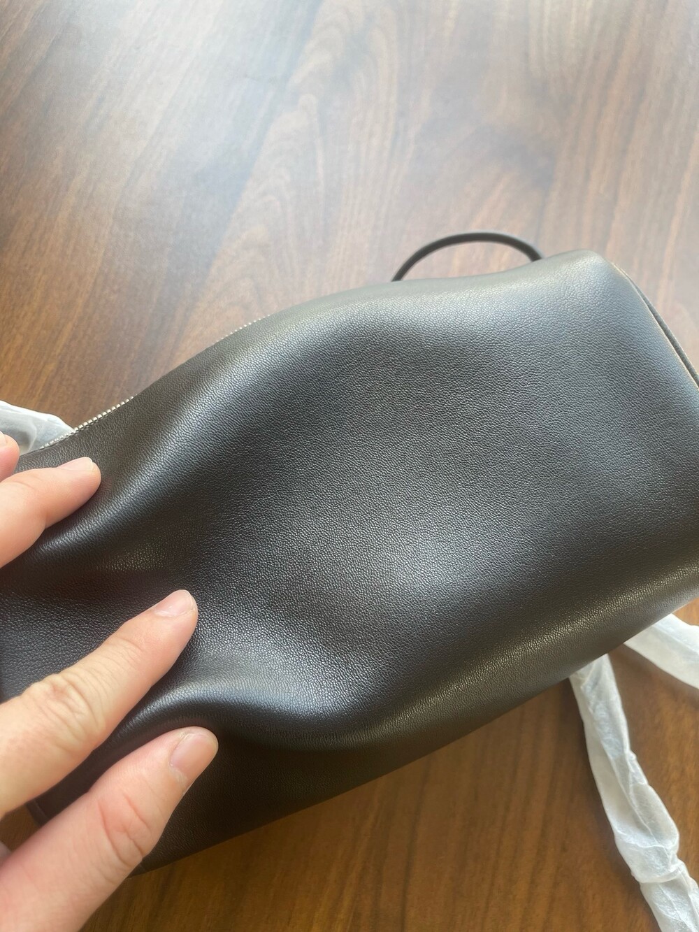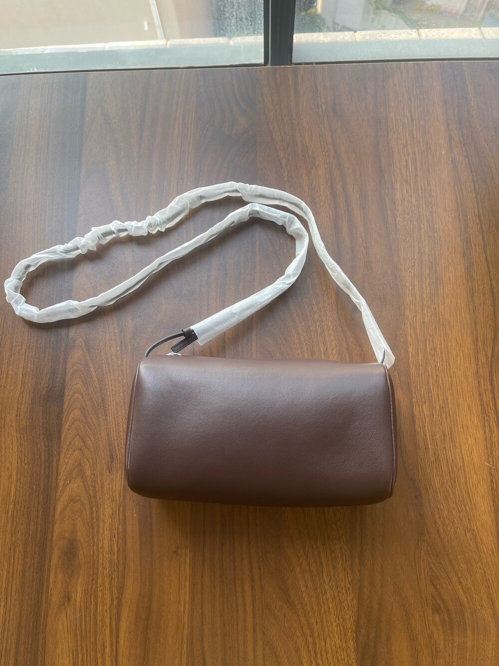 부드럽게 라운드 마감한 가장자리, 가죽 파이핑, 길이 조절 가능한 슬림 가죽 스트랩이 특징인 부드러운 나파 가죽 소재의 크로스바디 백.