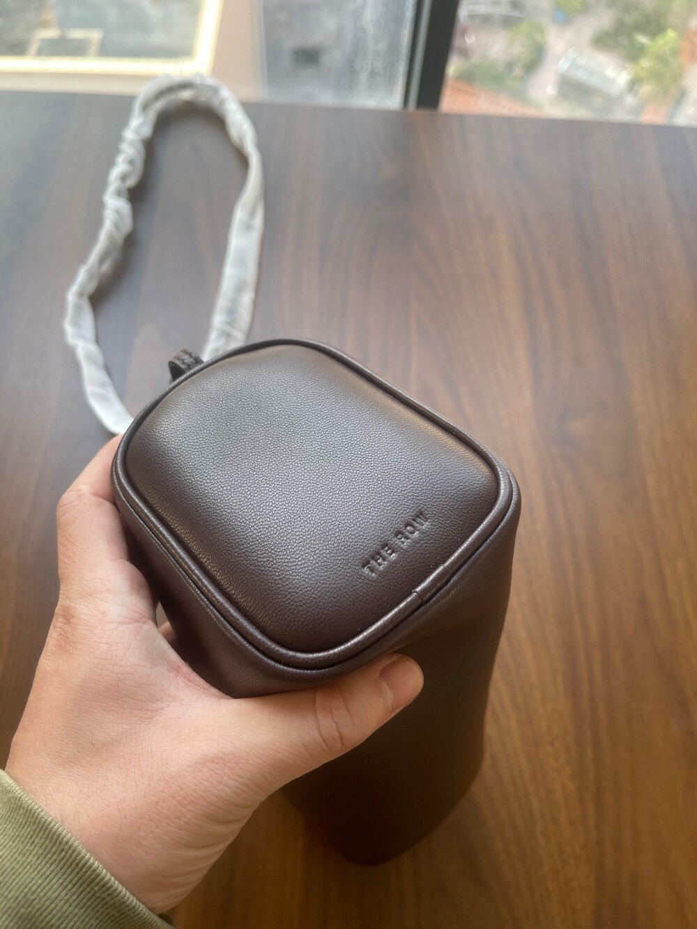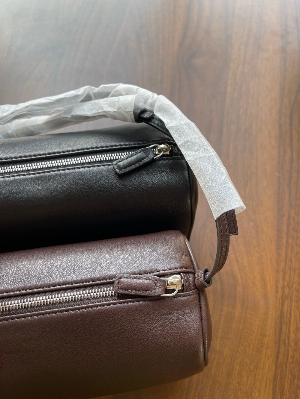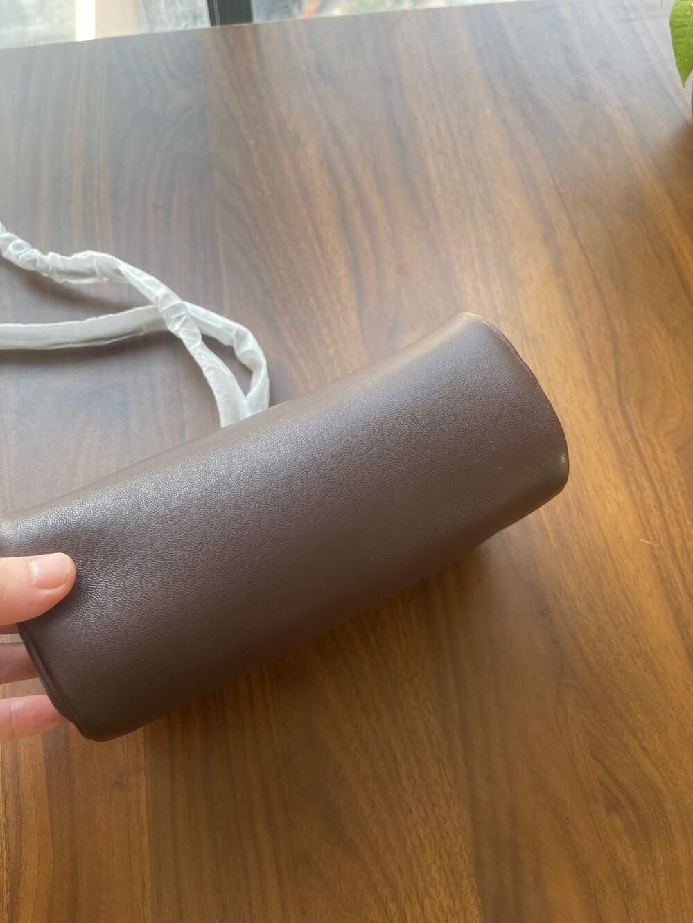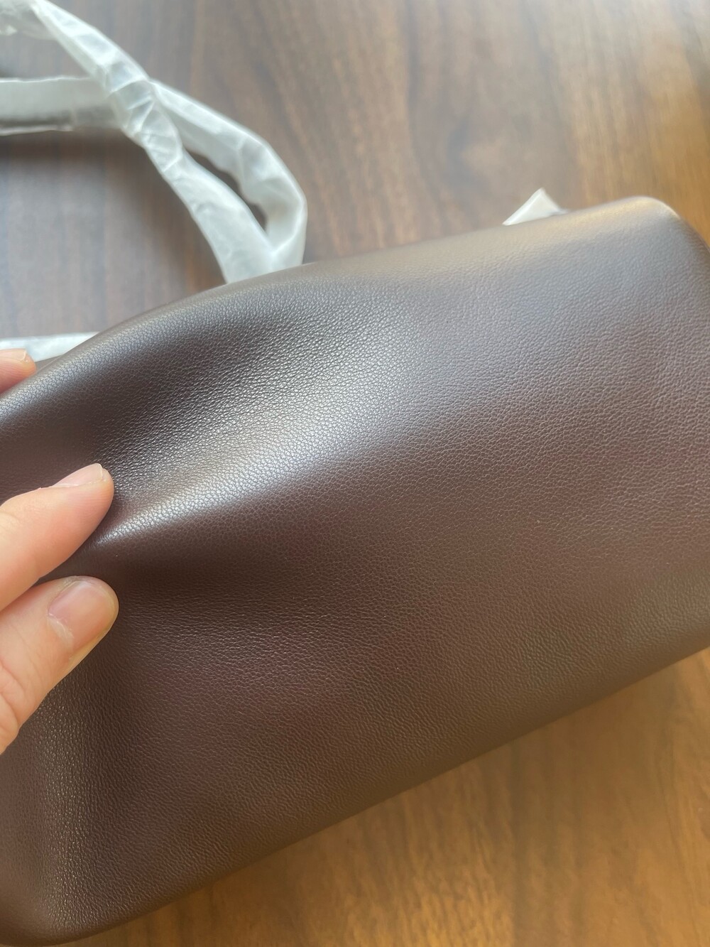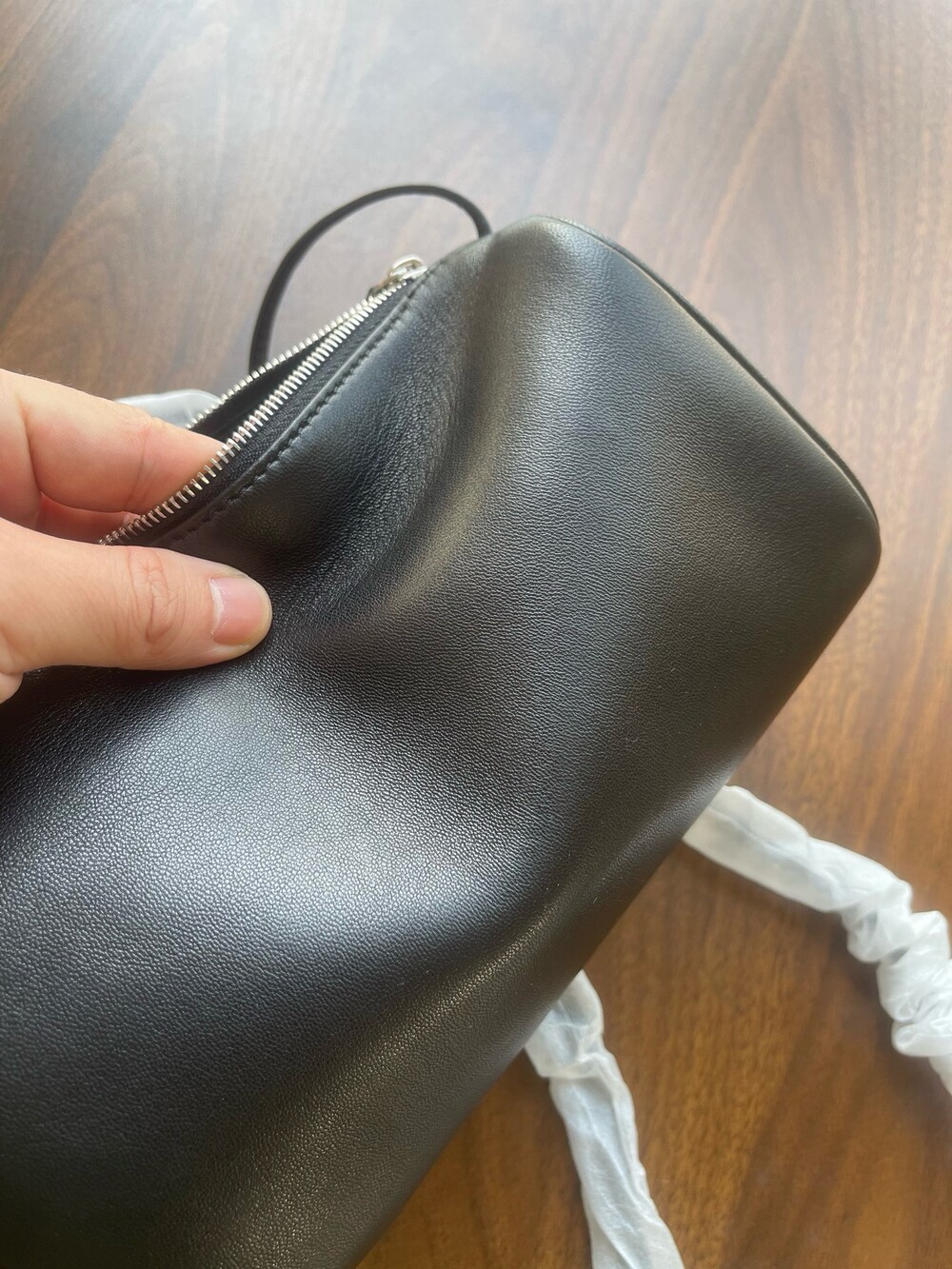 부드럽게 라운드 마감한 가장자리, 가죽 파이핑, 길이 조절 가능한 슬림 가죽 스트랩이 특징인 부드러운 나파 가죽 소재의 크로스바디 백.
