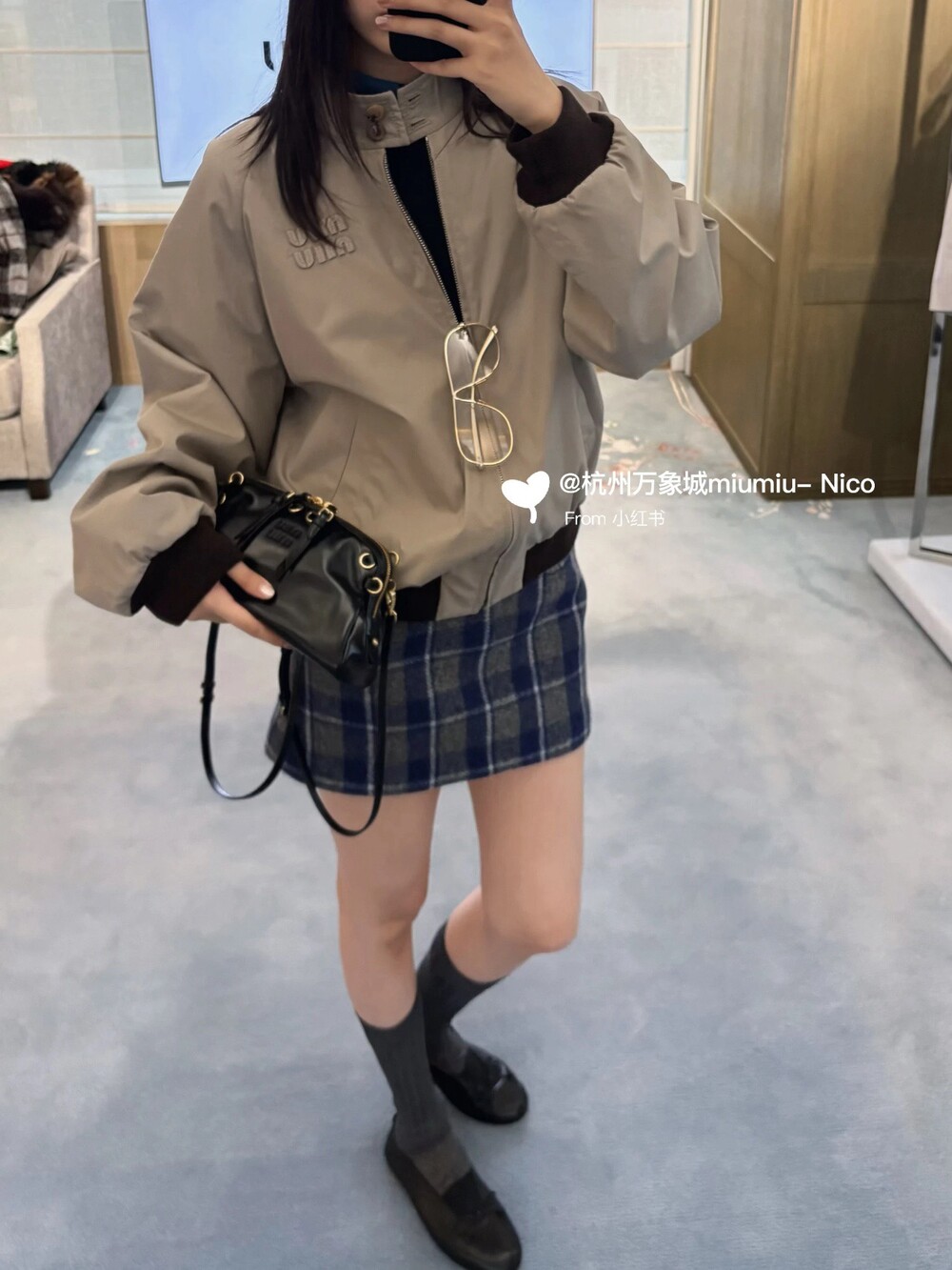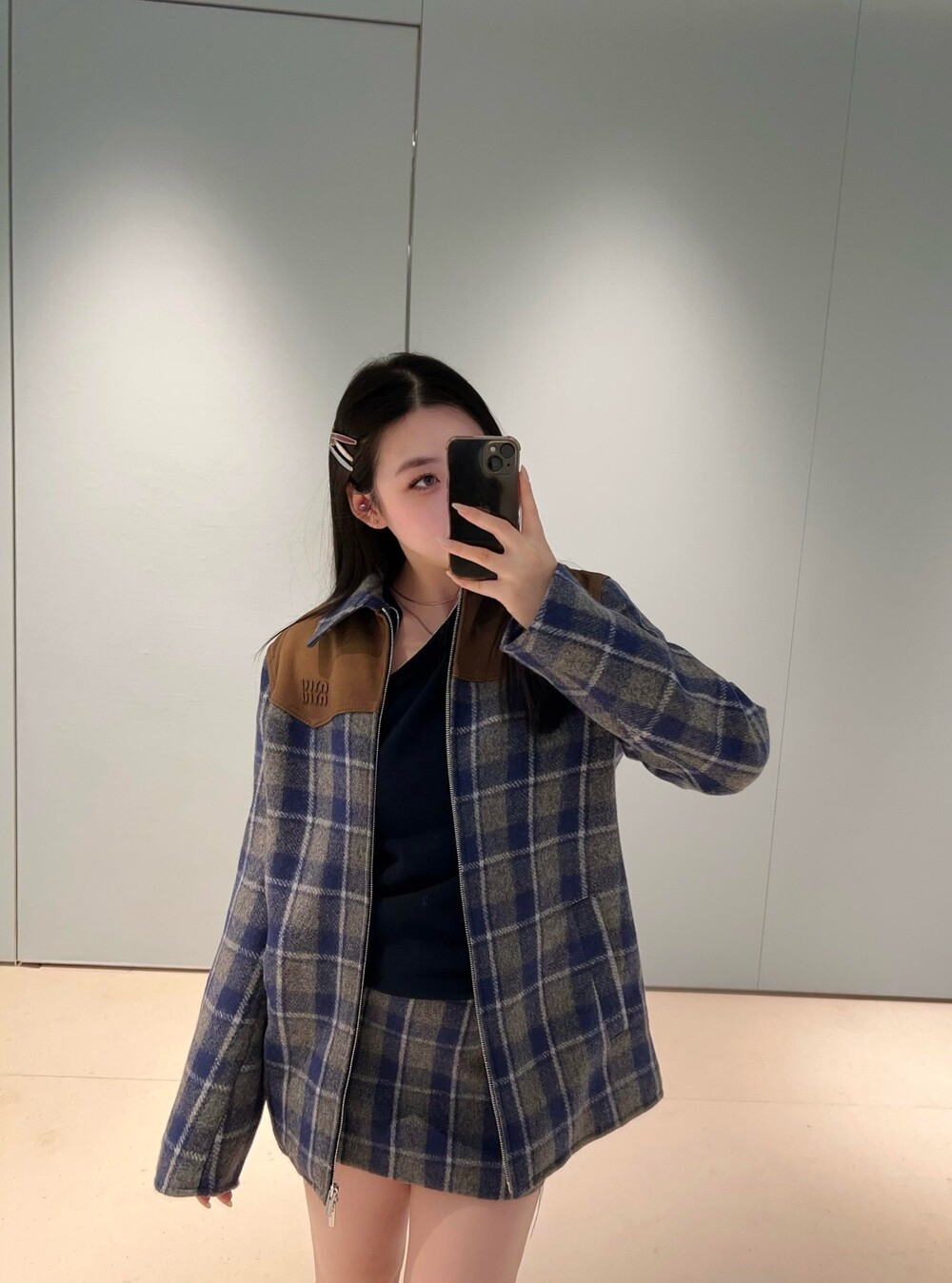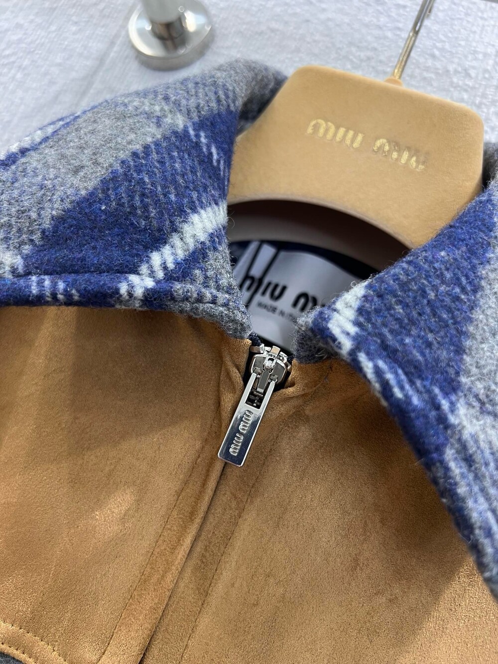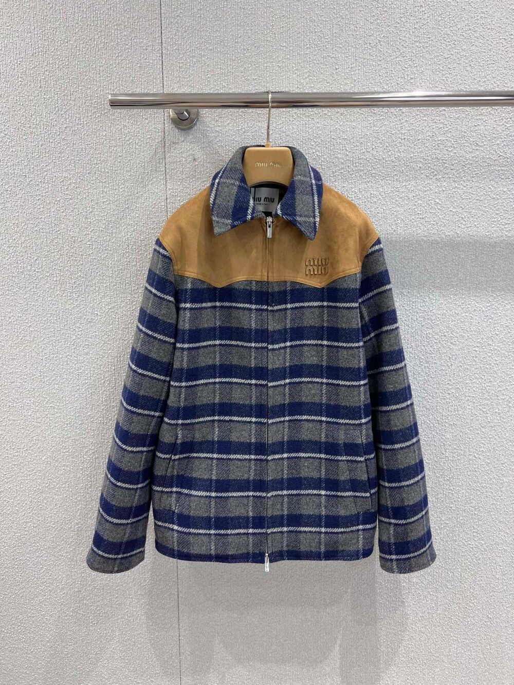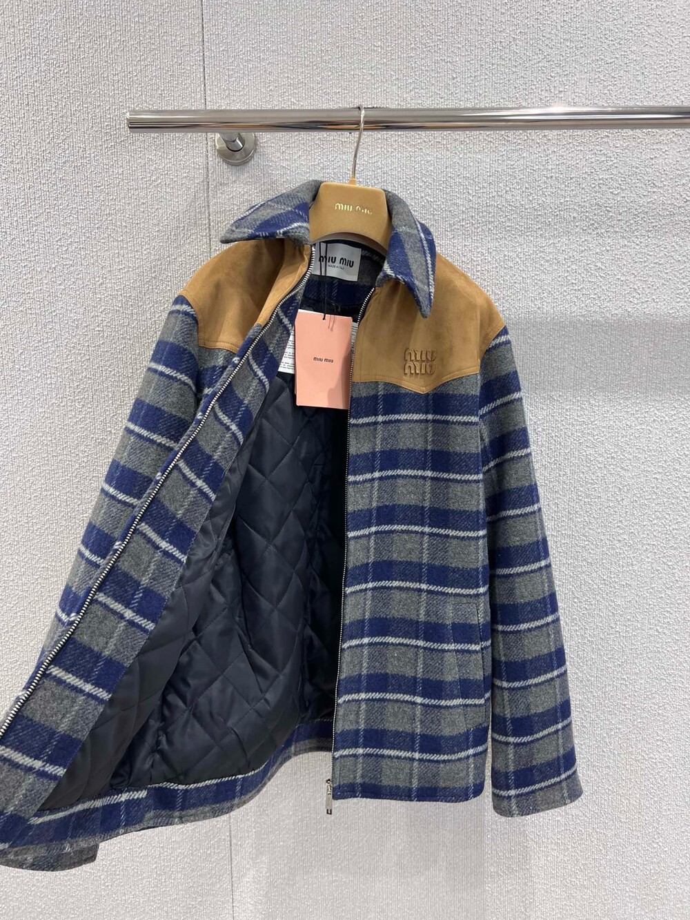 미우미우 체크 블루종 자켓