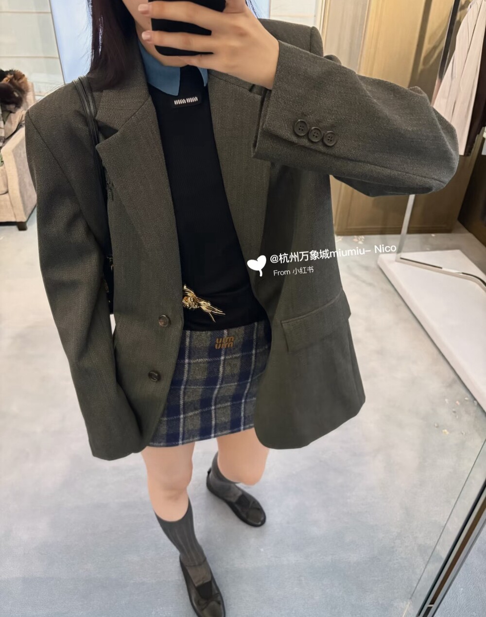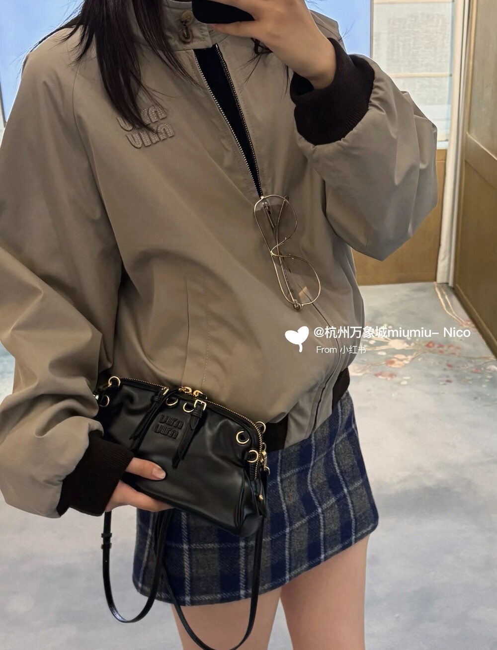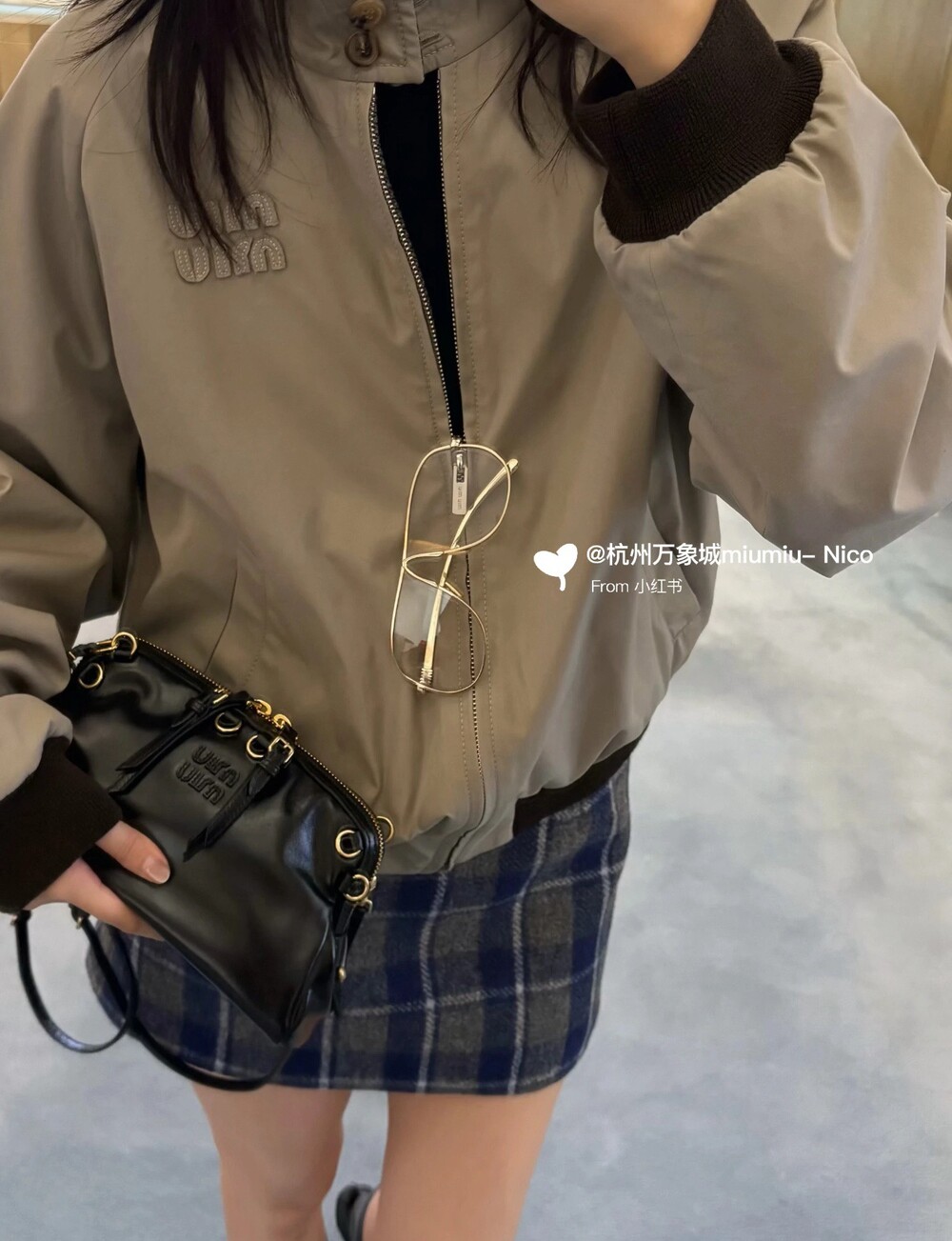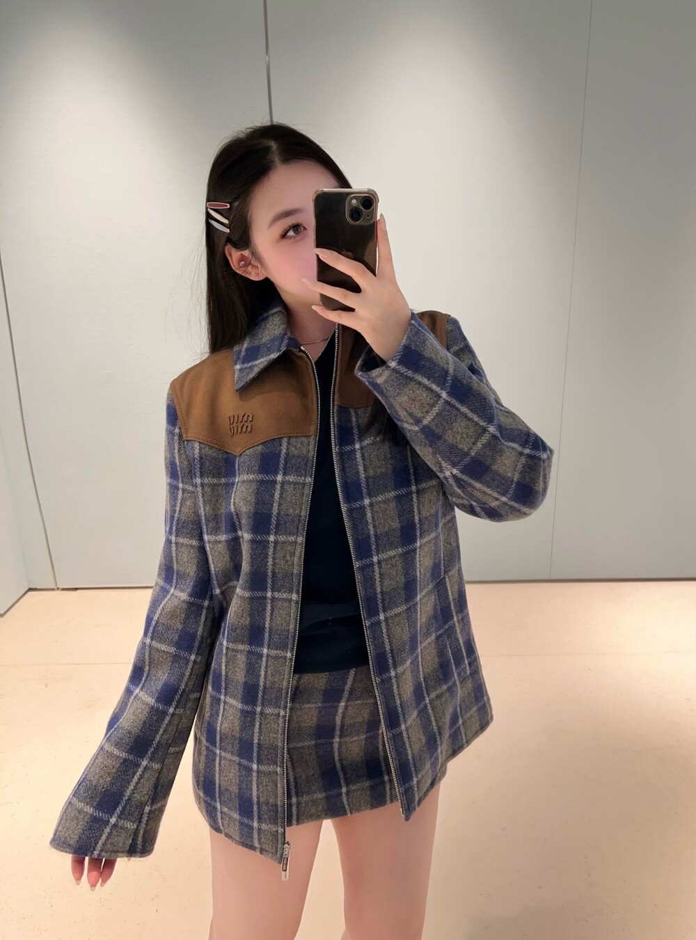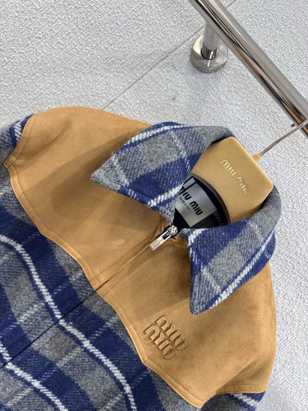 미우미우 체크 블루종 자켓