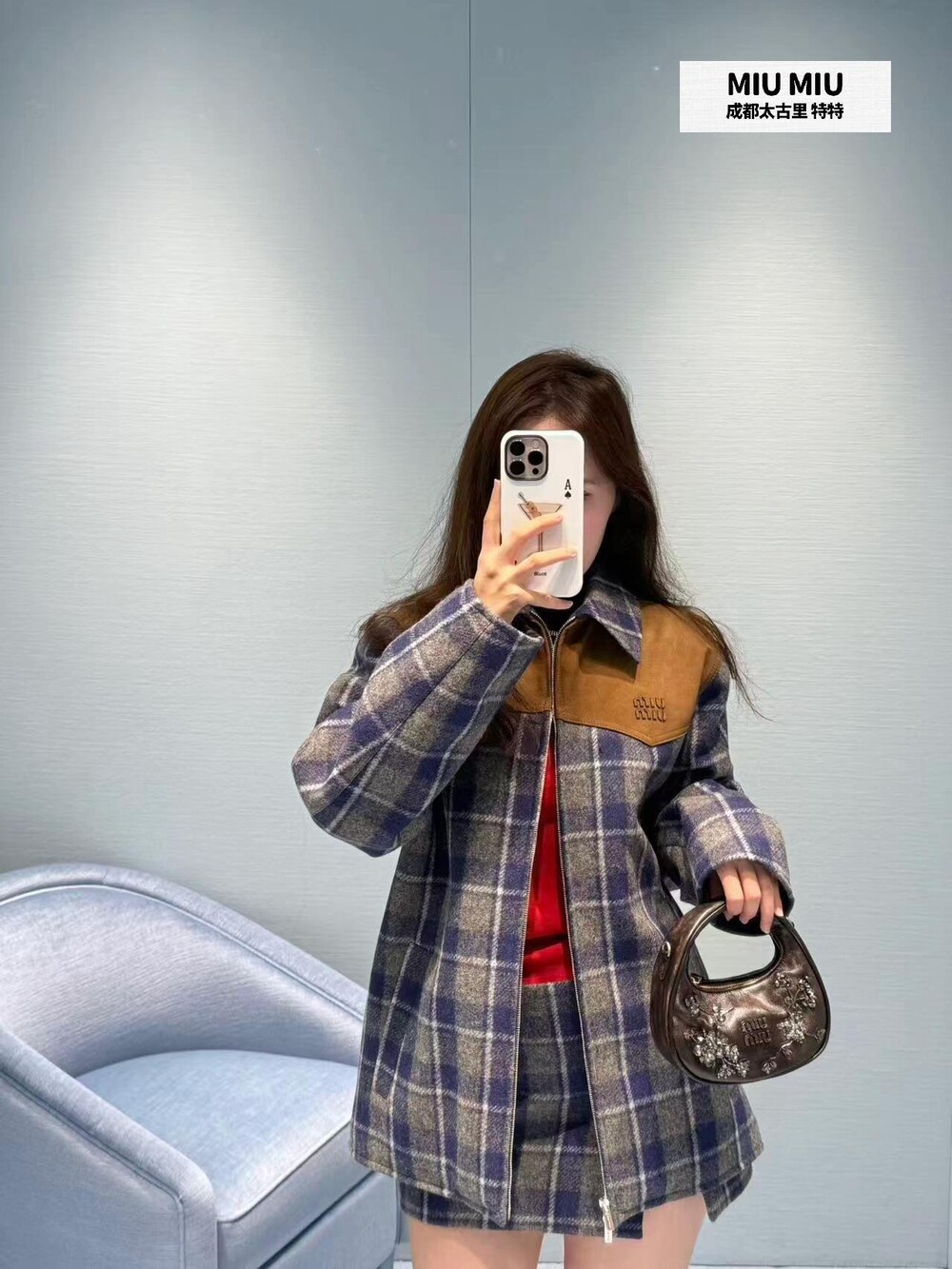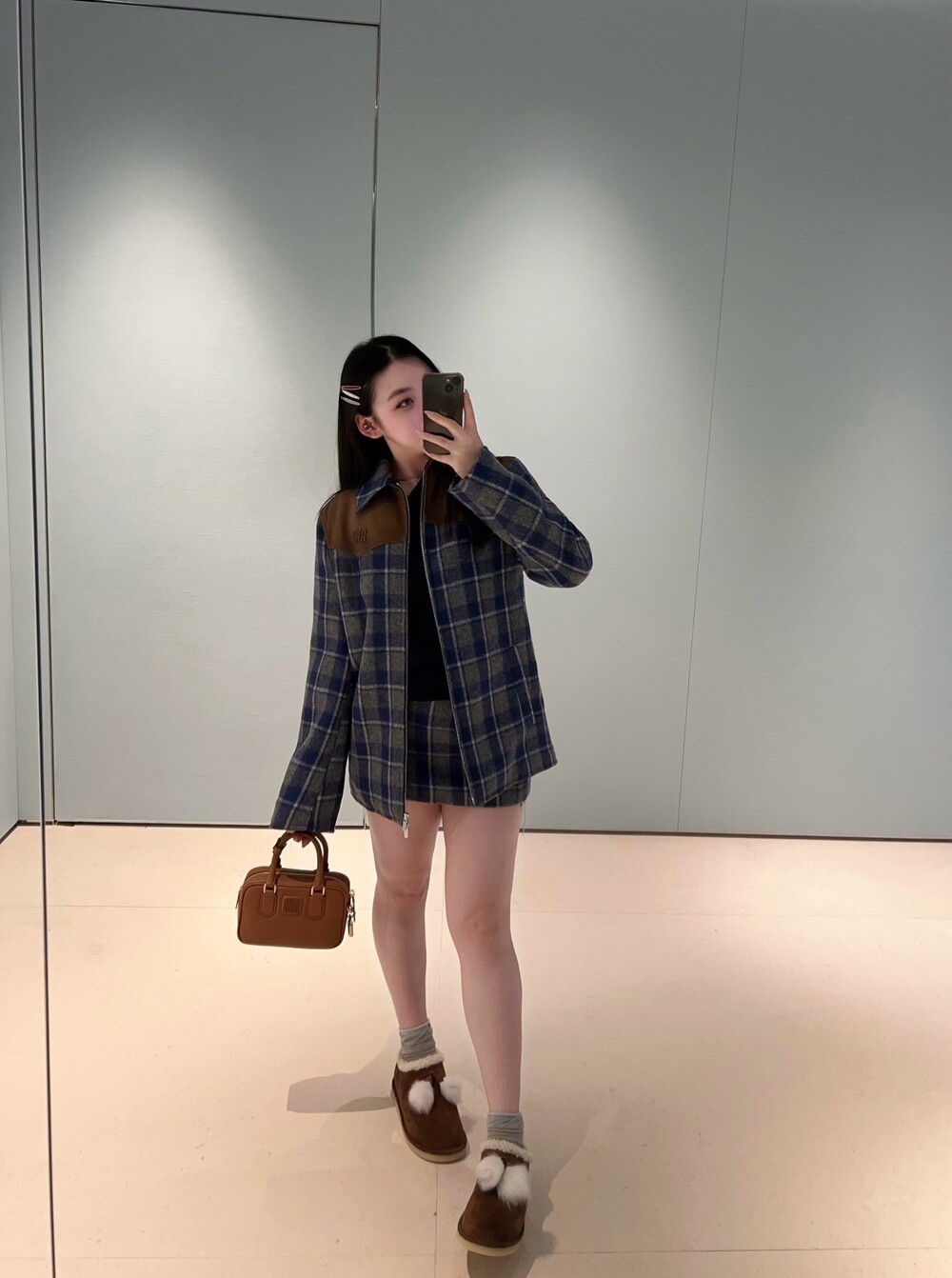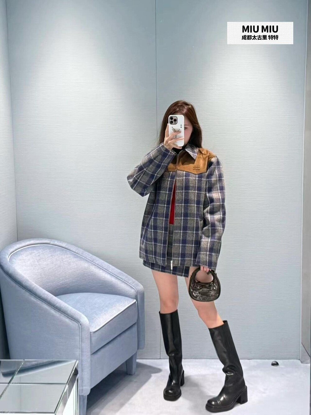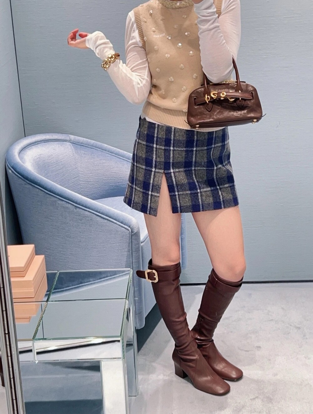 미우미우 체크 패턴 미니스커트