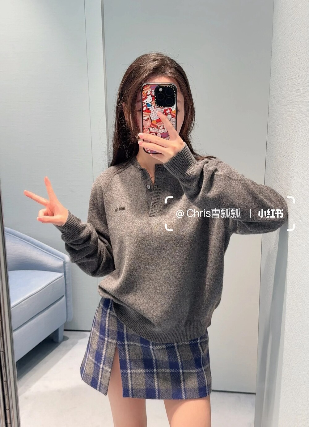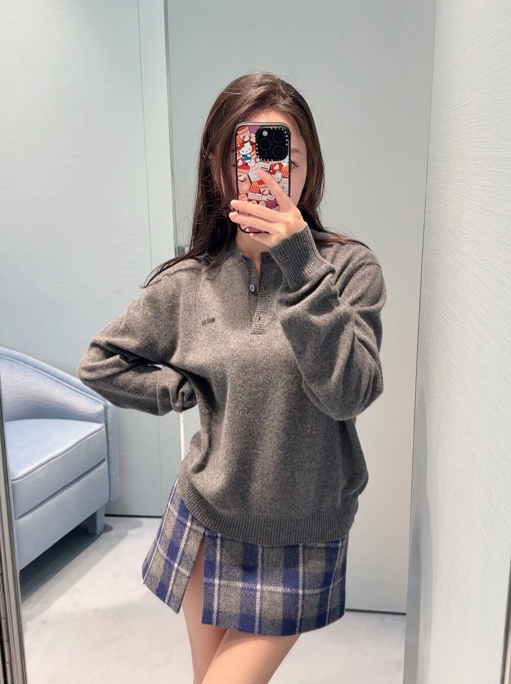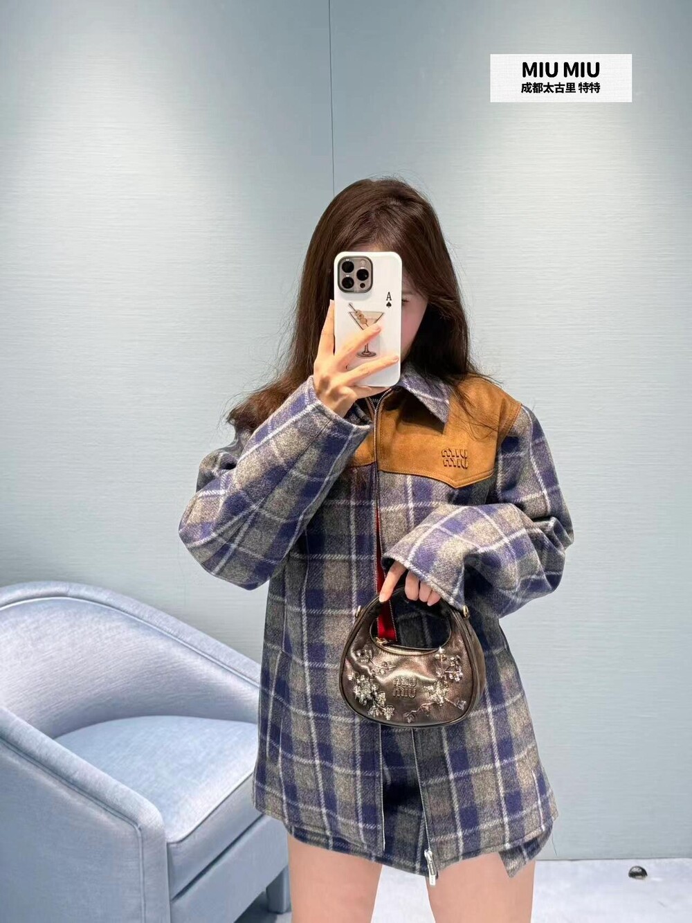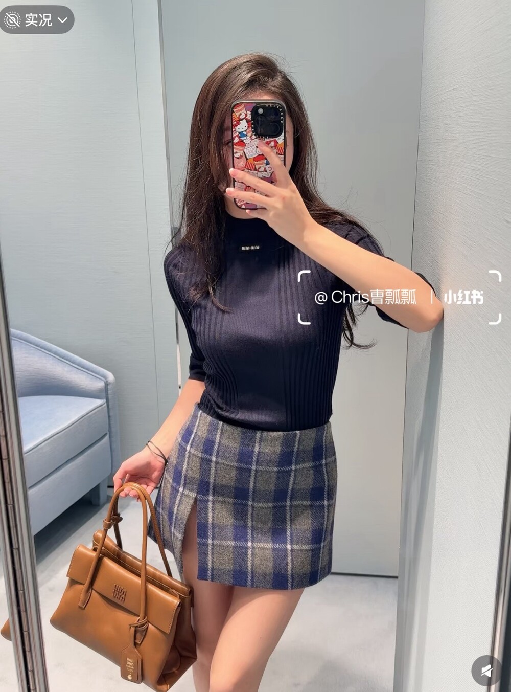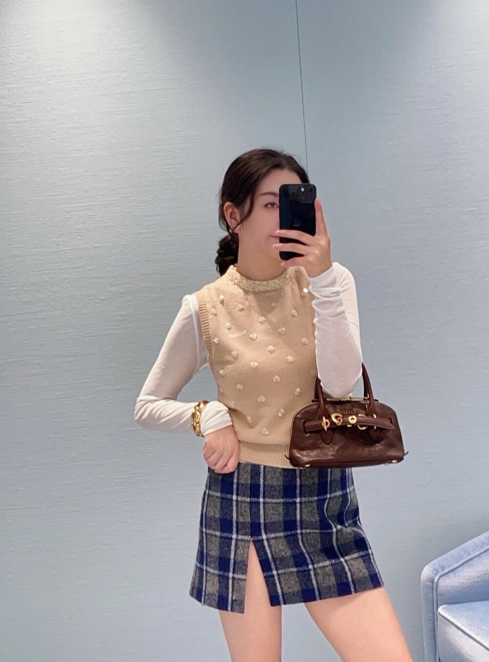 미우미우 체크 패턴 미니스커트