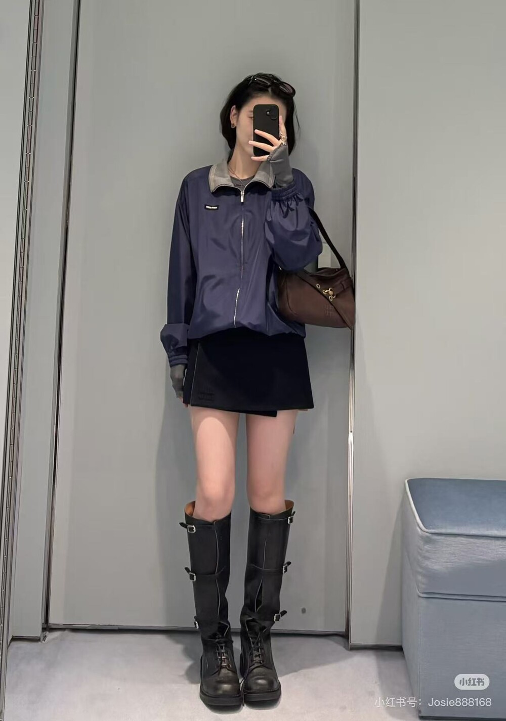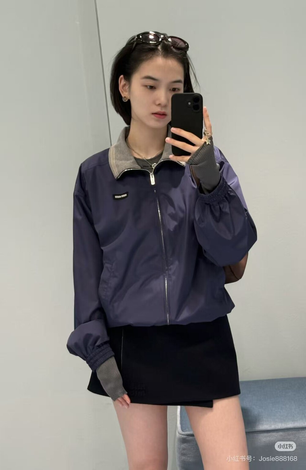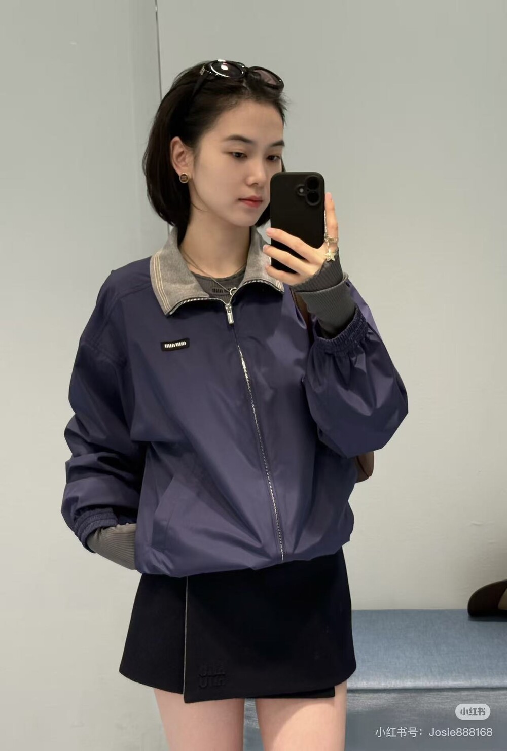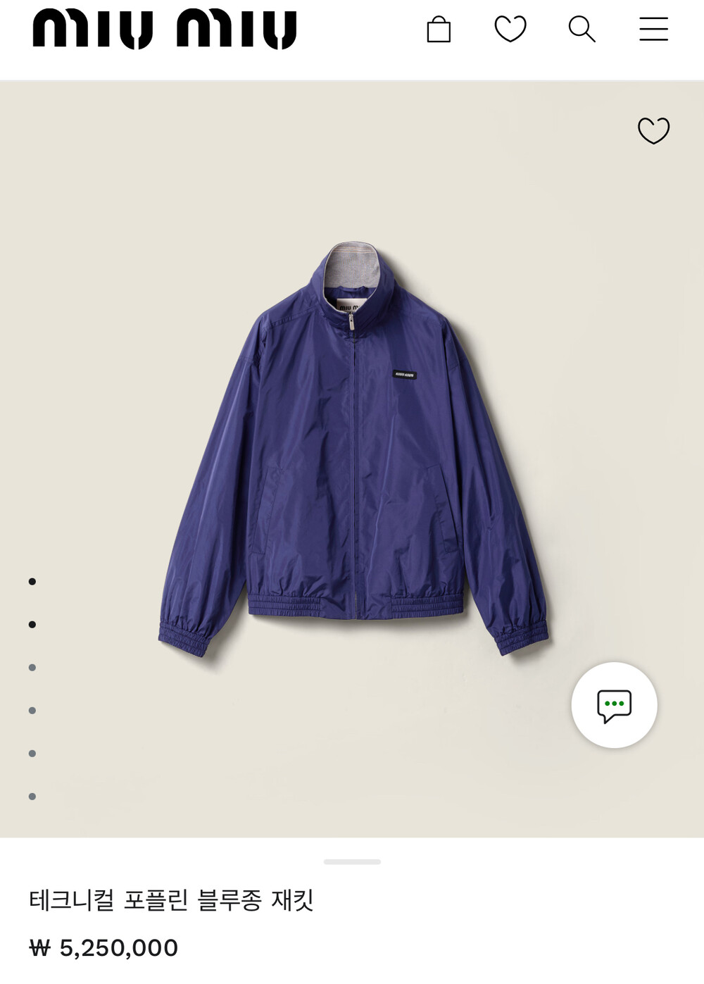 미우미우 테크니컬 포플린 블루종 재킷