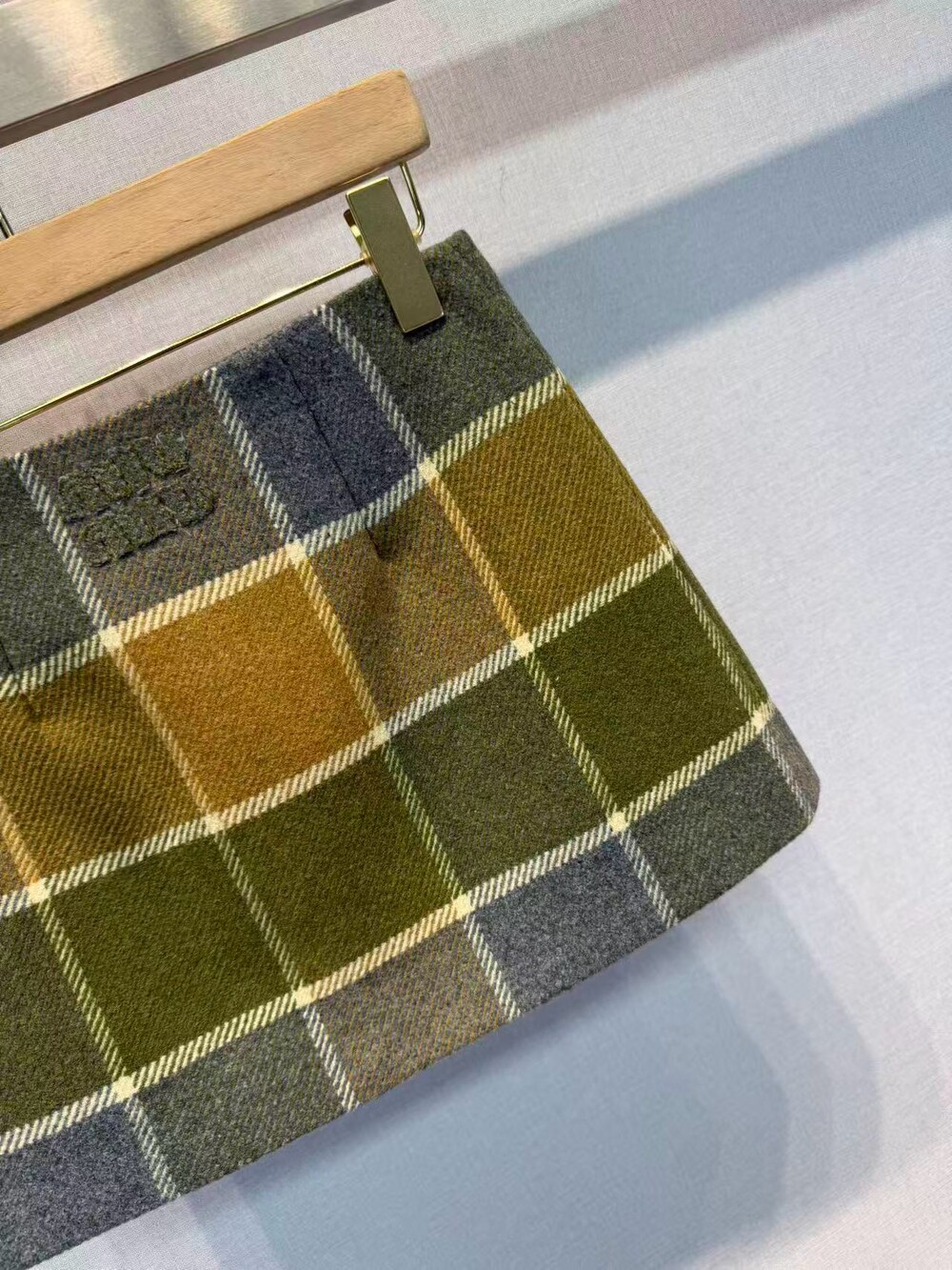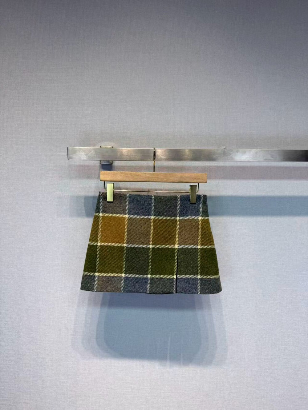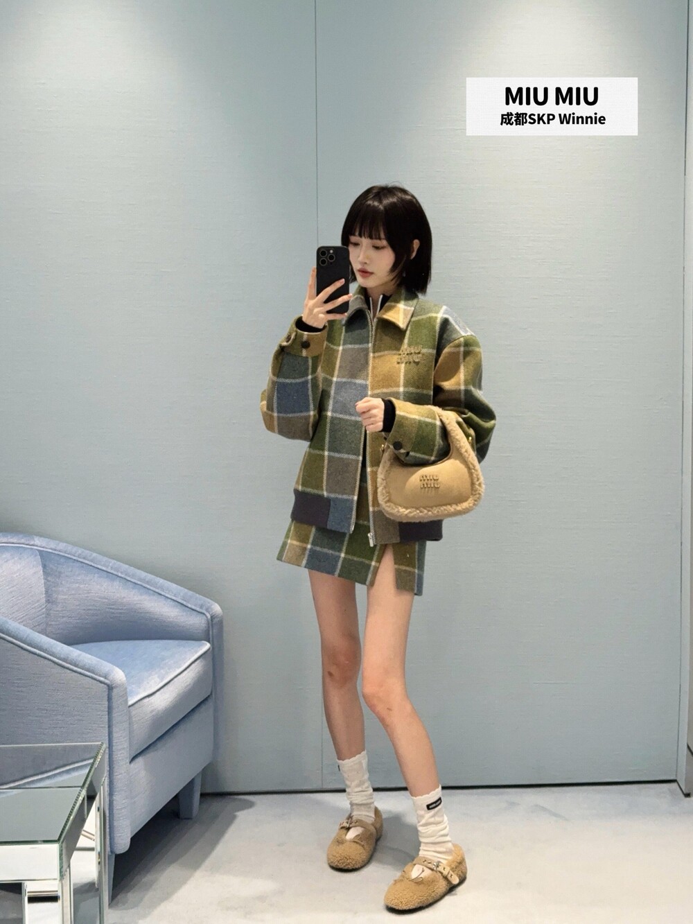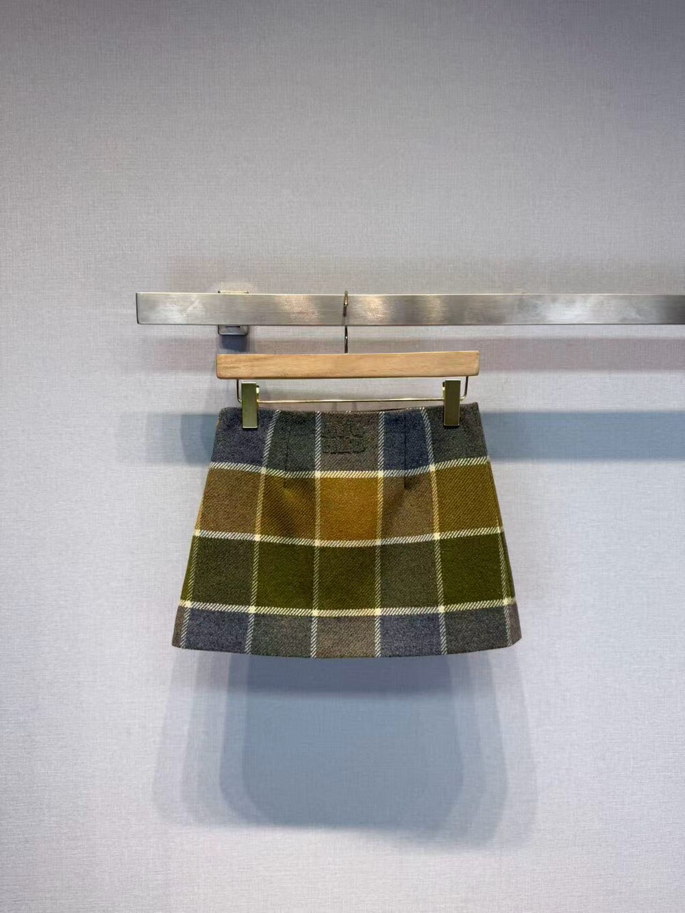 부드러운 톤의 클래식한 체크 패턴이 90년대 무드를 연상시키며, 슬릿 디테일이 더해진 이 울 미니 스커트에 개성을 부여합니다. 여성스럽고 대담한 실루엣이 미우미우 아카이브 아이콘에서 영감을 받아 재해석되었습니다.