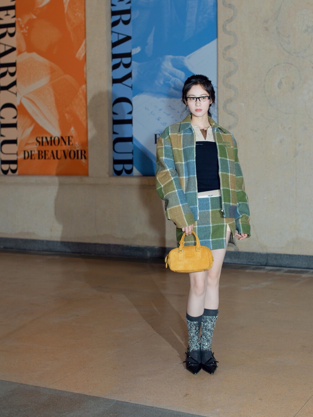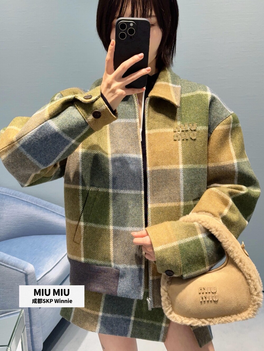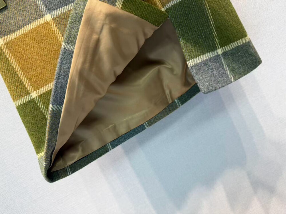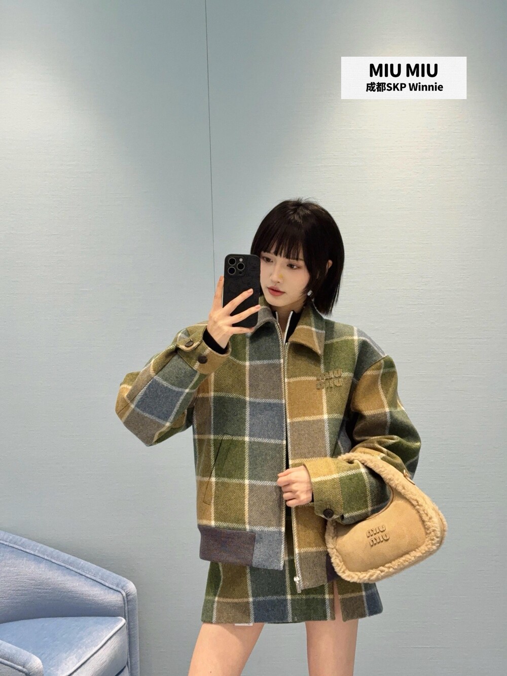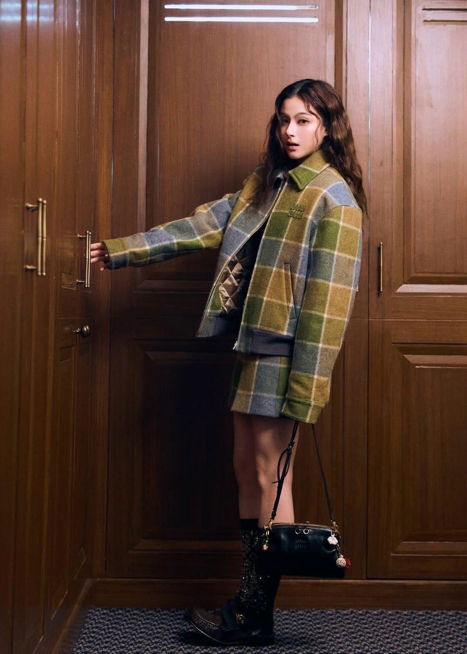 부드러운 톤의 클래식한 체크 패턴이 90년대 무드를 연상시키며, 슬릿 디테일이 더해진 이 울 미니 스커트에 개성을 부여합니다. 여성스럽고 대담한 실루엣이 미우미우 아카이브 아이콘에서 영감을 받아 재해석되었습니다.
