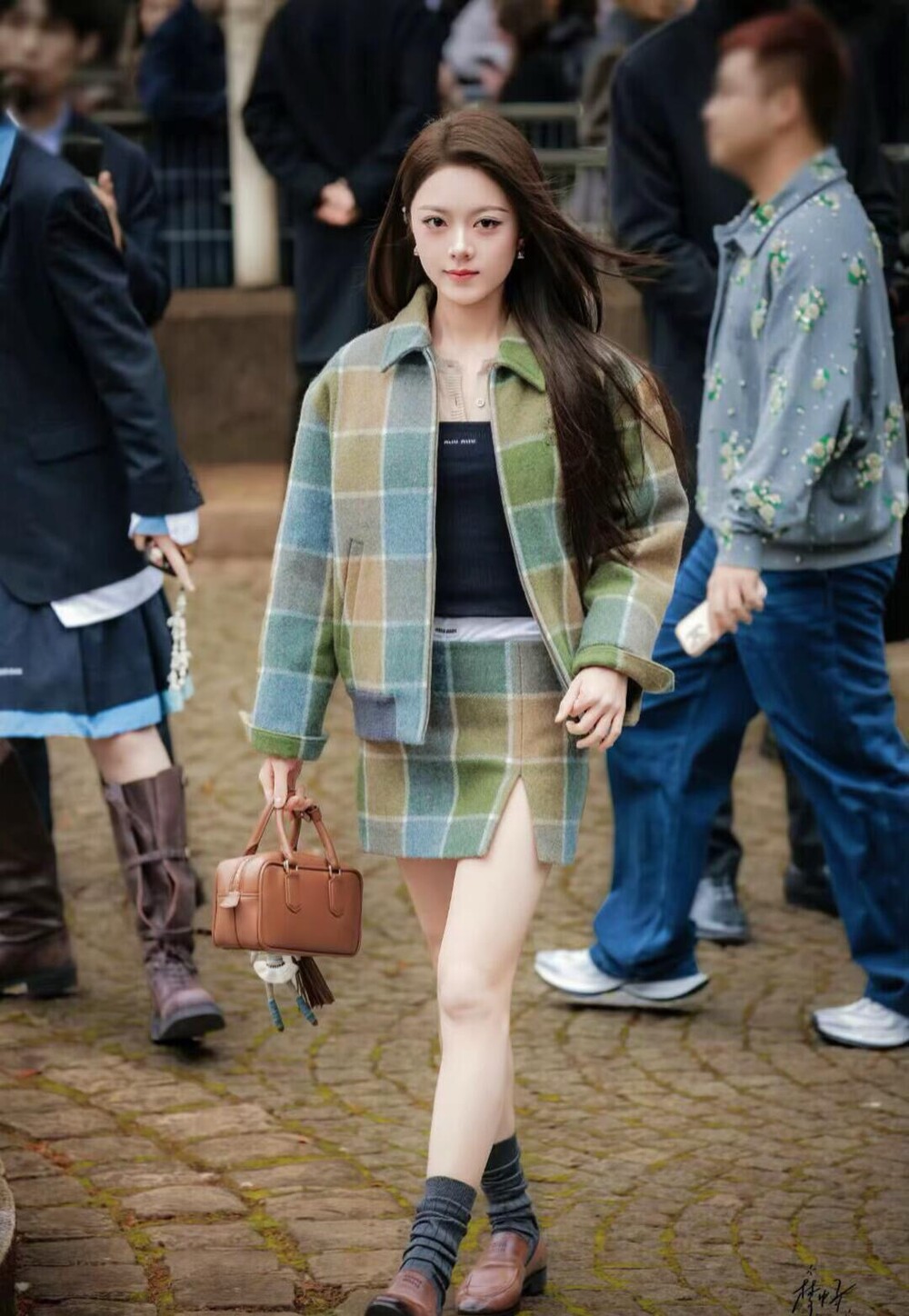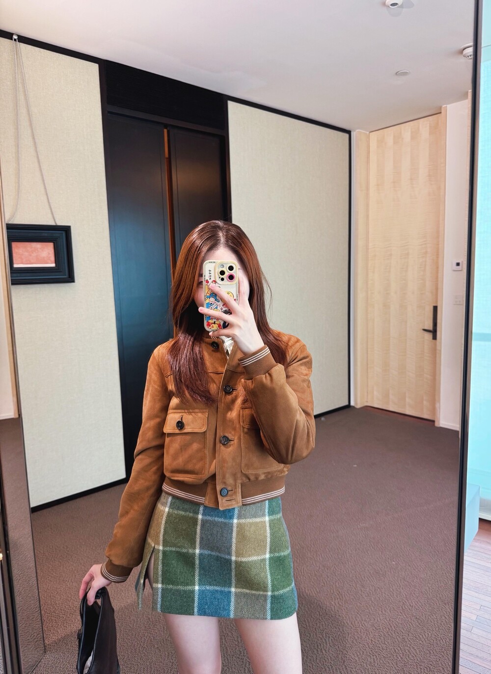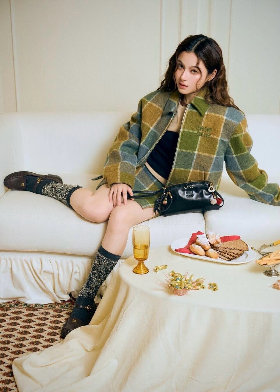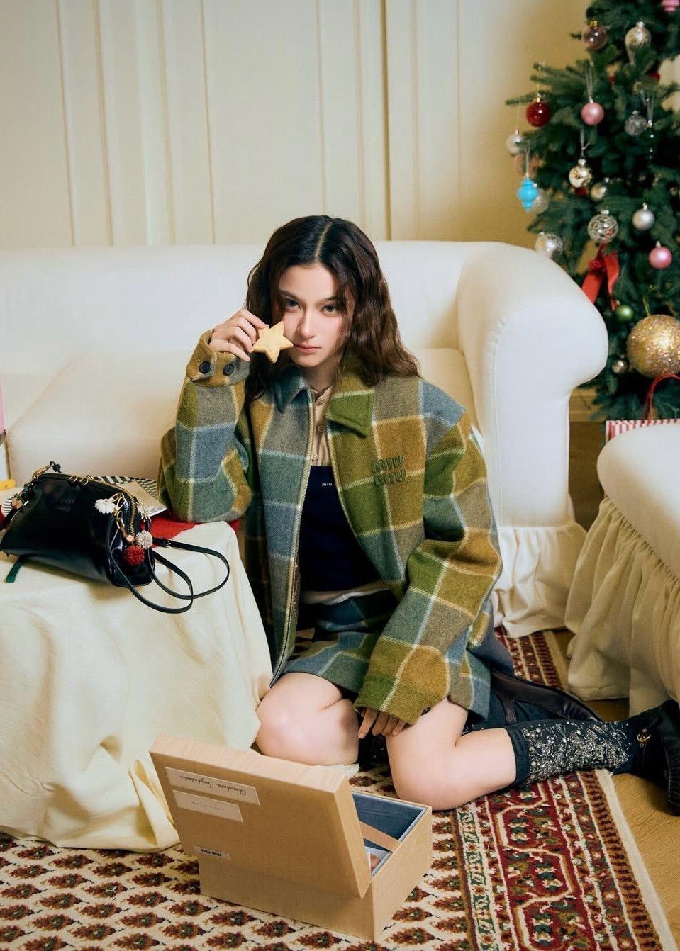 부드러운 톤의 클래식한 체크 패턴이 90년대 무드를 연상시키며, 슬릿 디테일이 더해진 이 울 미니 스커트에 개성을 부여합니다. 여성스럽고 대담한 실루엣이 미우미우 아카이브 아이콘에서 영감을 받아 재해석되었습니다.