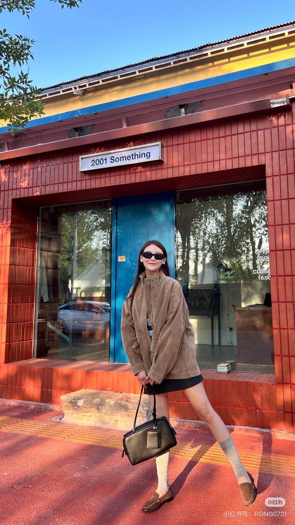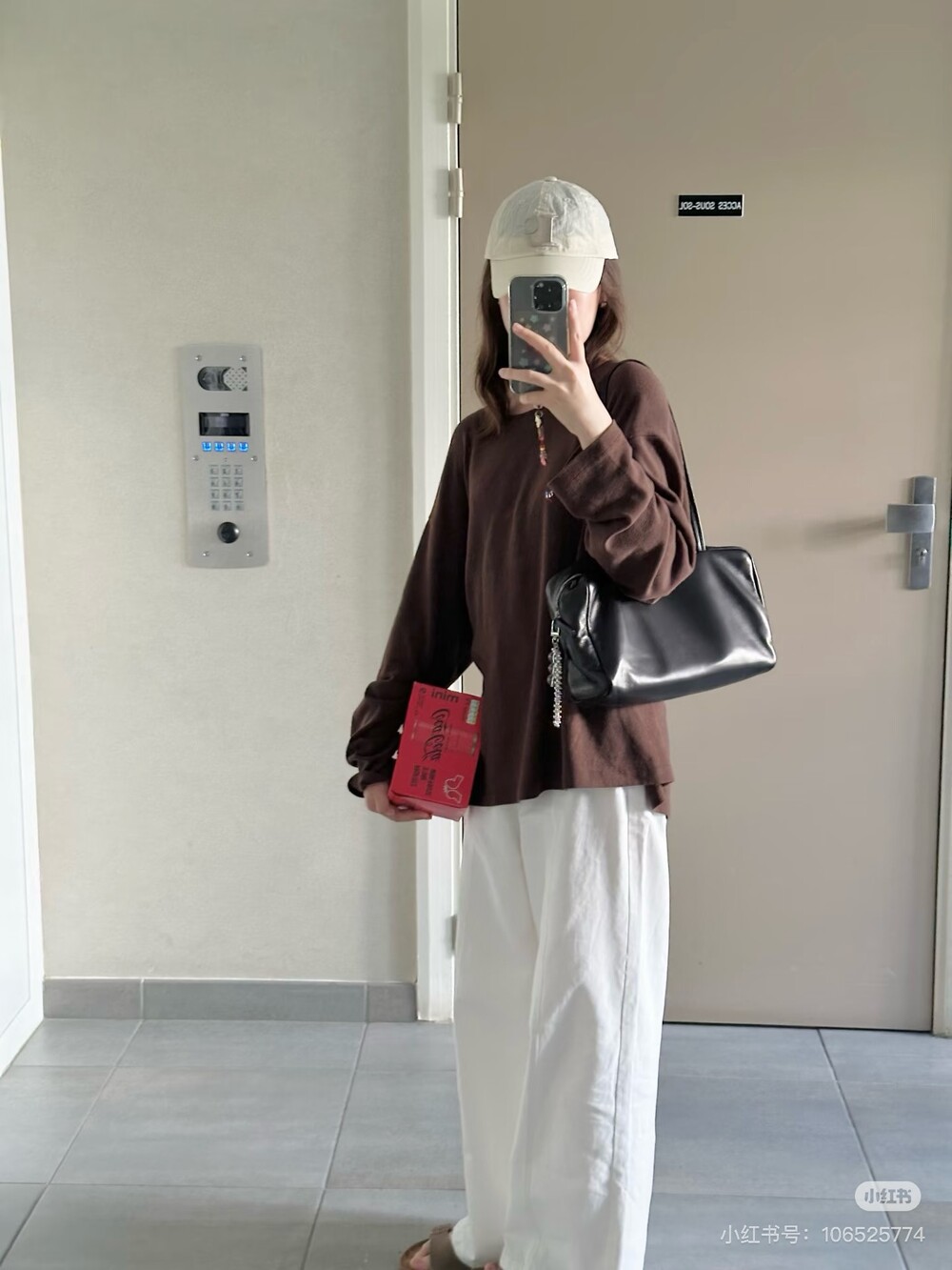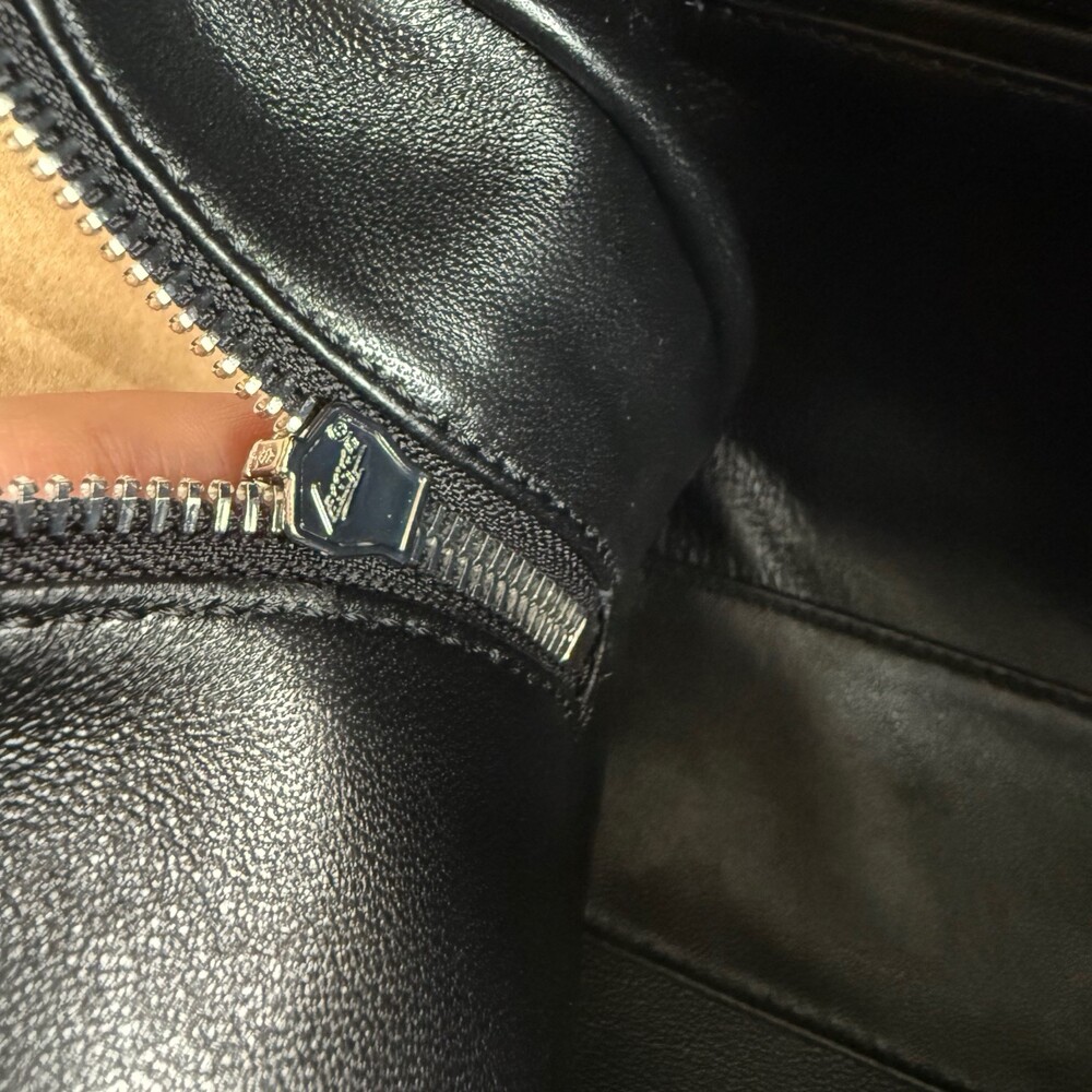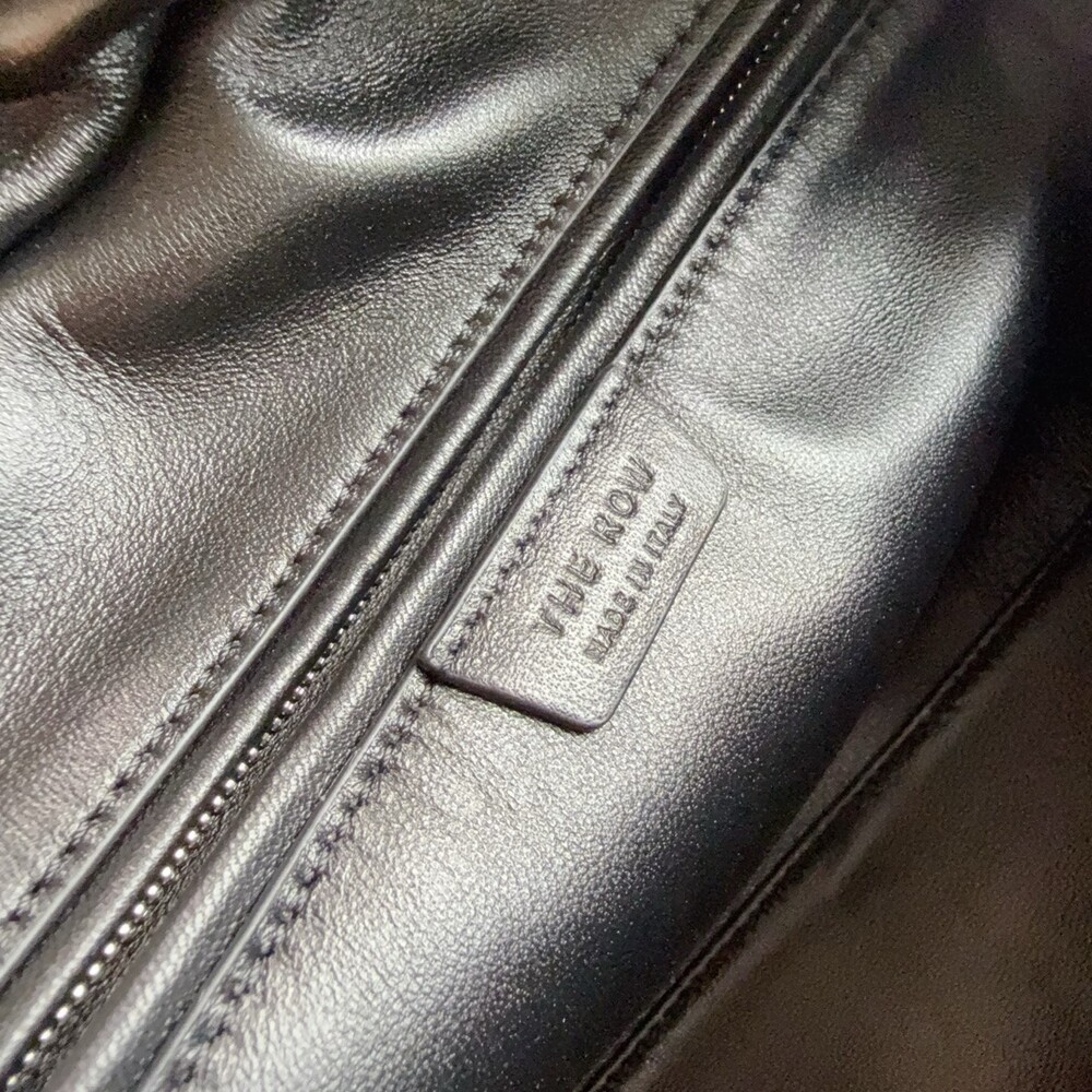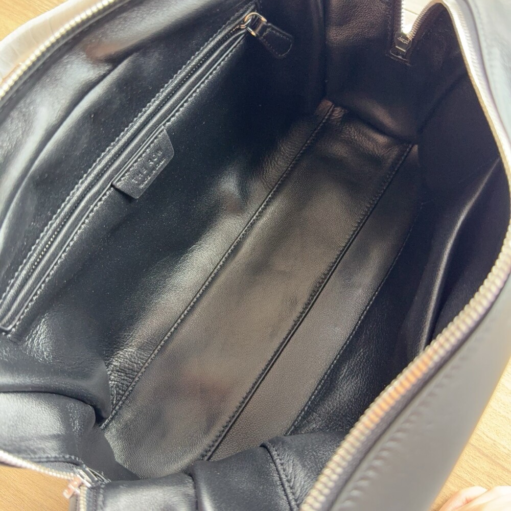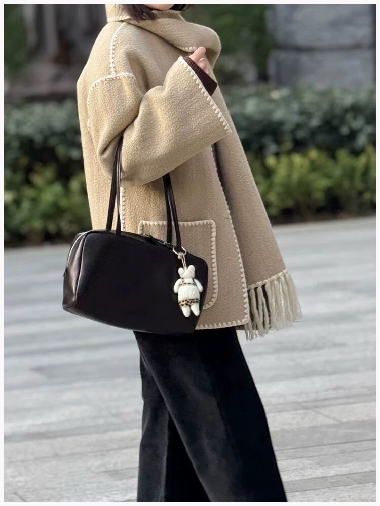 매끄러운 나파 가죽 소재의 소프트 볼링 백. 터닝 엣지 마감한 디자인, 긴 플랫 핸들, 듀얼 지퍼 클로저.