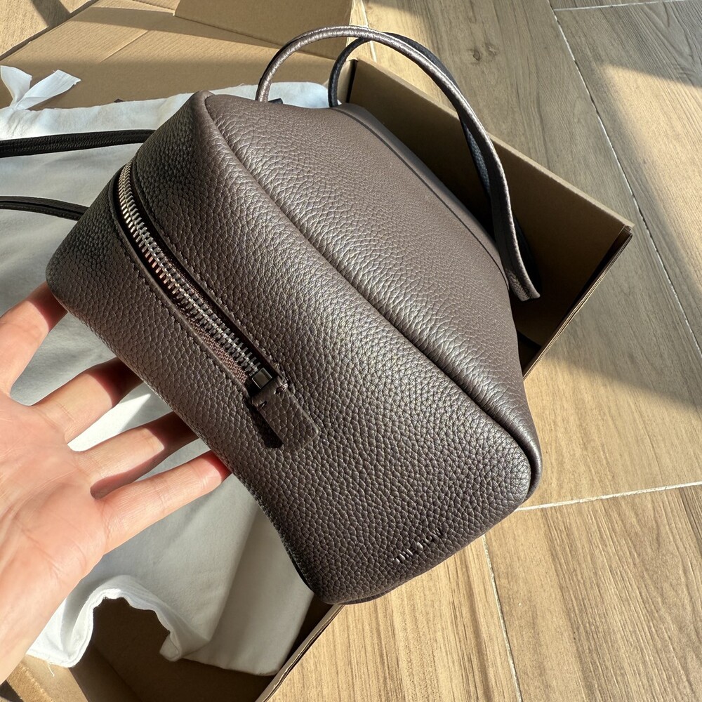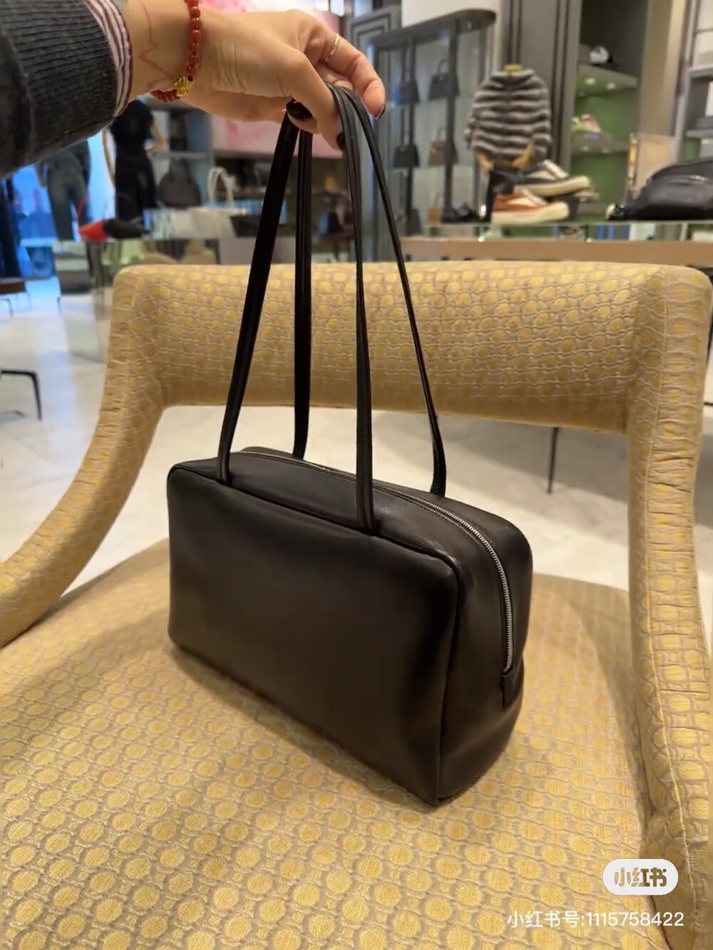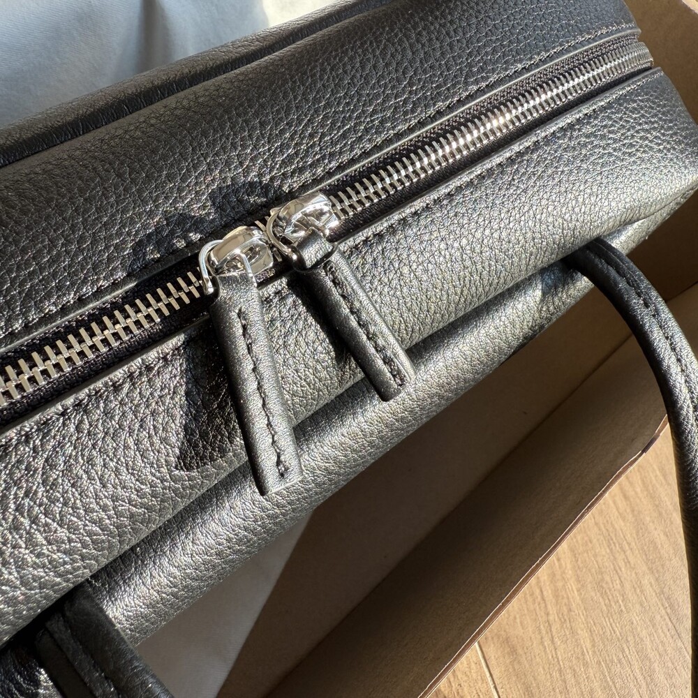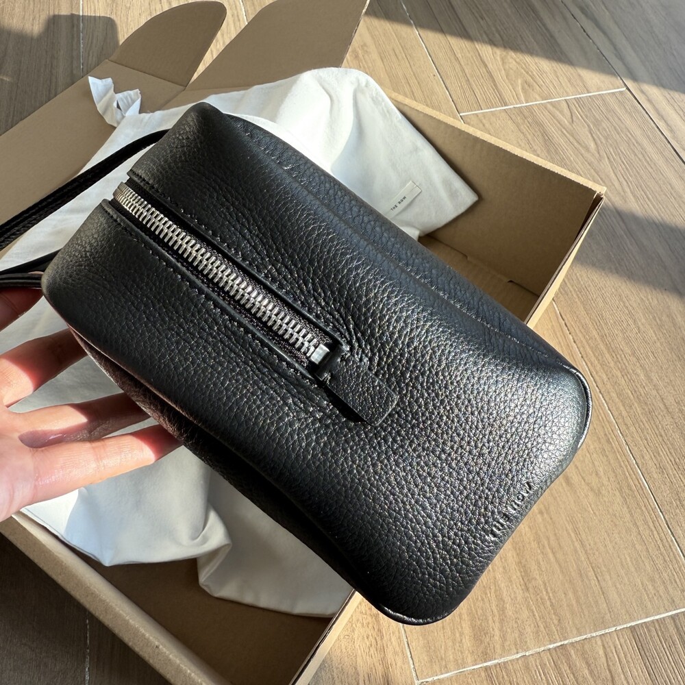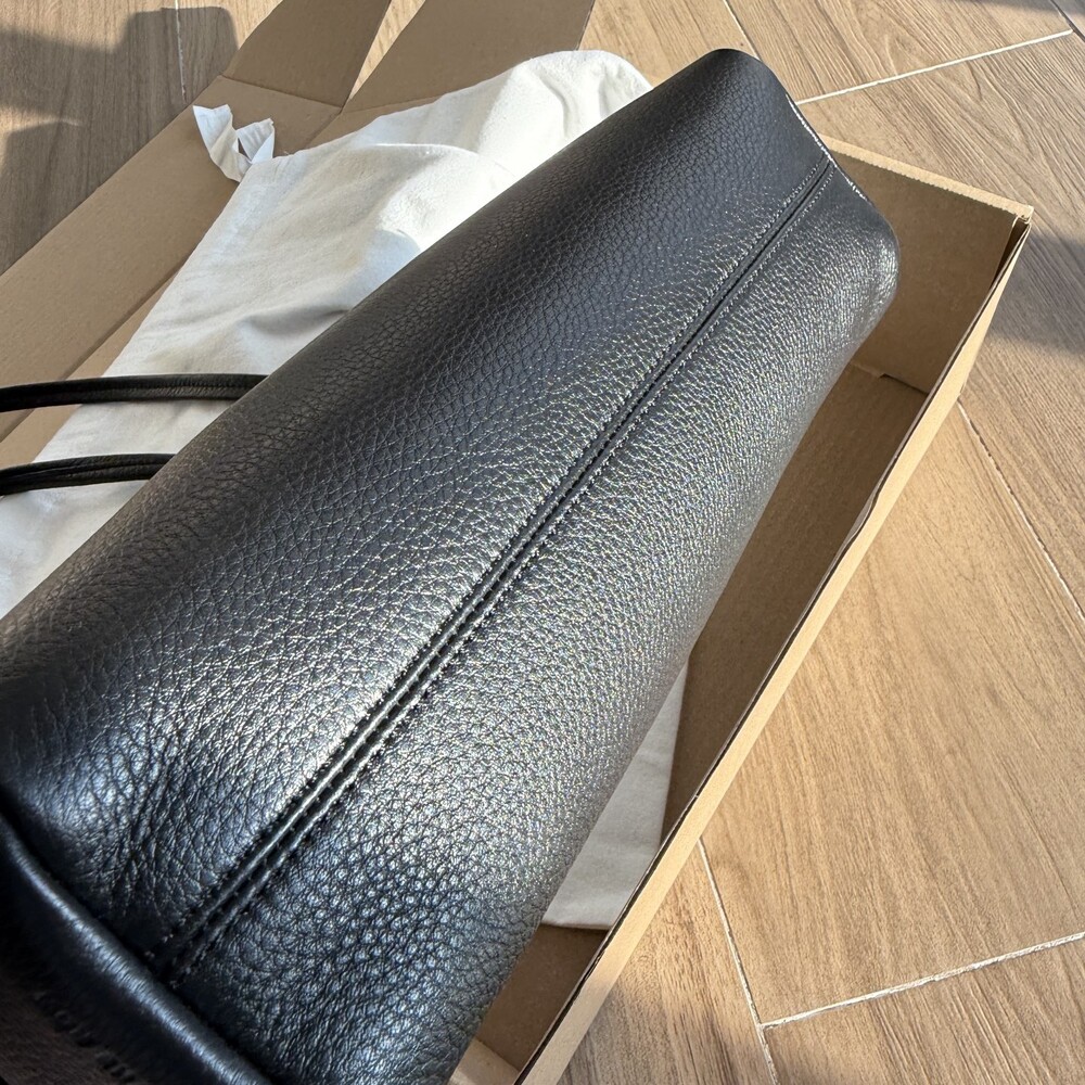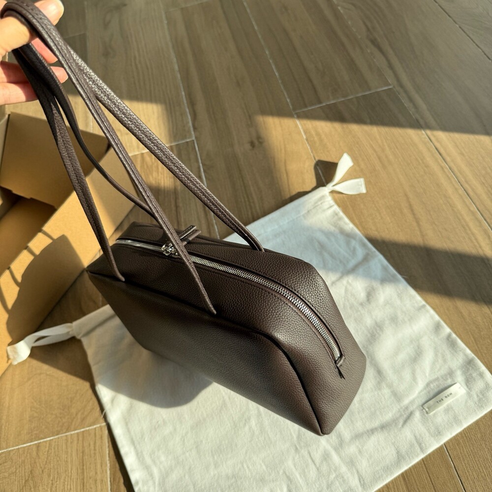 둥근 가장자리 구조, 긴 플랫 핸들과 듀얼 지퍼 클로저가 특징인 질감 마감 송아지 가죽 소재의 소프트 볼링 백. 부드러운 감촉과 세련된 질감을 부여하여 시간이 지날수록 개성이 더해집니다.