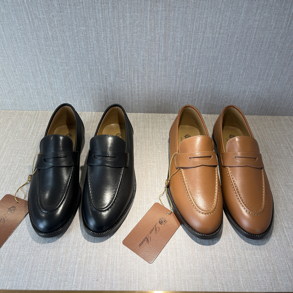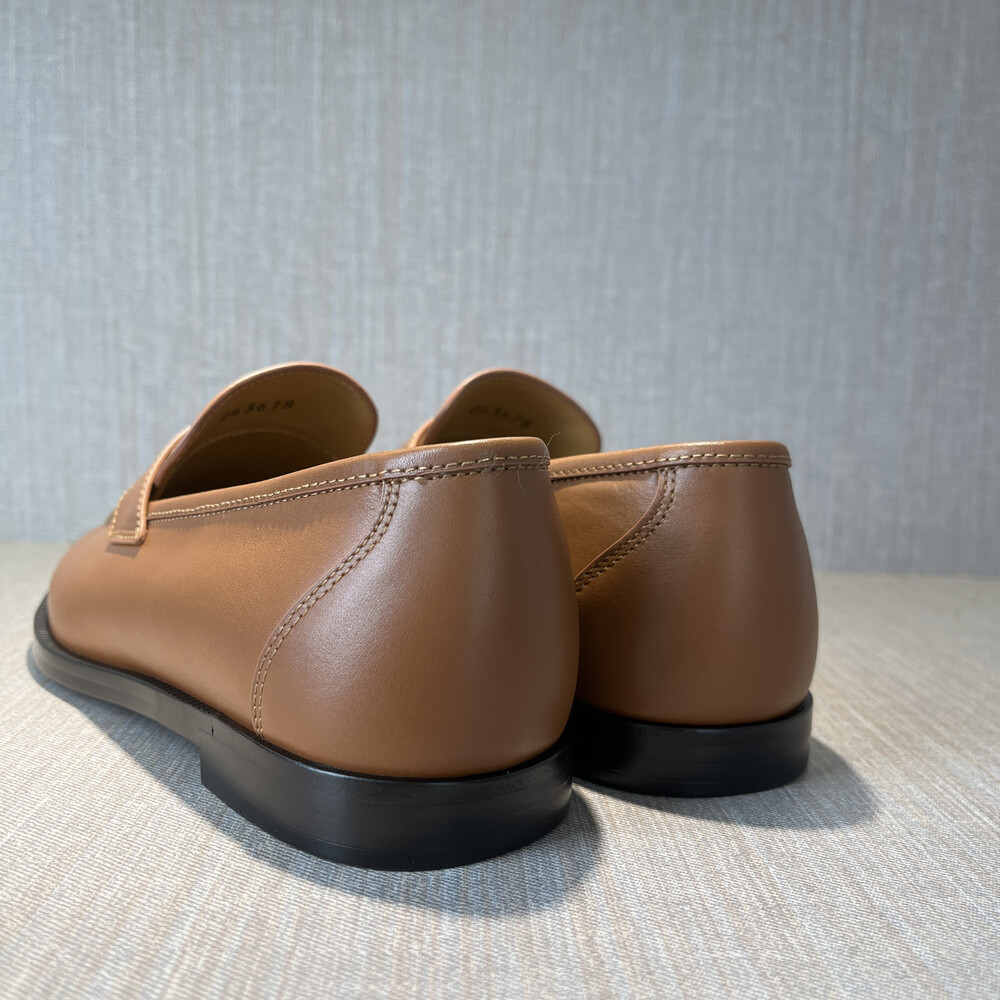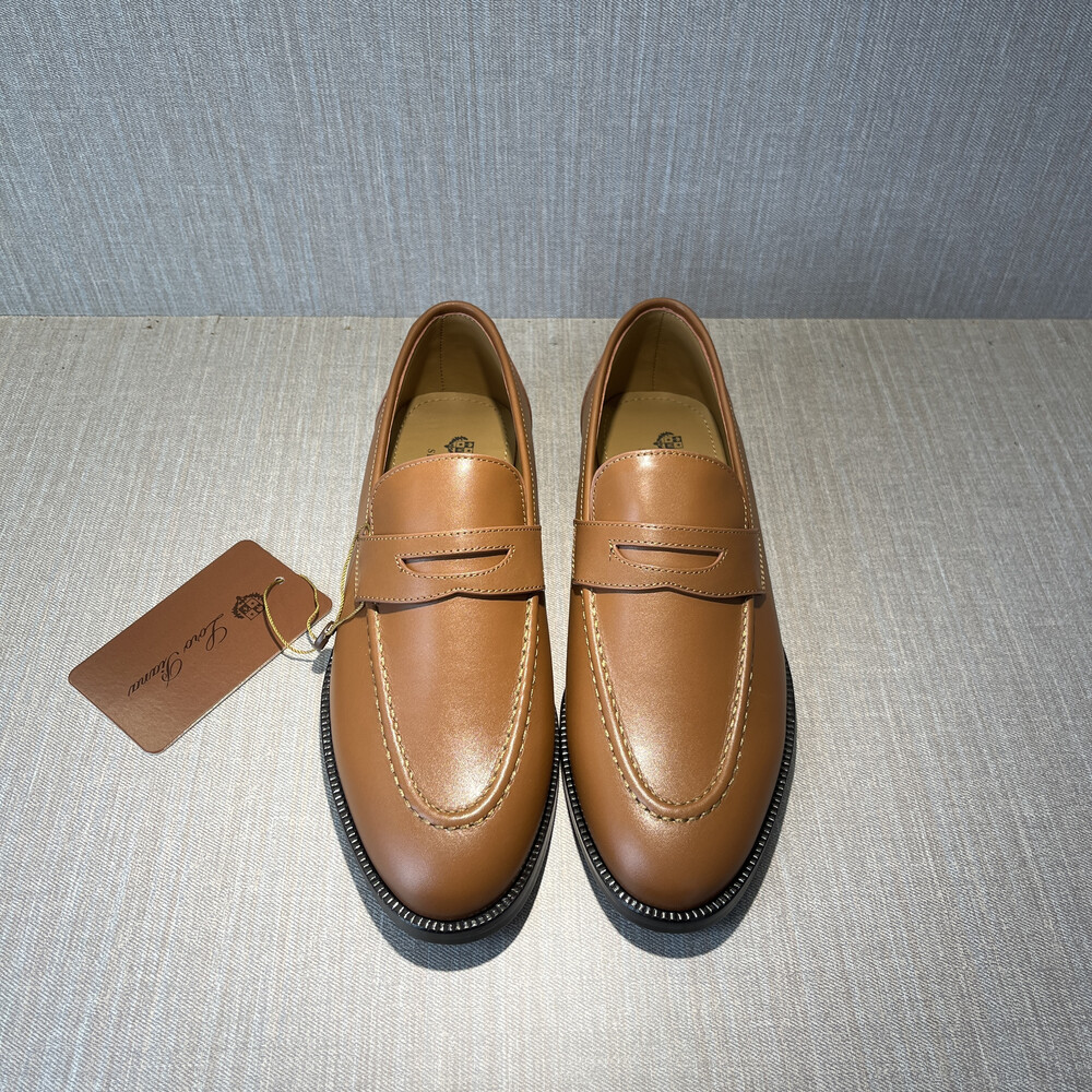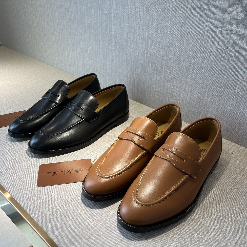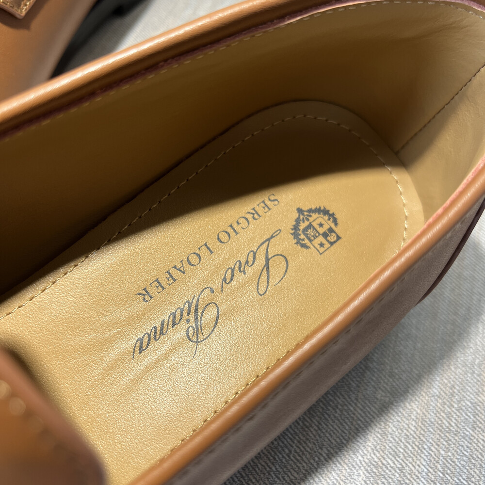 버터처럼 부드러운 가죽 소재의 구조에 조각된 양각 솔기 디테일의 더블 스티치 뱀프를 더해 캐주얼하면서도 럭셔리한 디자인을 구현하여 세르지오 로로피아나가 개인적으로 추구한 1970년대의 취향을 연상시키는 클래식한 모카신. 우아한 실루엣이 캐주얼하고 여유로운 미학과 어우러져 데일리 룩에 매치하기 좋은 아이템. 테일러드 트라우저 또는 데님과 조화를 이루는 디자인.