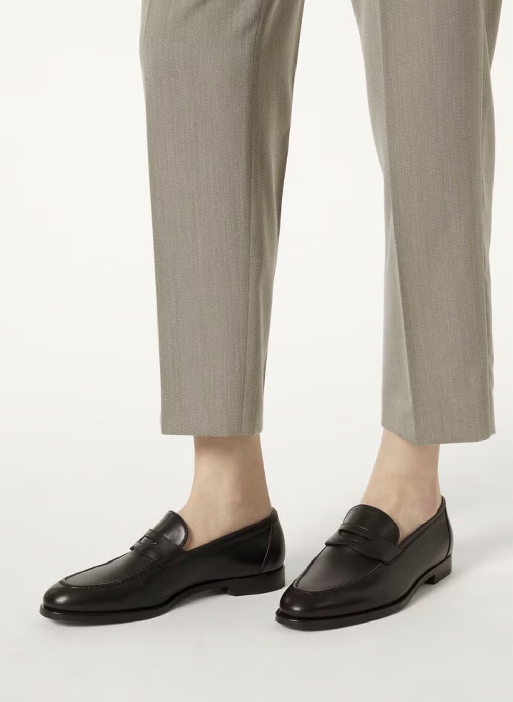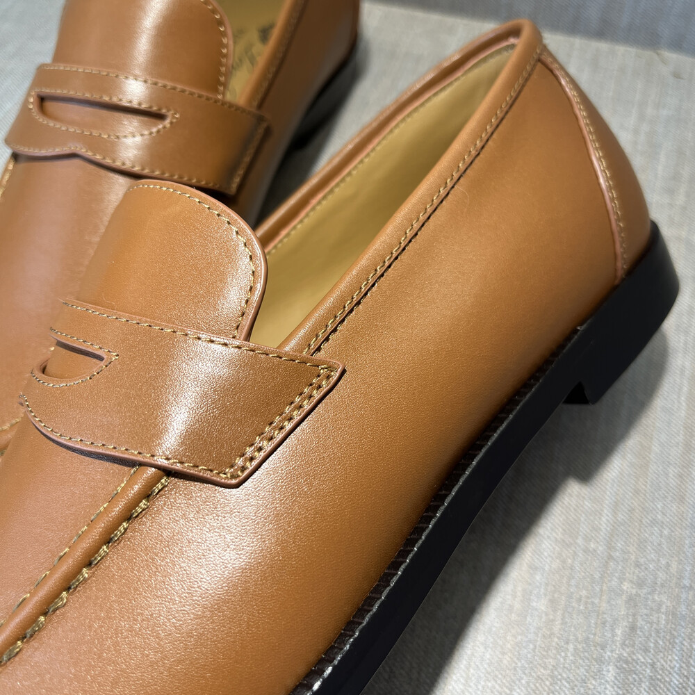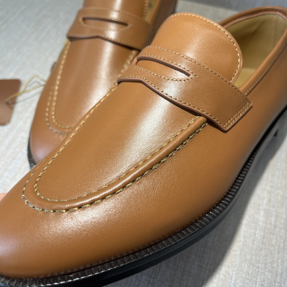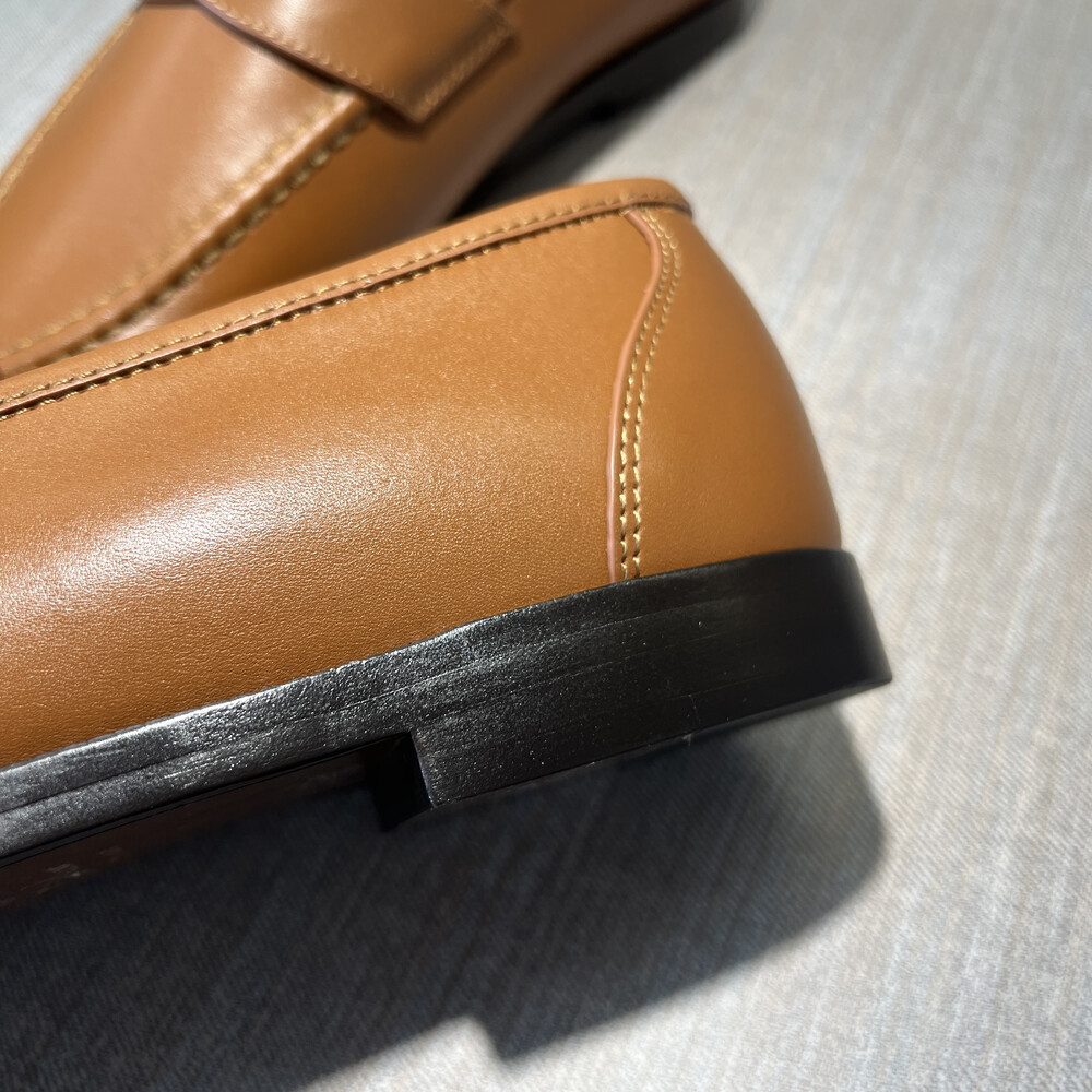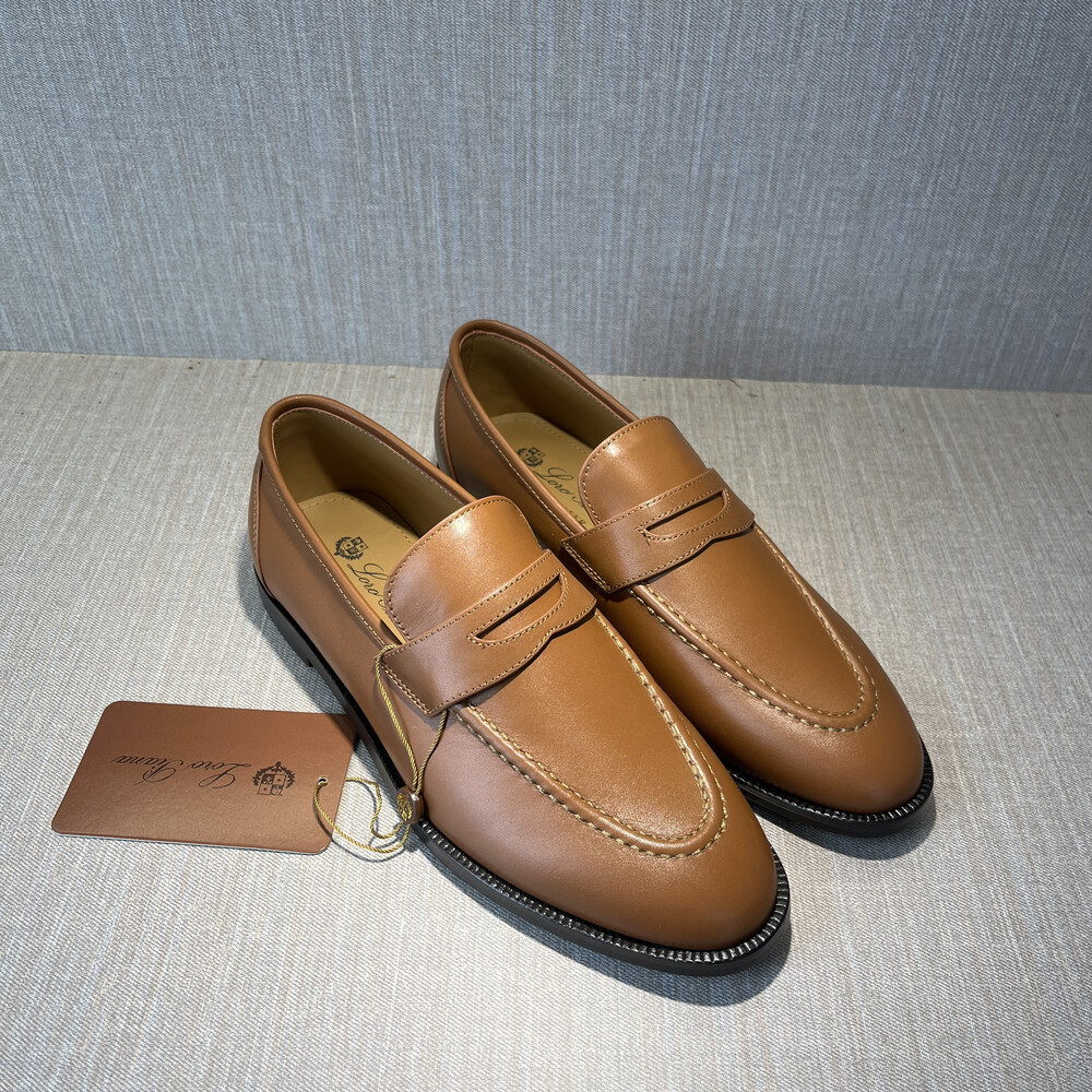 버터처럼 부드러운 가죽 소재의 구조에 조각된 양각 솔기 디테일의 더블 스티치 뱀프를 더해 캐주얼하면서도 럭셔리한 디자인을 구현하여 세르지오 로로피아나가 개인적으로 추구한 1970년대의 취향을 연상시키는 클래식한 모카신. 우아한 실루엣이 캐주얼하고 여유로운 미학과 어우러져 데일리 룩에 매치하기 좋은 아이템. 테일러드 트라우저 또는 데님과 조화를 이루는 디자인.