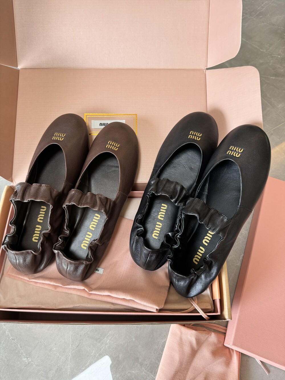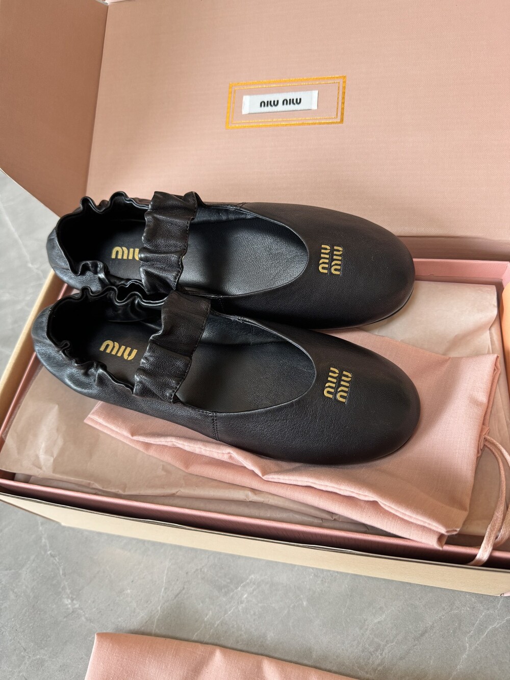 미우미우 루슈 나파 가죽 발레리나