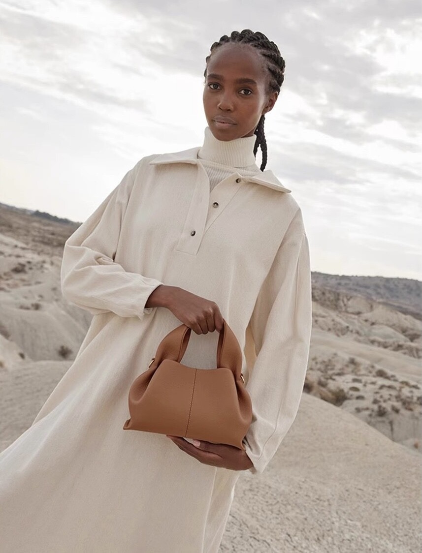 우아한 곡선과 부드러운 가죽의 조합을 자랑하는 누메로 네프 백입니다.