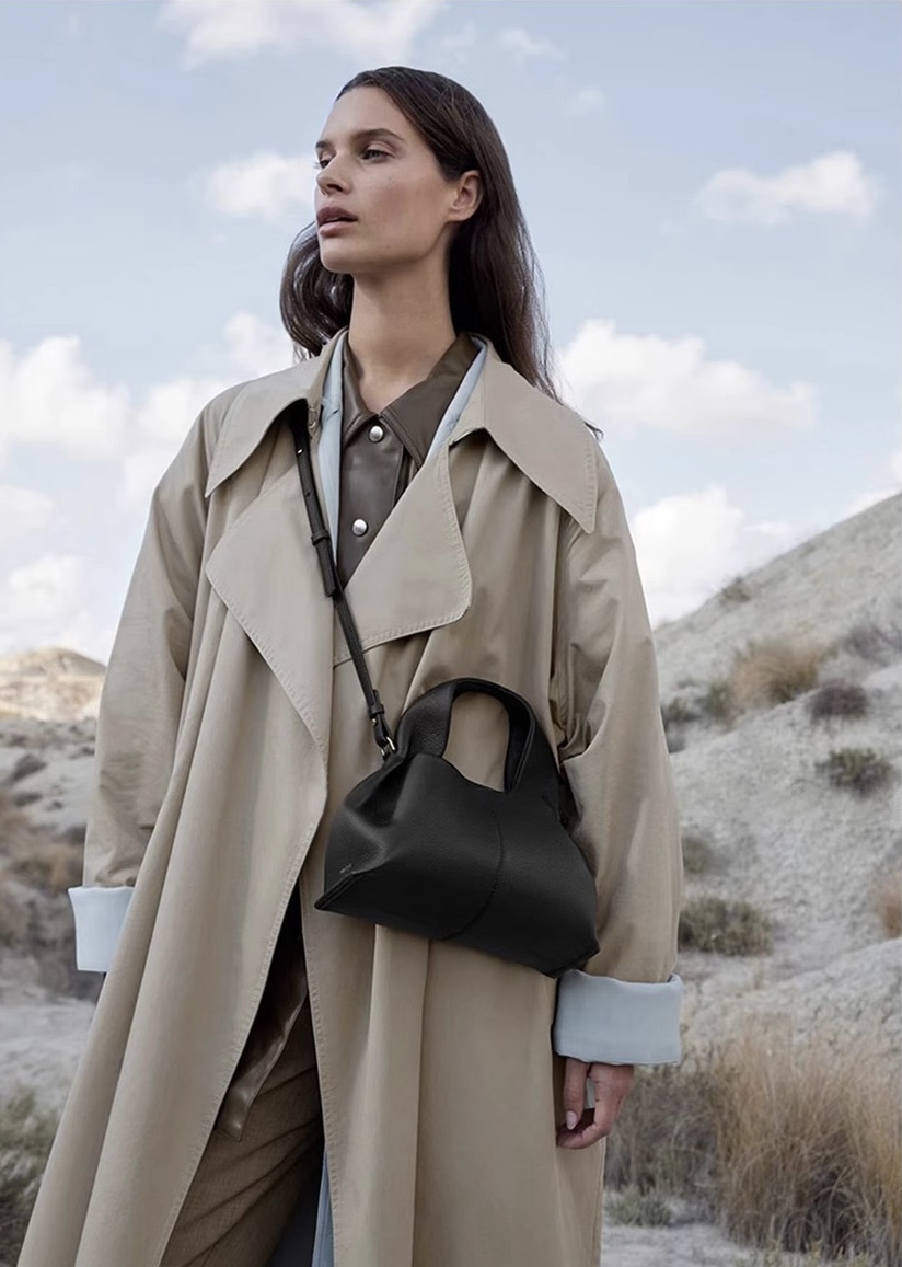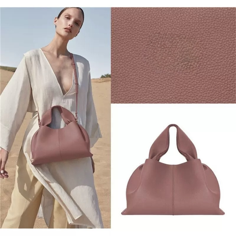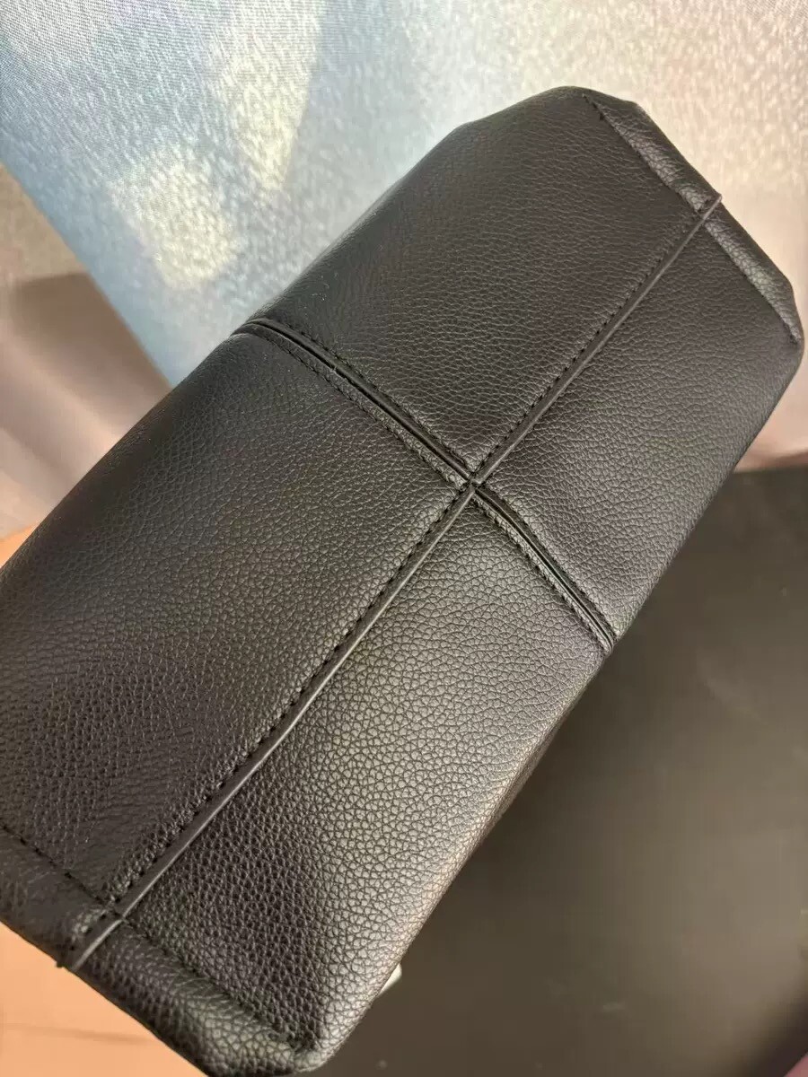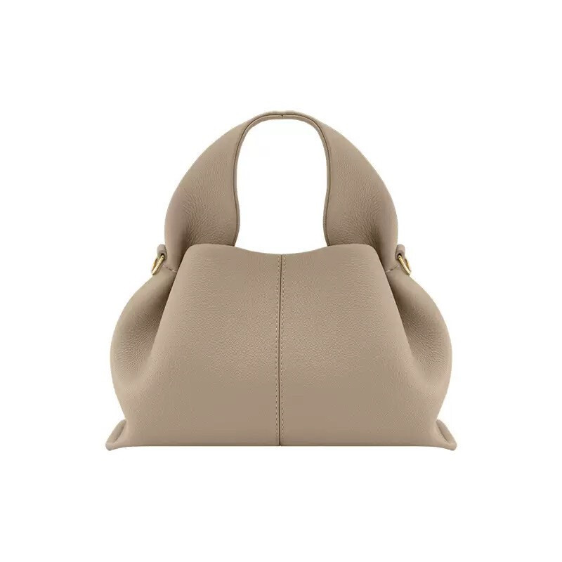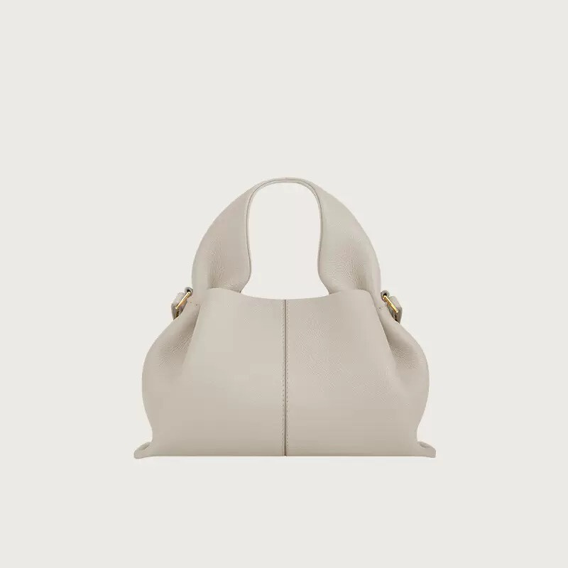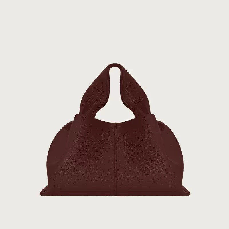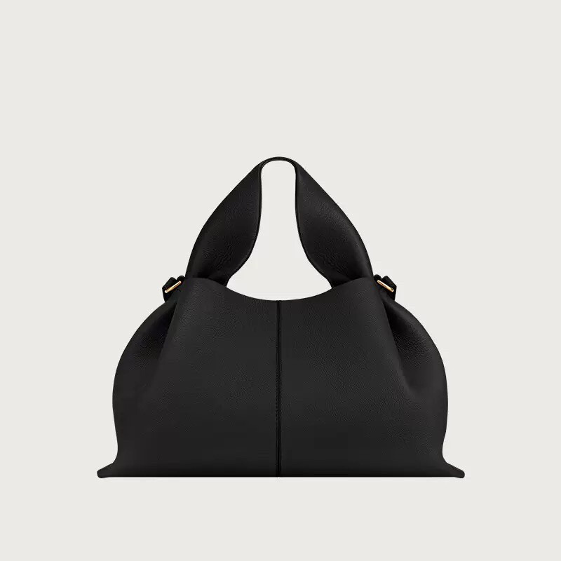 드레이프 처리된 풀 그레인 카프 스킨은 이 백의 조각성과 우아한 형태감을 선사합니다.