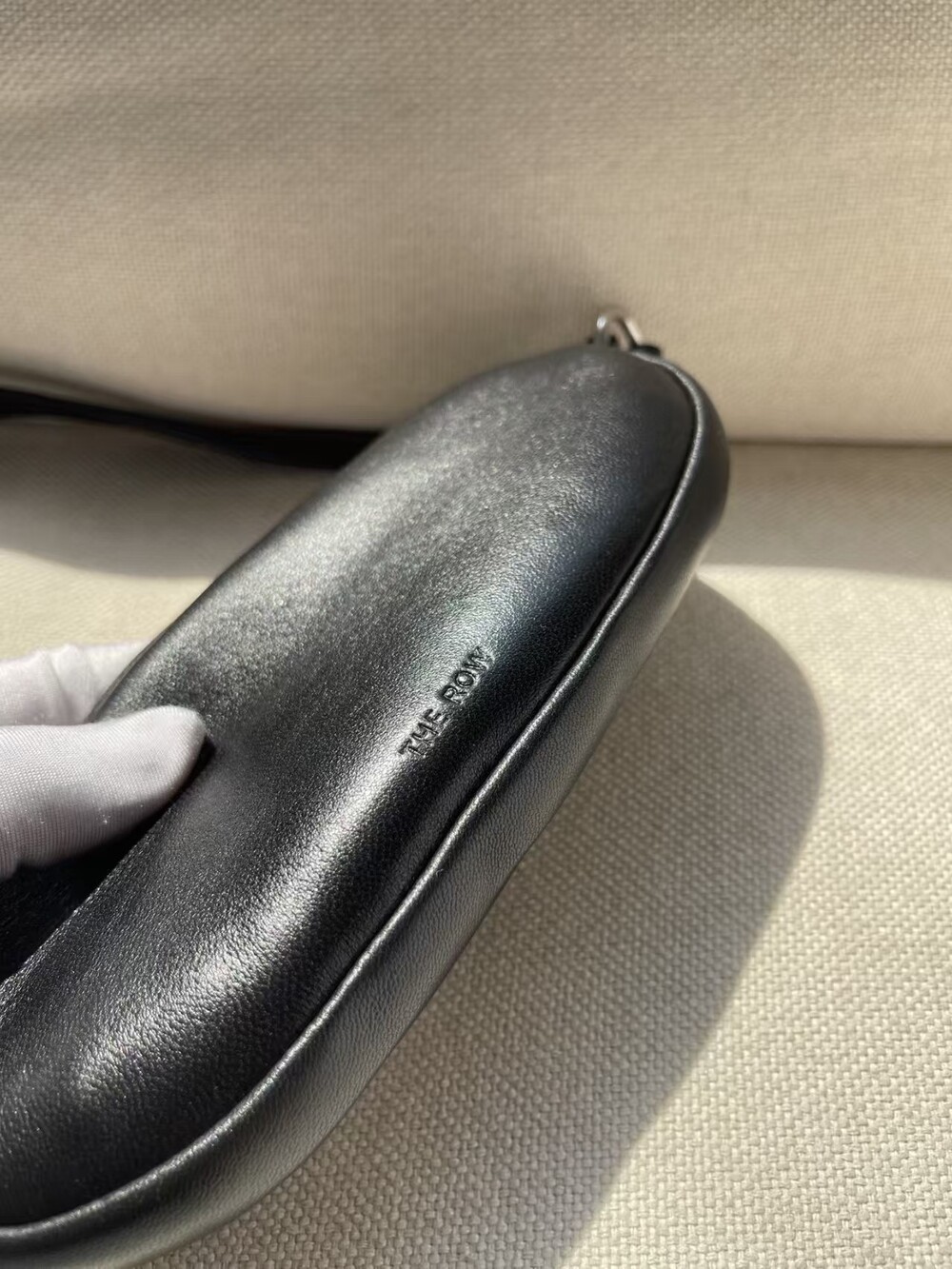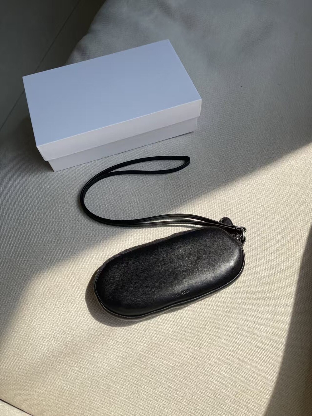 The row leather sunglasses case