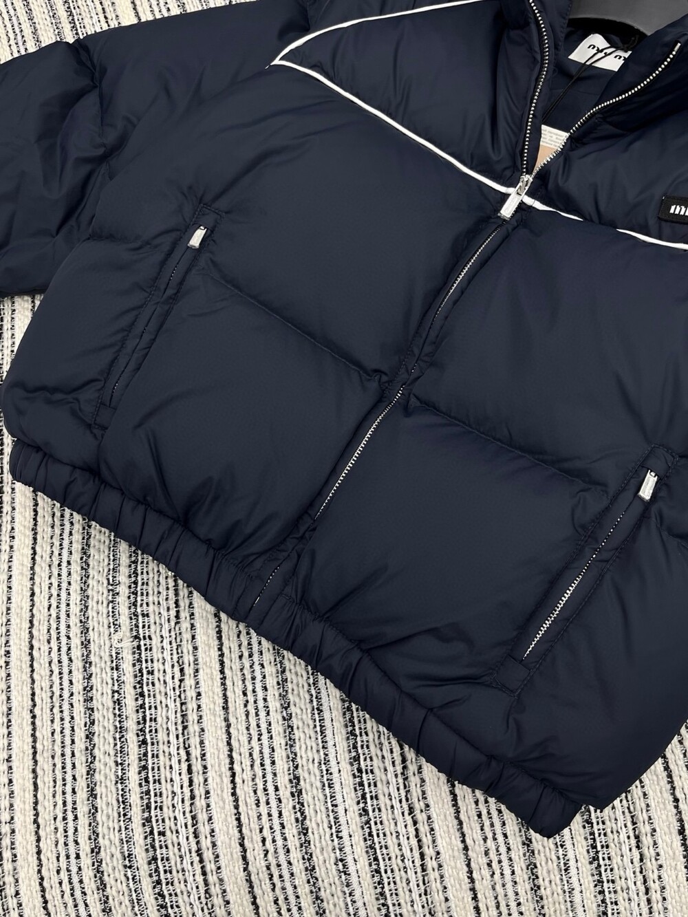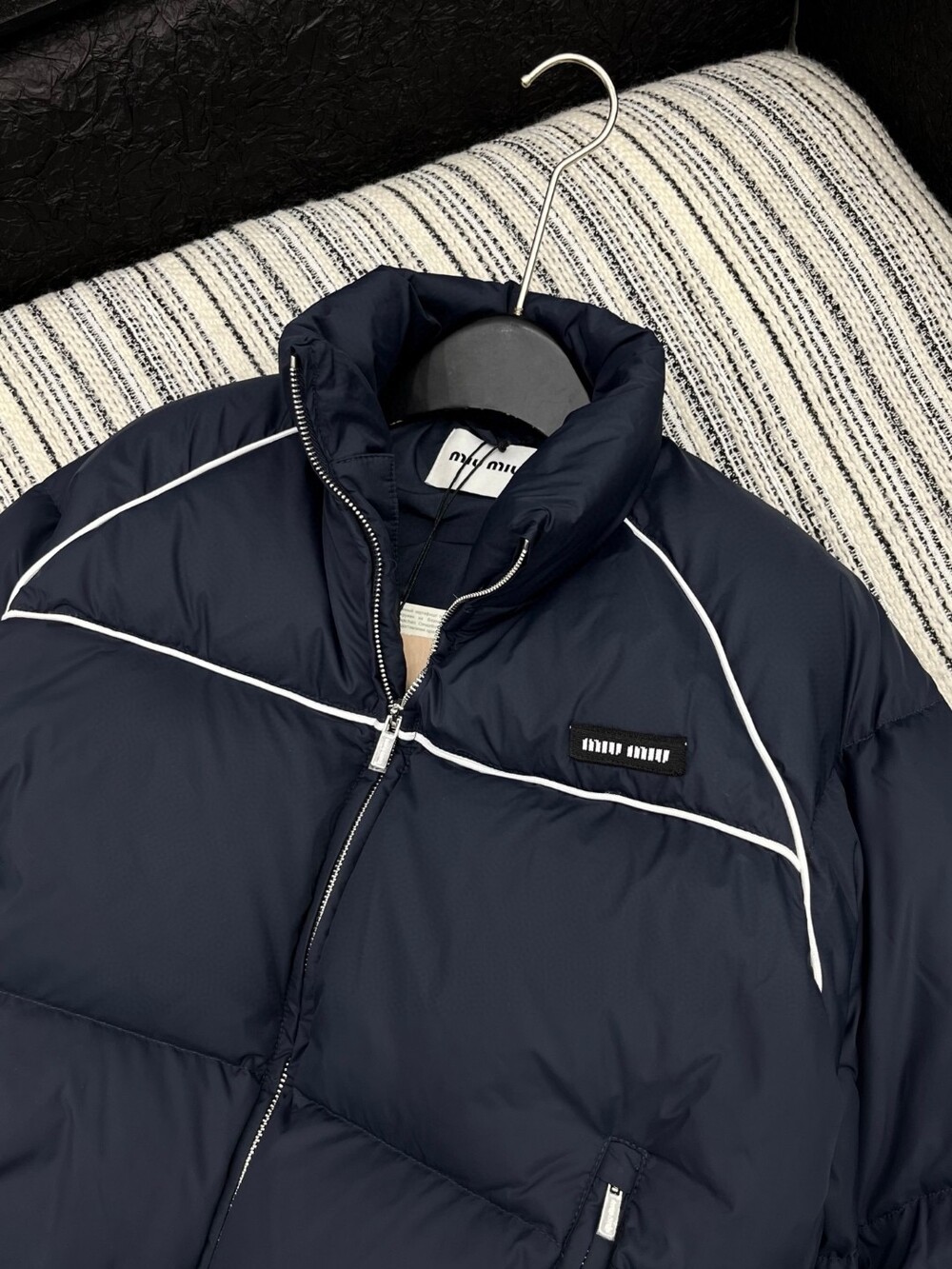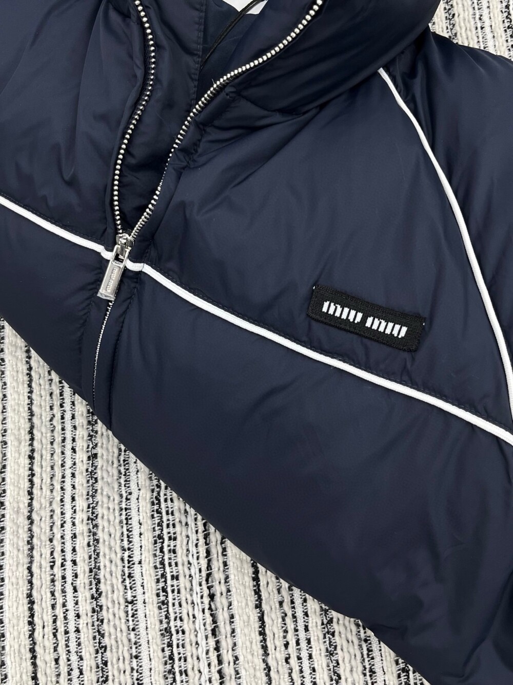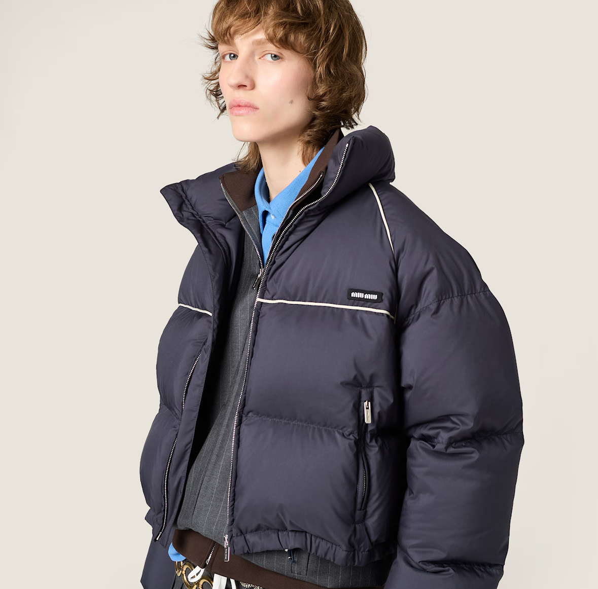 미우미우 옷장 속 아이코닉한 아이템인 다운 재킷은 반항적이고 현대적인 정신을 담고 있습니다. 약간 짧게 디자인된 이 버전은 런웨이에서 볼 수 있는 스포티한 파이핑과 편안하고 다재다능한 태도에서 영감을 받았습니다.