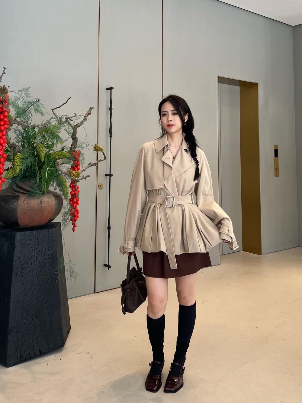 가벼운 면 개버딘 소재의 재킷으로, 벌룬 실루엣에 조절 가능한 드로스트링 밑단과 스톰 플랩이 특징입니다.
