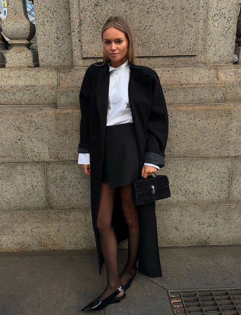평행성과 수직선에 초점을 둔 핸드백으로