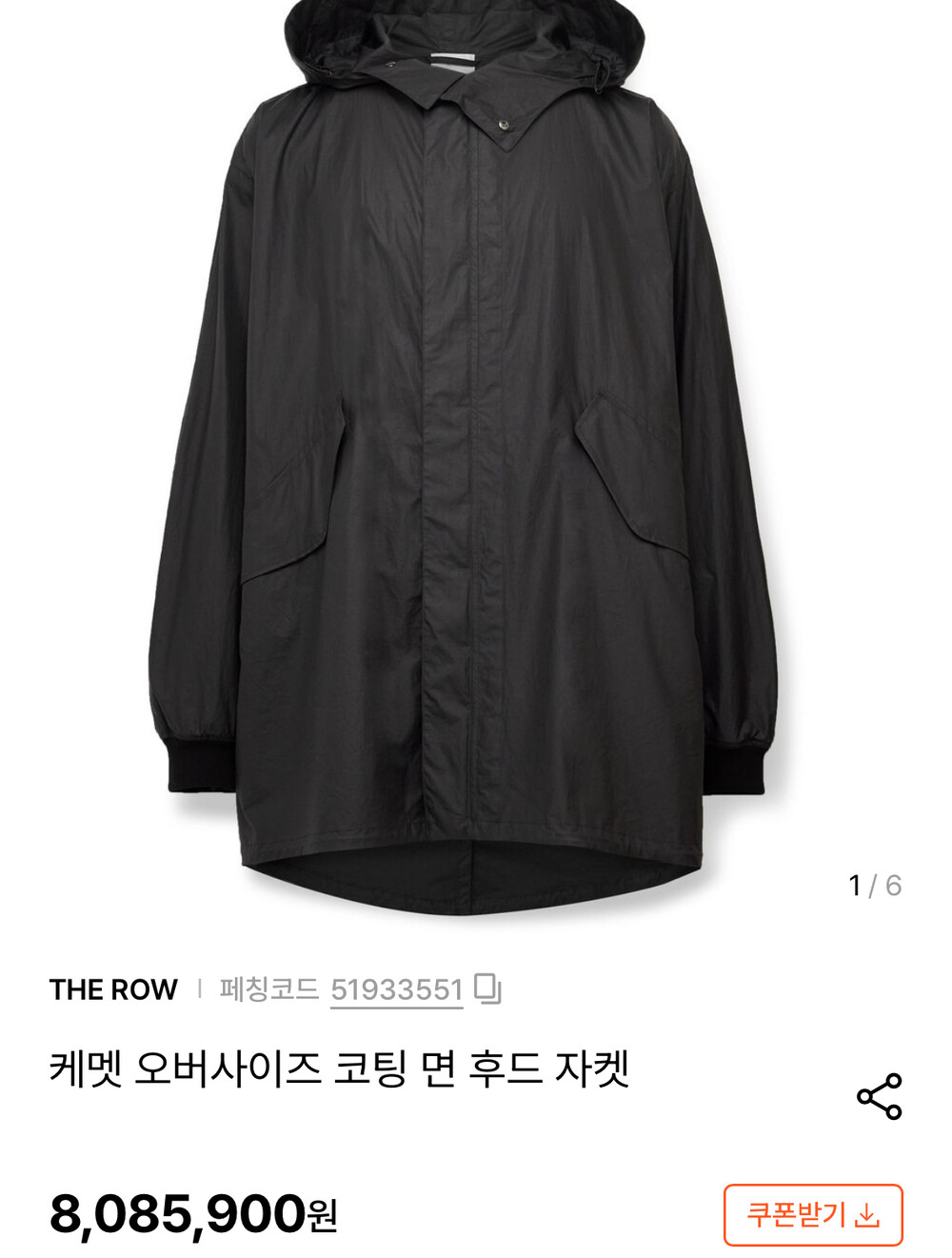 더로우 케멧 오버사이즈 코팅 후드 자켓