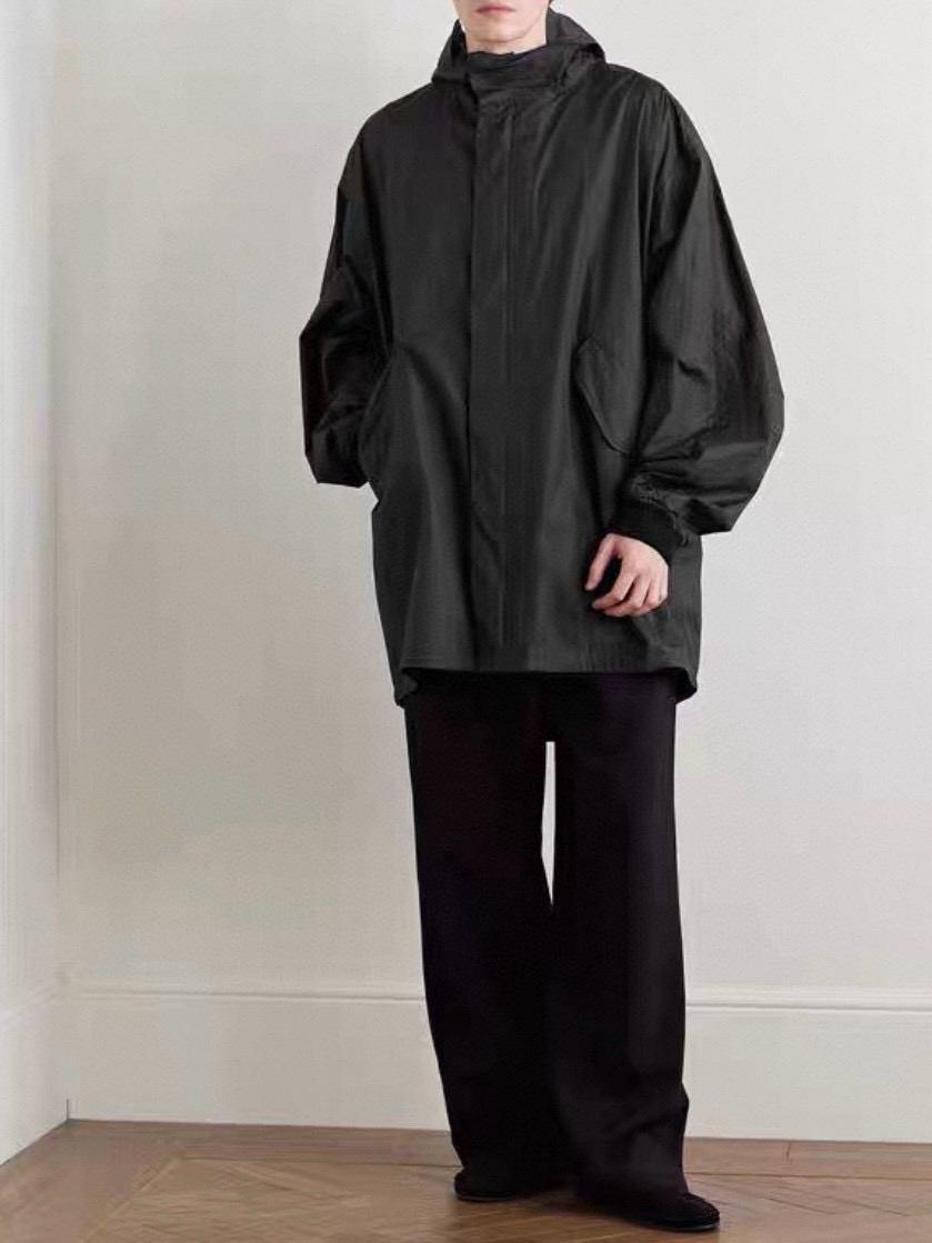 The Row의 'Kemet' 재킷은 중간 무게감의 코팅된 면으로 제작되어 여유로운 핏을 연출합니다. 안감 처리가 없어 더욱 편안한 착용감을 선사하며, 리브드 커프스, 후드 조절 토글, 드로우스트링 밑단 등 실용적인 디테일이 돋보입니다.
