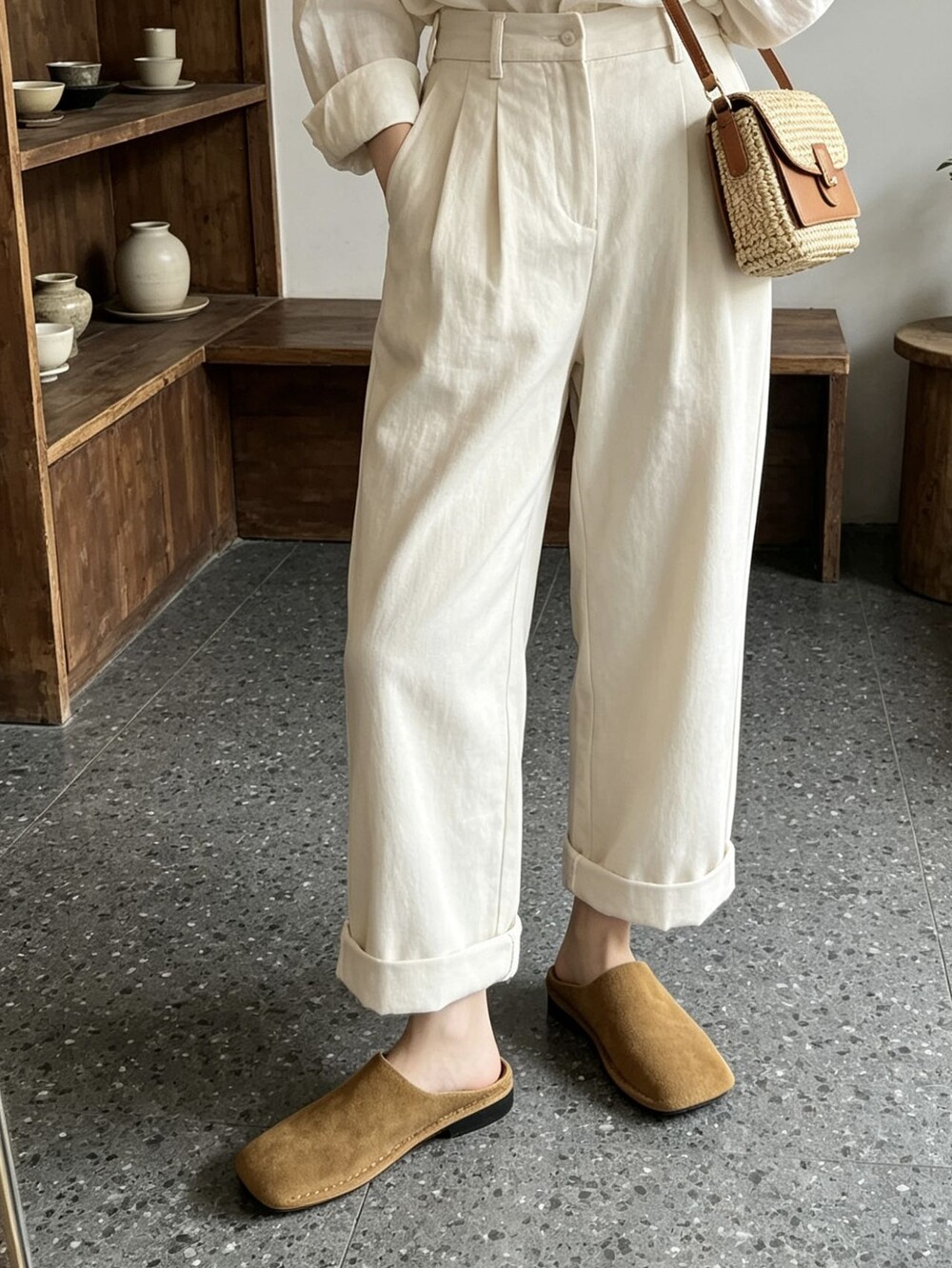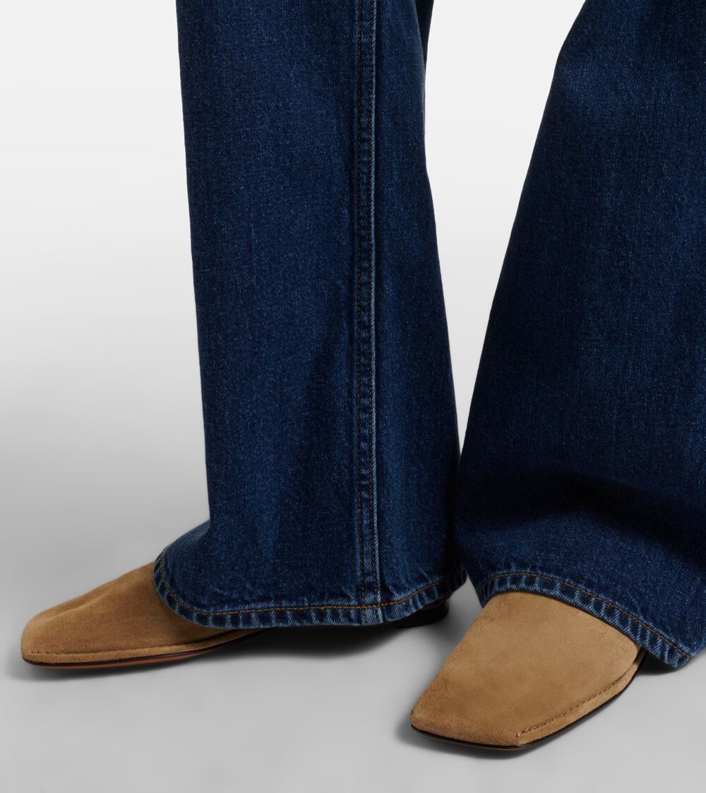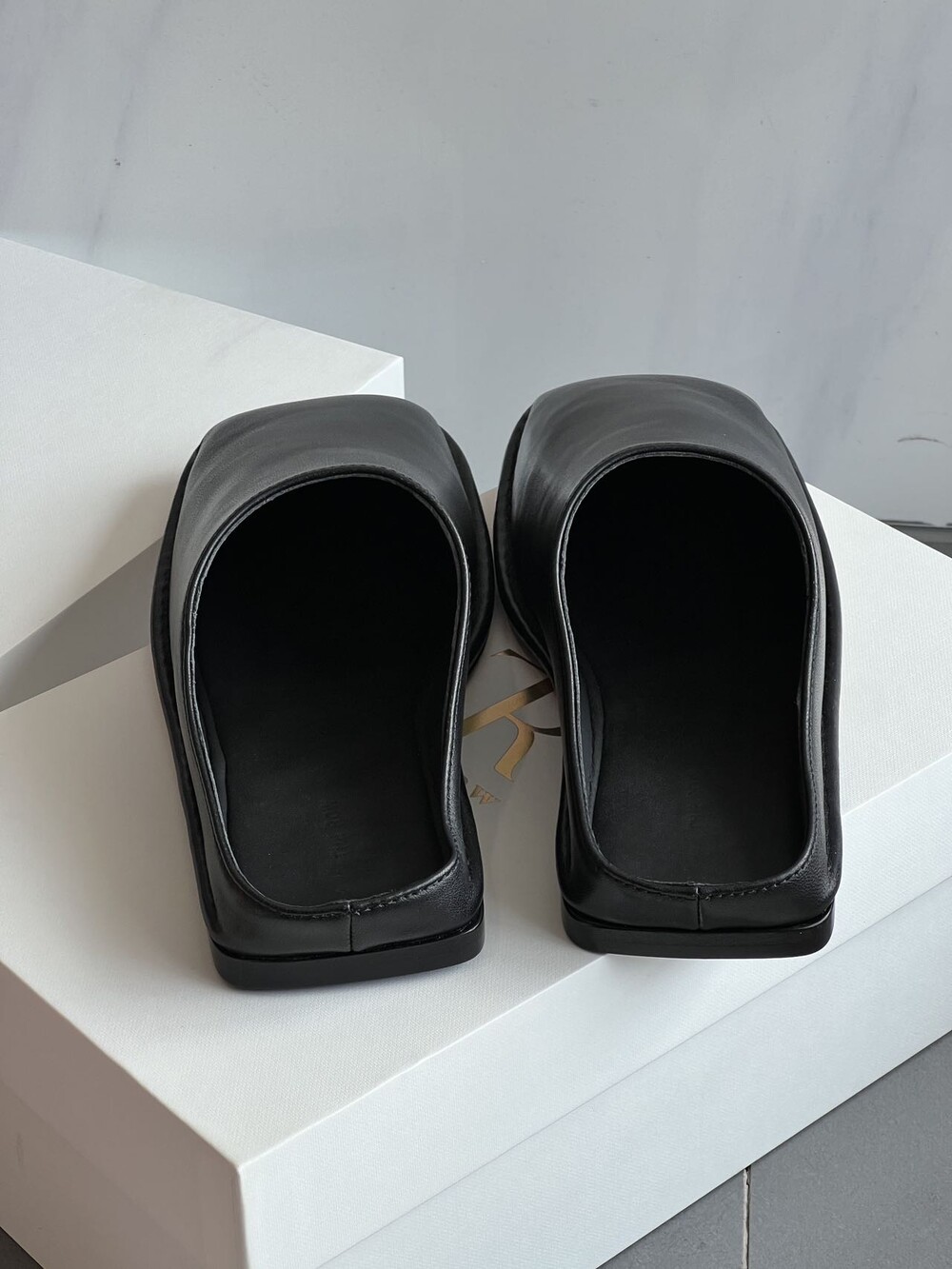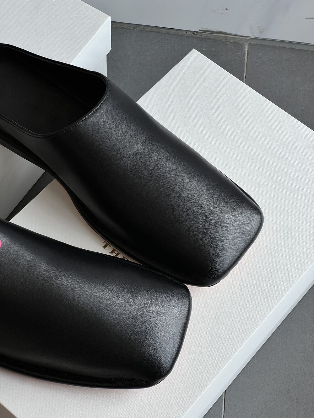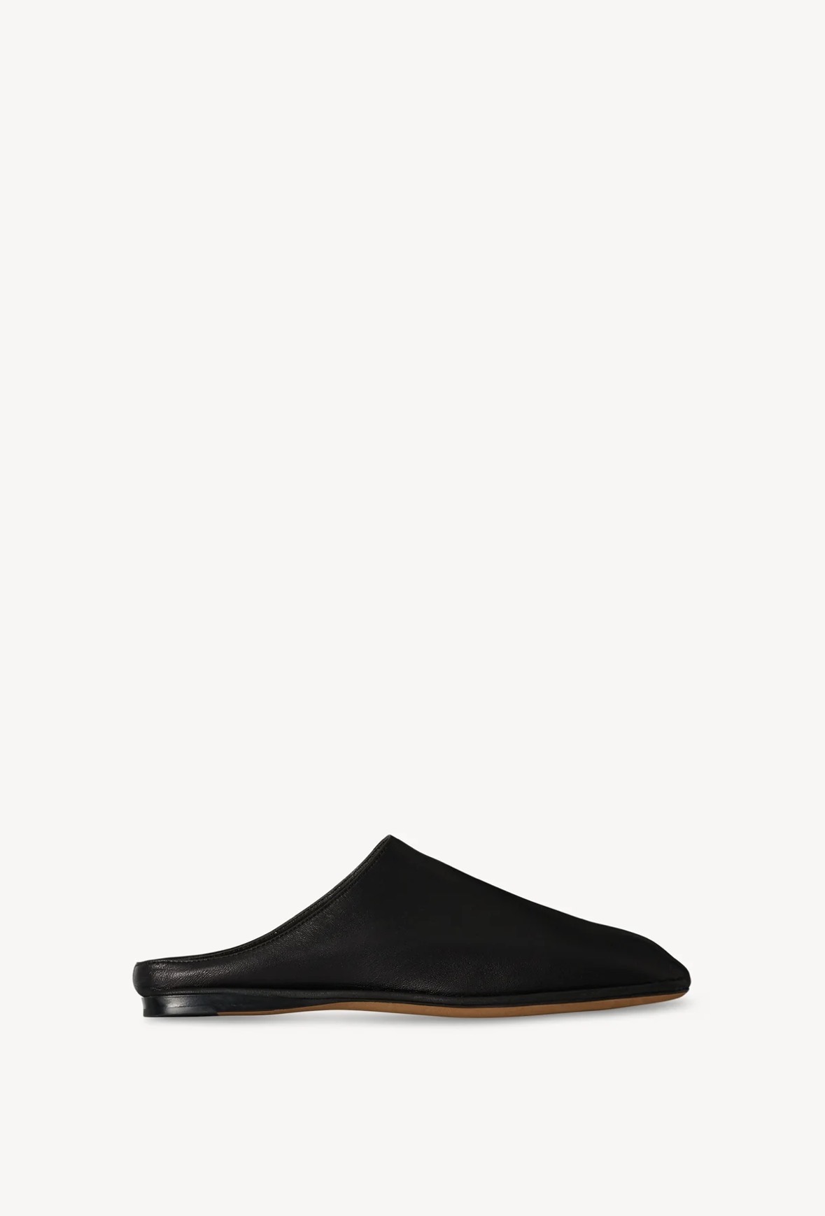 수작업으로 제작한 부드러운 카프스킨 스웨이드 소재의 슬립온 슈즈. 스퀘어 토, 겉면의 스티치 디테일, 부드러운 나파 가죽 소재의 안감, 가죽 밑창.
