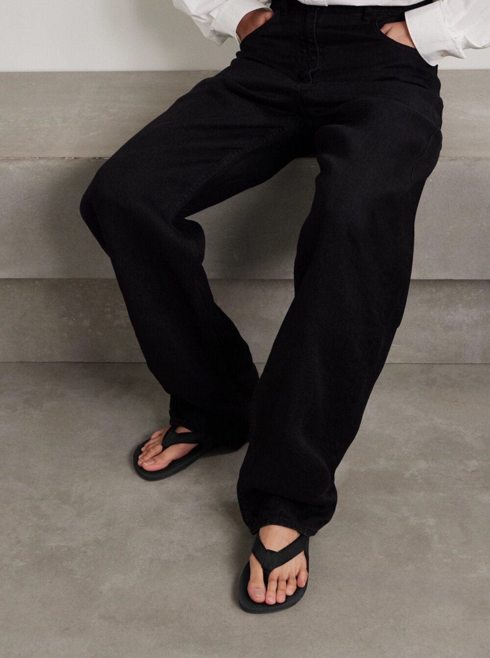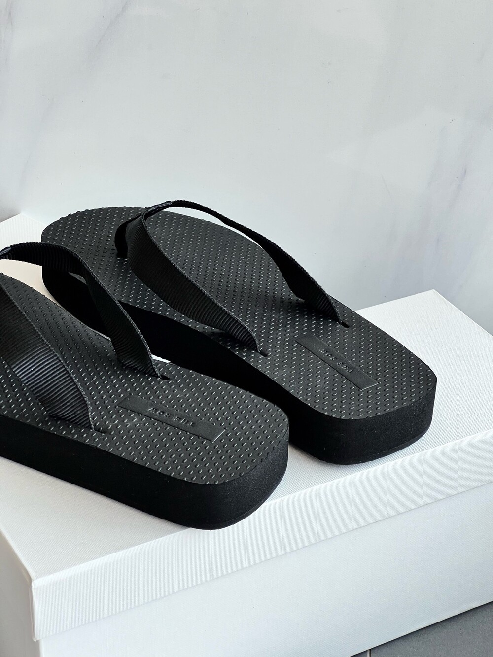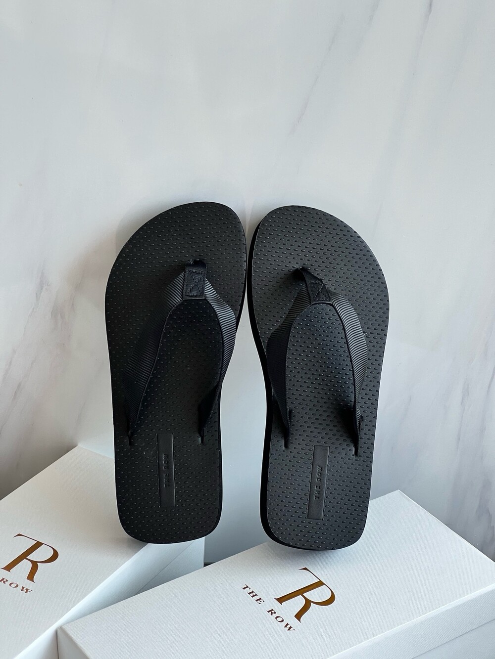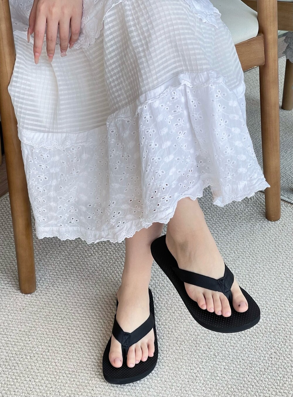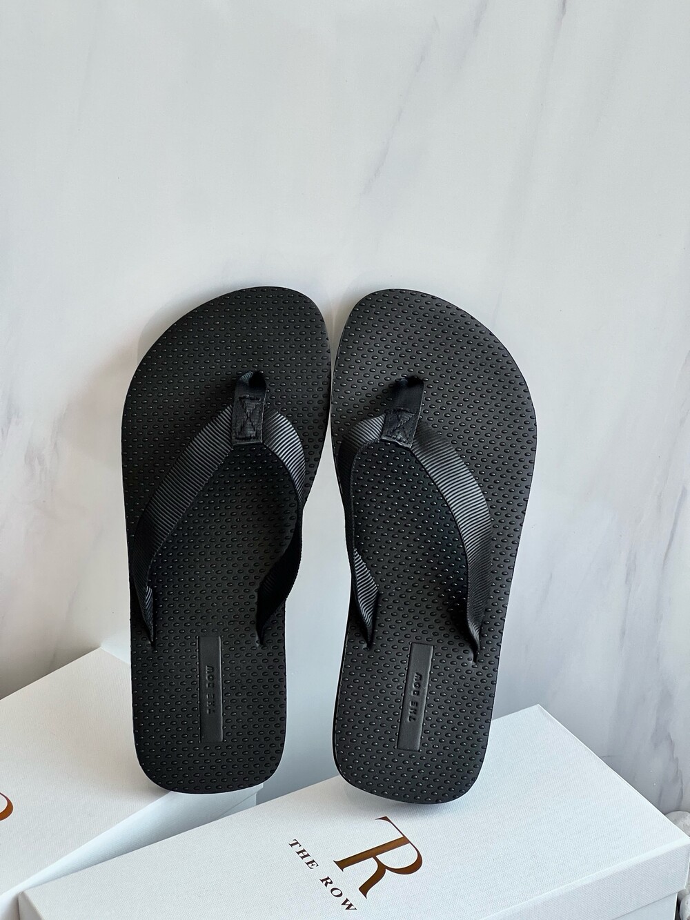코튼 그로그랭 소재의 활용도 높은 플립플랍 샌들. 질감이 있는 풋베드와 가벼운 고무 밑창.