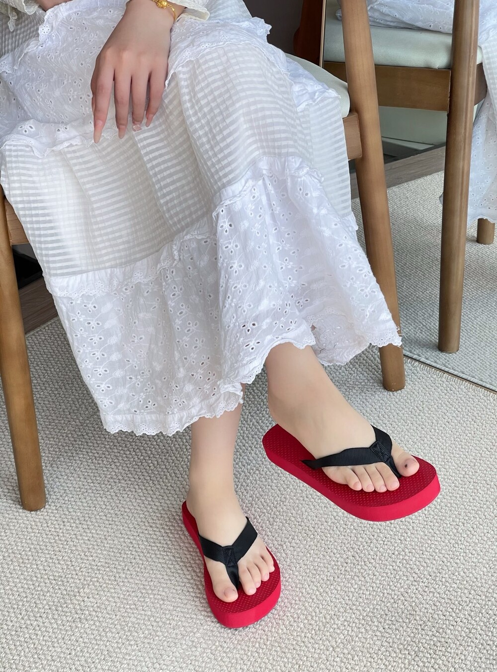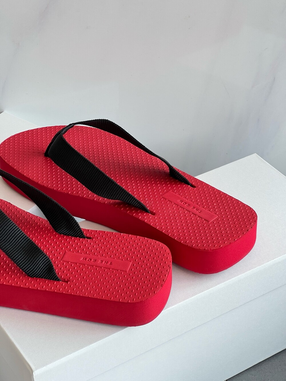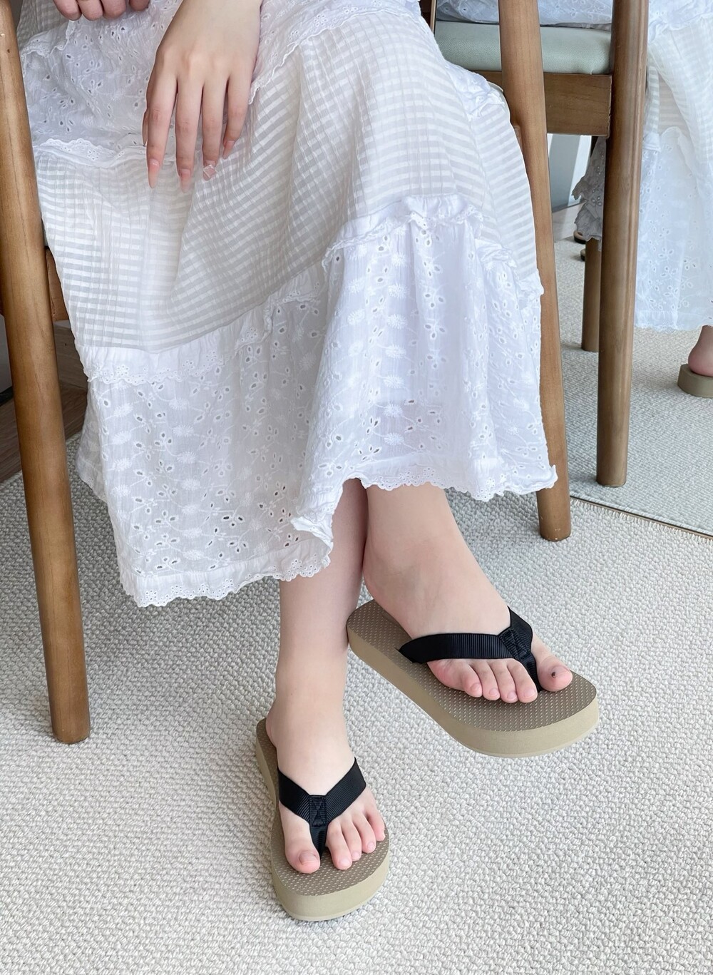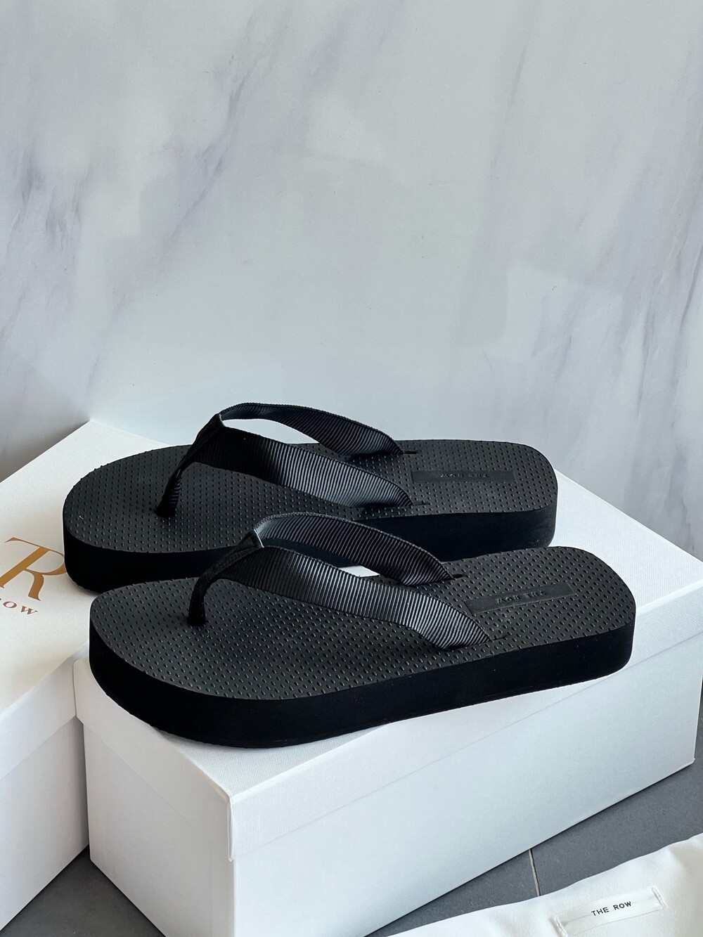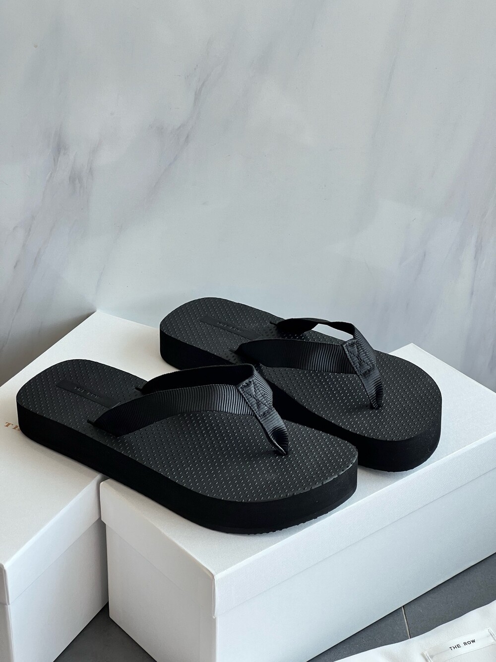코튼 그로그랭 소재의 활용도 높은 플립플랍 샌들. 질감이 있는 풋베드와 가벼운 고무 밑창.