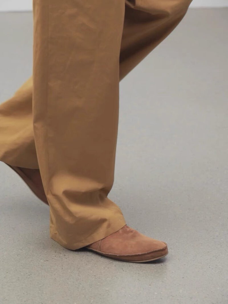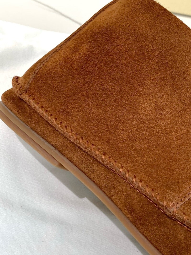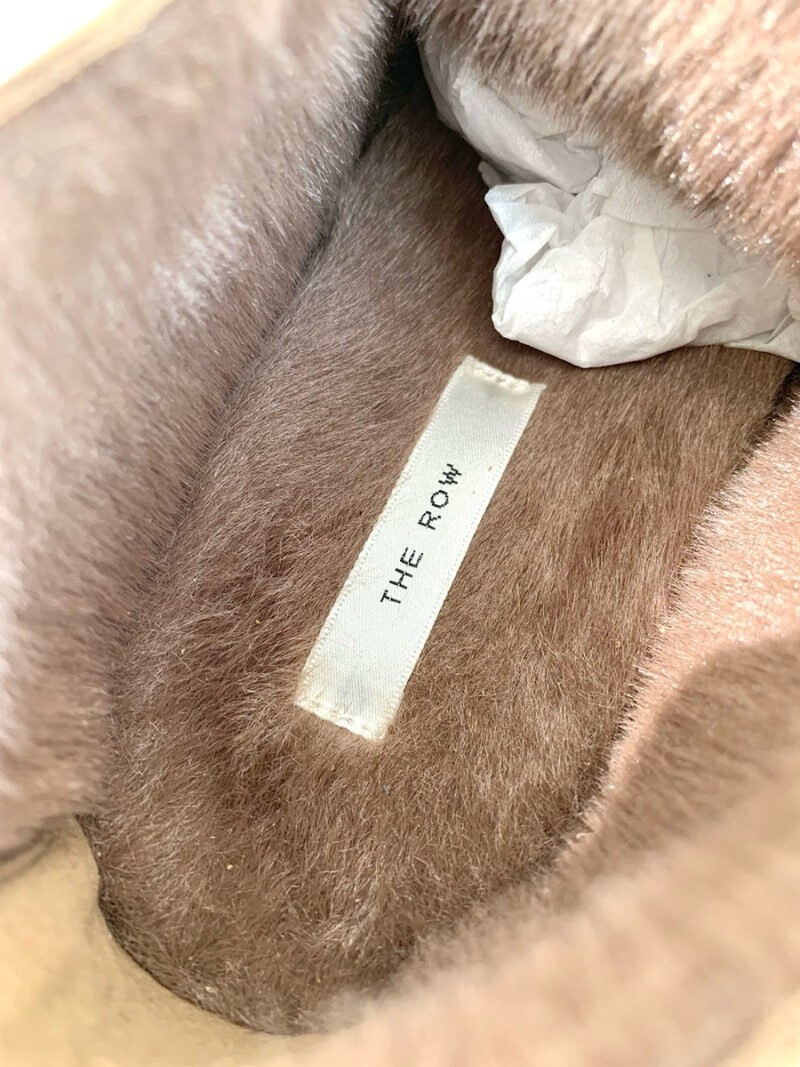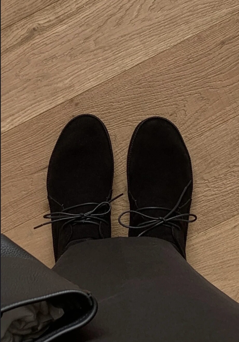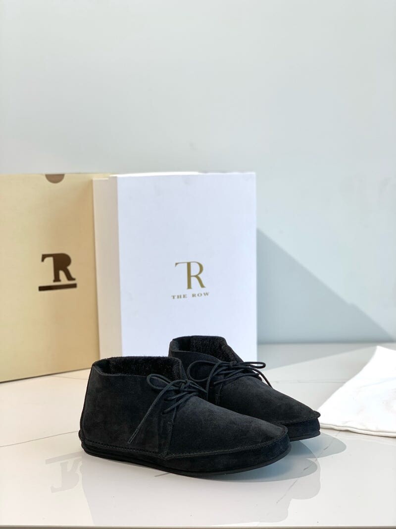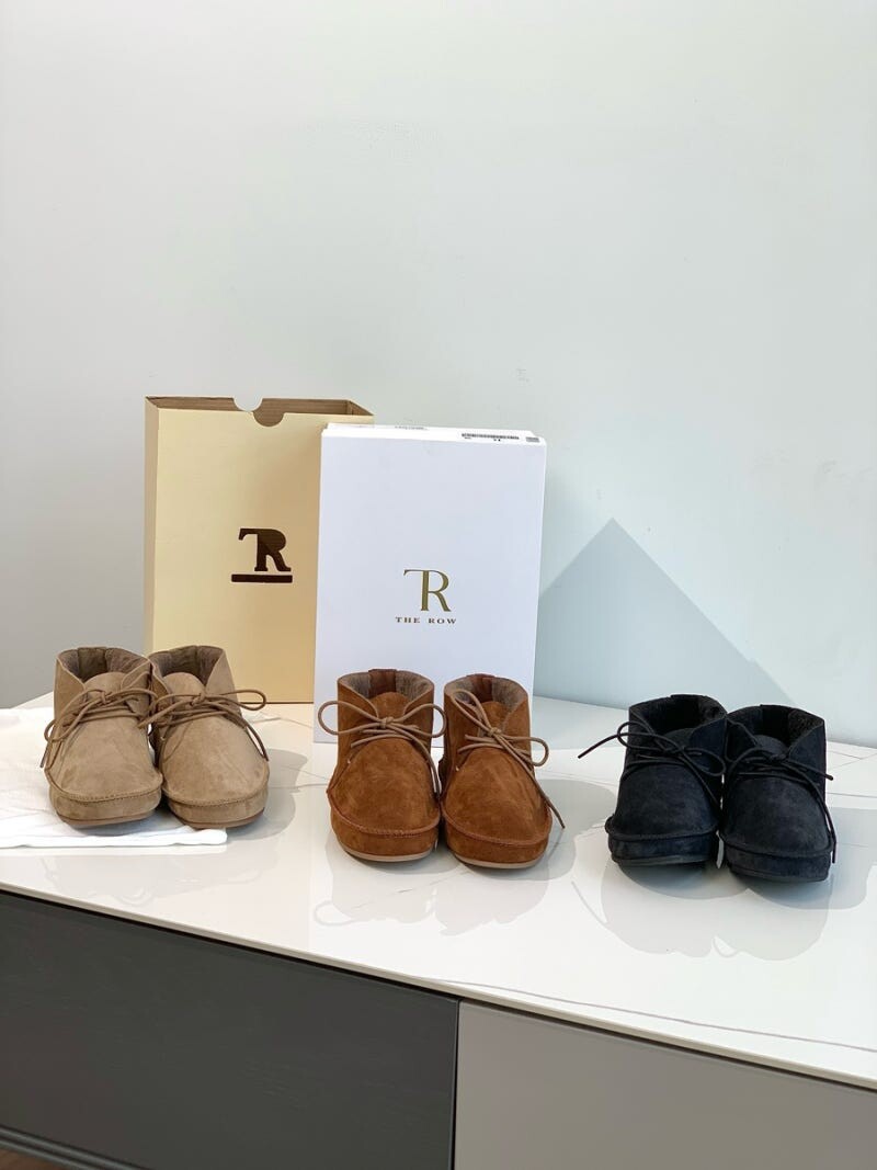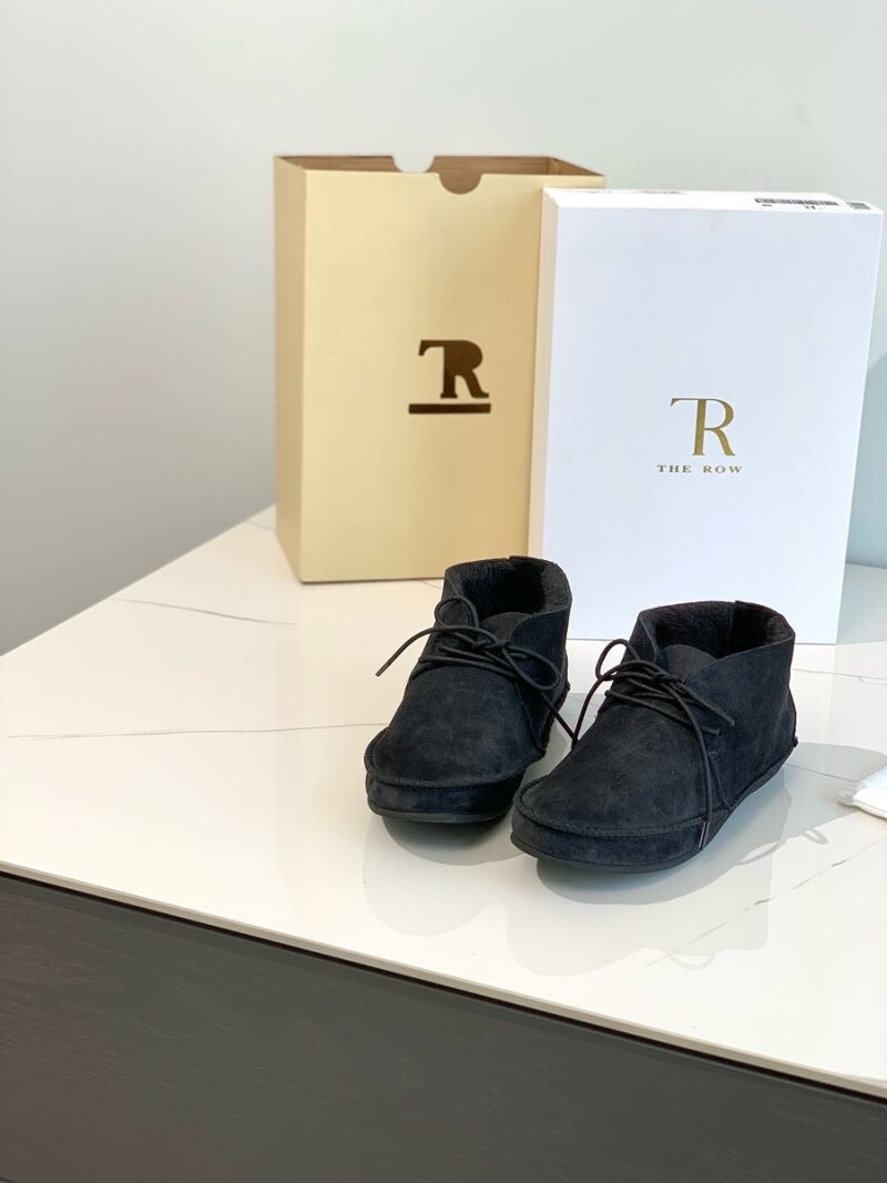 왁스 마감된 코튼 레이스와 고무로 마감된 솔을 갖춘 시어링 안감을 댄 스웨이드 소재의 디컨스트럭티드 레이스업 슈즈.