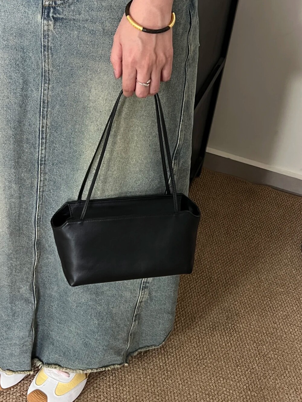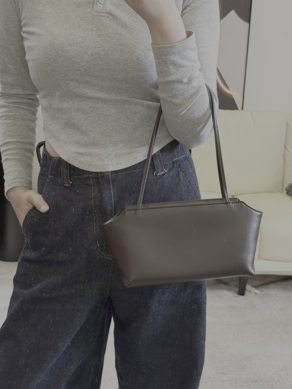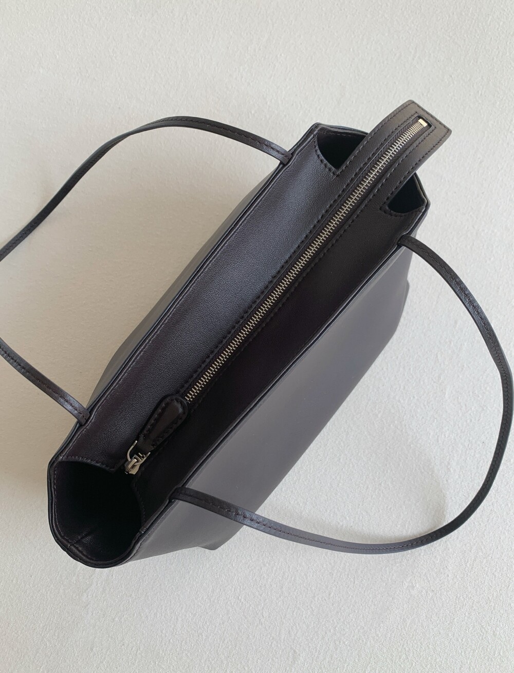 파인 그레인 카프스킨 가죽 소재의 소프트 스트럭처 숄더 백. 슬림하고 긴 튜브형 스트랩, 노치 디테일의 상단 코너, 평평한 밑면, 내부 지퍼 프레임 클로저. 오리지널 Terrasse 백에 새로운 비율과 세련된 디테일을 더해 새롭게 선보이는 디자인. 최소한의 마감으로 소재 본연의 특성을 그대로 유지하는 동시에 유연하고 장갑처럼 부드러운 촉감을 선사하는 가죽.