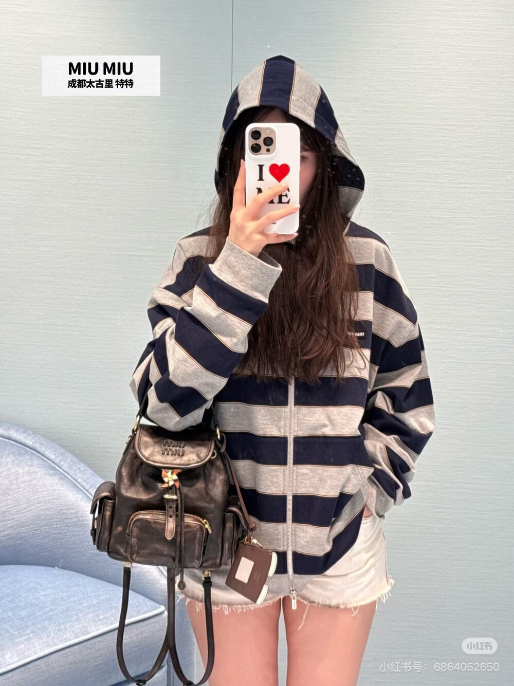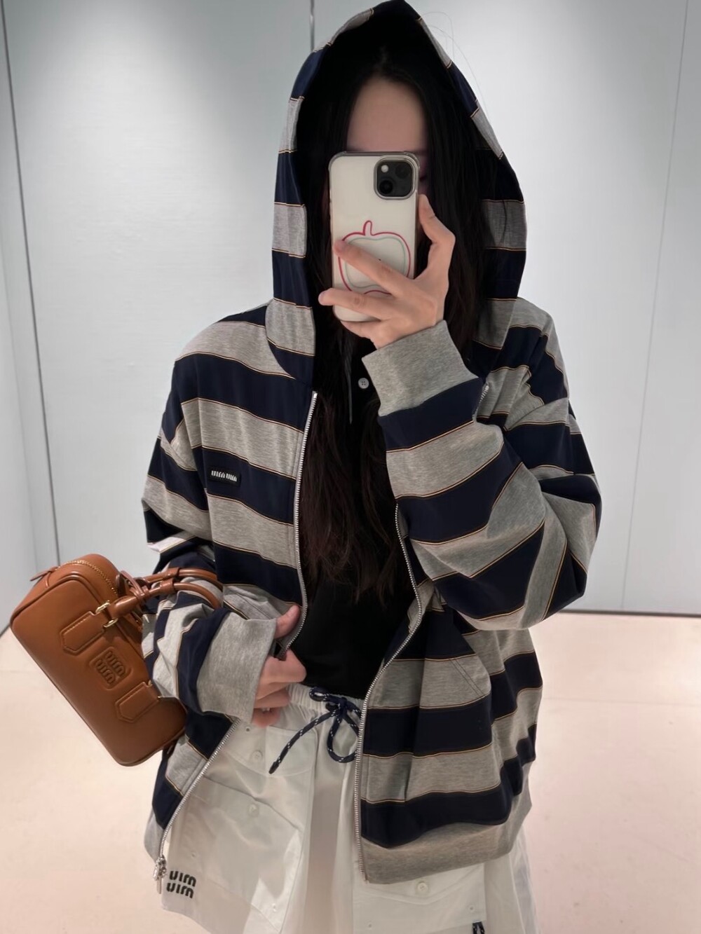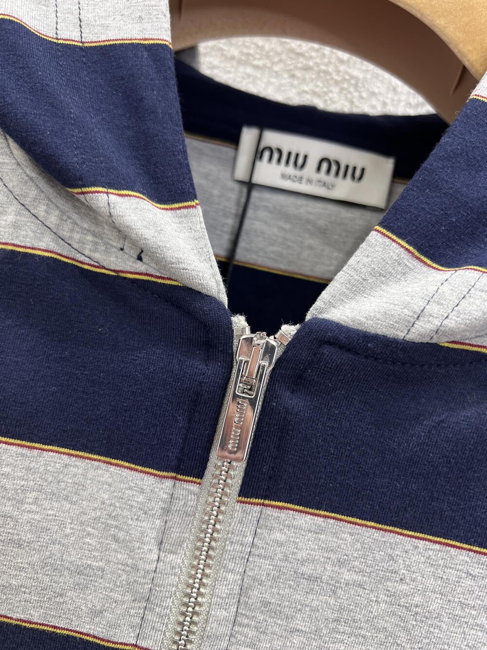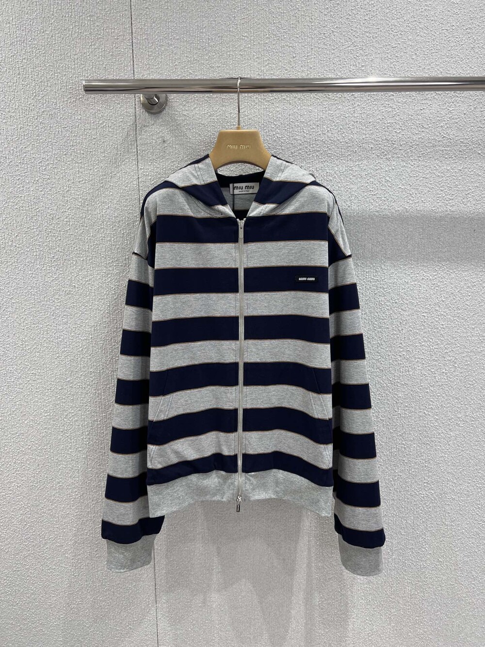 미우미우 스트라이프 저지 후드티
