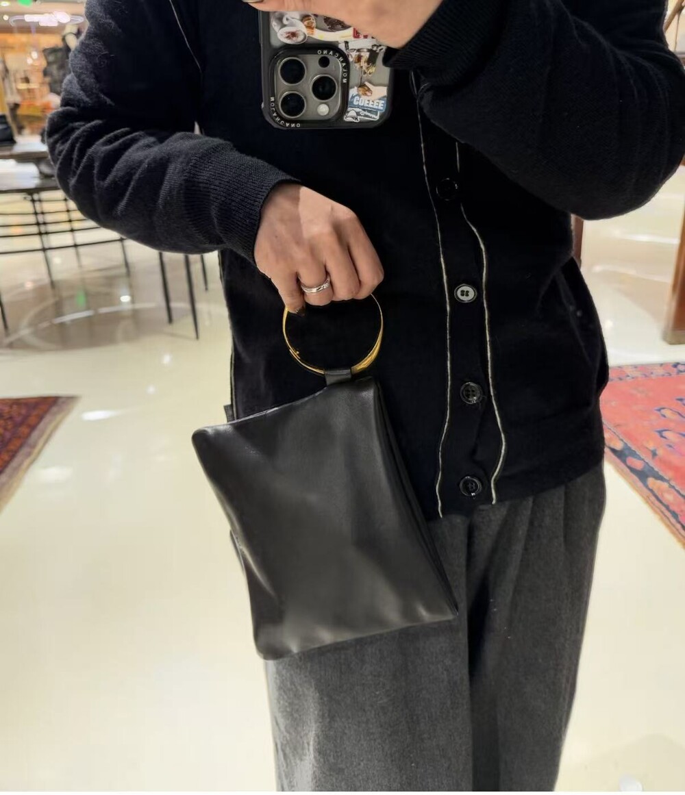 더 로우(The Row)에서 클러치의 시크한 우아함과 핸들의 실용성을 결합한 Square Bracelet을 선보입니다. 가죽 소재로 제작하였으며 핸즈프리로 편리하게 착용할 수 있는 섬세한 뱅글 브레이슬릿이 특징입니다.